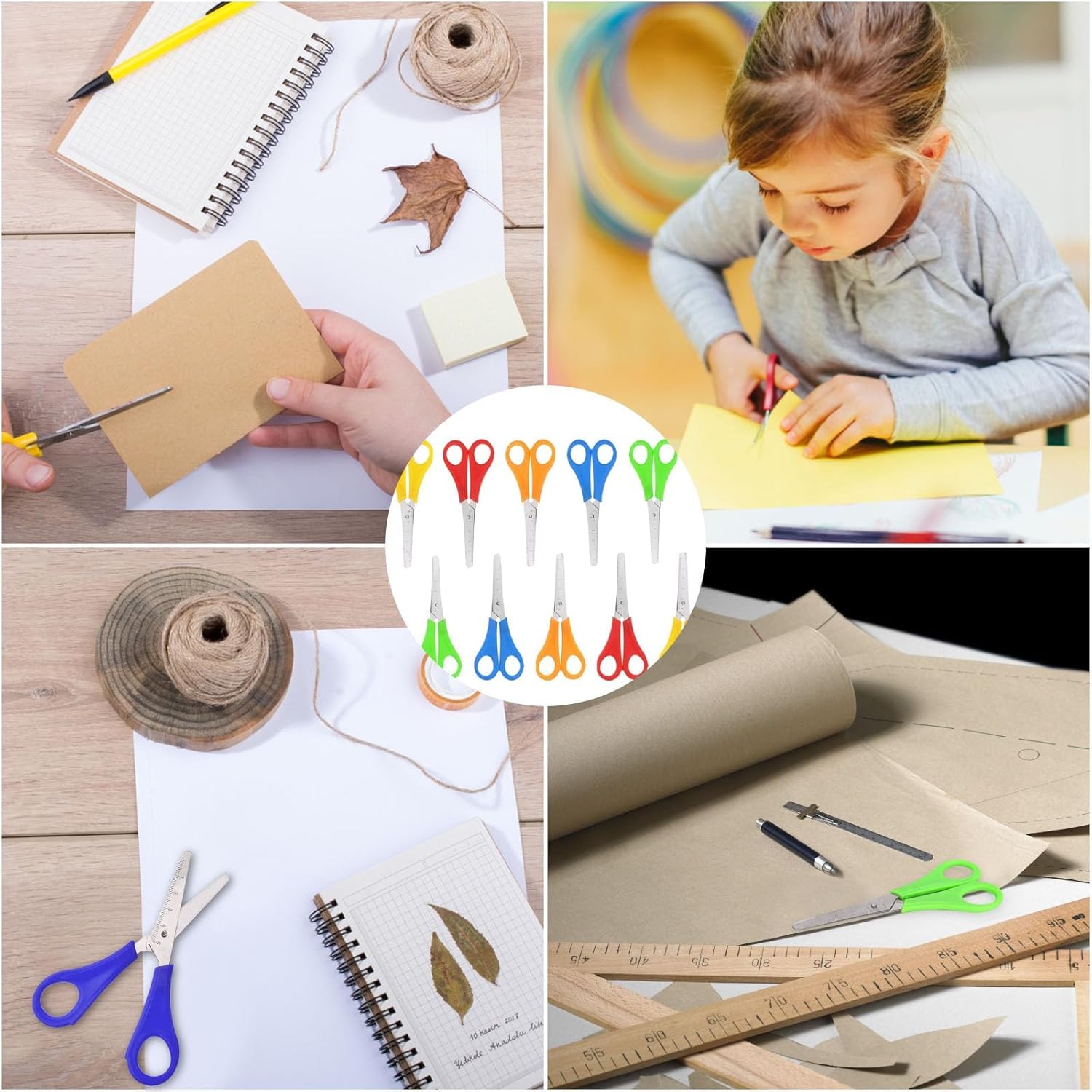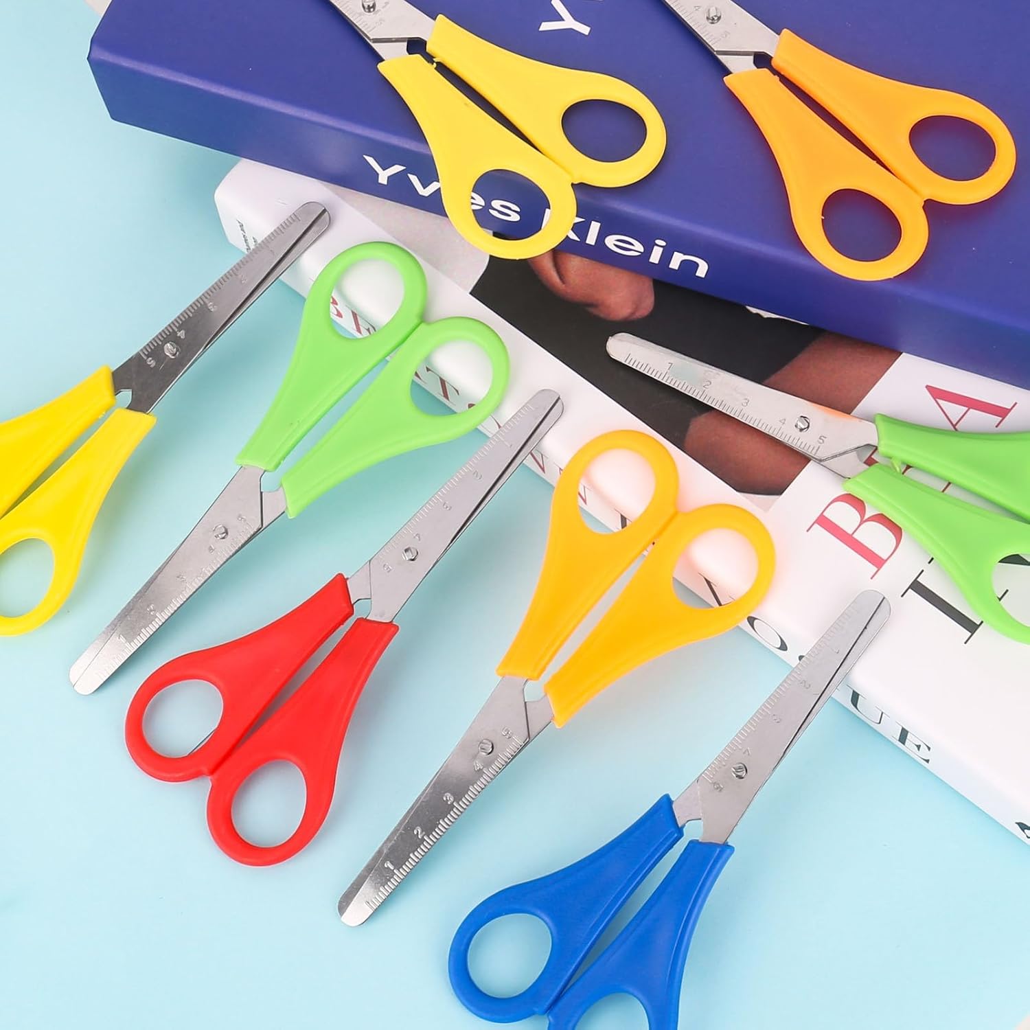 Materiale: le forbici di sicurezza per bambini in acciaio inox e plastica PP. Forbici con estremità rotonda, non facile da arrugginire, affilate e resistenti. Il manico delle forbici di sicurezza per bambini è comodo, la dimensione adatta è molto adatta per la forma della mano e le abitudini di utilizzo dei bambini. Uso sicuro: le forbici per bambini hanno una testa rotonda e il manico è dotato di un doppio anello, facile da tenere e usare. Che può essere utilizzato dalle mani sinistra e destra, progettato specificamente per i bambini. La testa rotonda può evitare lesioni ai bambini, sicuro da usare. Con scala: le forbici di sicurezza per bambini in acciaio inox misurano 13 cm, sono comode da tenere in mano, le forbici sono dotate di scale in cm che possono essere tagliate con precisione, molto adatte per il fai da te in età prescolare. Multifunzionale: le forbici per il fai da te per bambini si distinguono per i colori vivaci, per i bambini sono molto adatte per i bambini per svolgere lavori manuali a scuola, in ufficio e a casa, con cui è possibile tagliare facilmente carta, schiuma, cartone e poster. Applicazione: le forbici per bambini possono essere utilizzate per tagliare carta, carte fai da te, scrapbooking, foto, etichette regalo, creazione di biglietti di auguri, ecc. Piccole forbici smussate sono adatte per bambini in età prescolare e per l'uso quotidiano, godetevi la gioia delle opere d'arte fai da te.