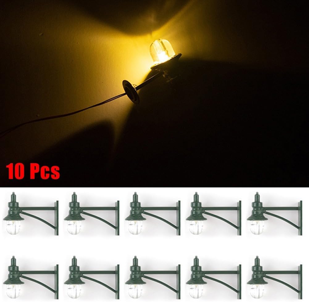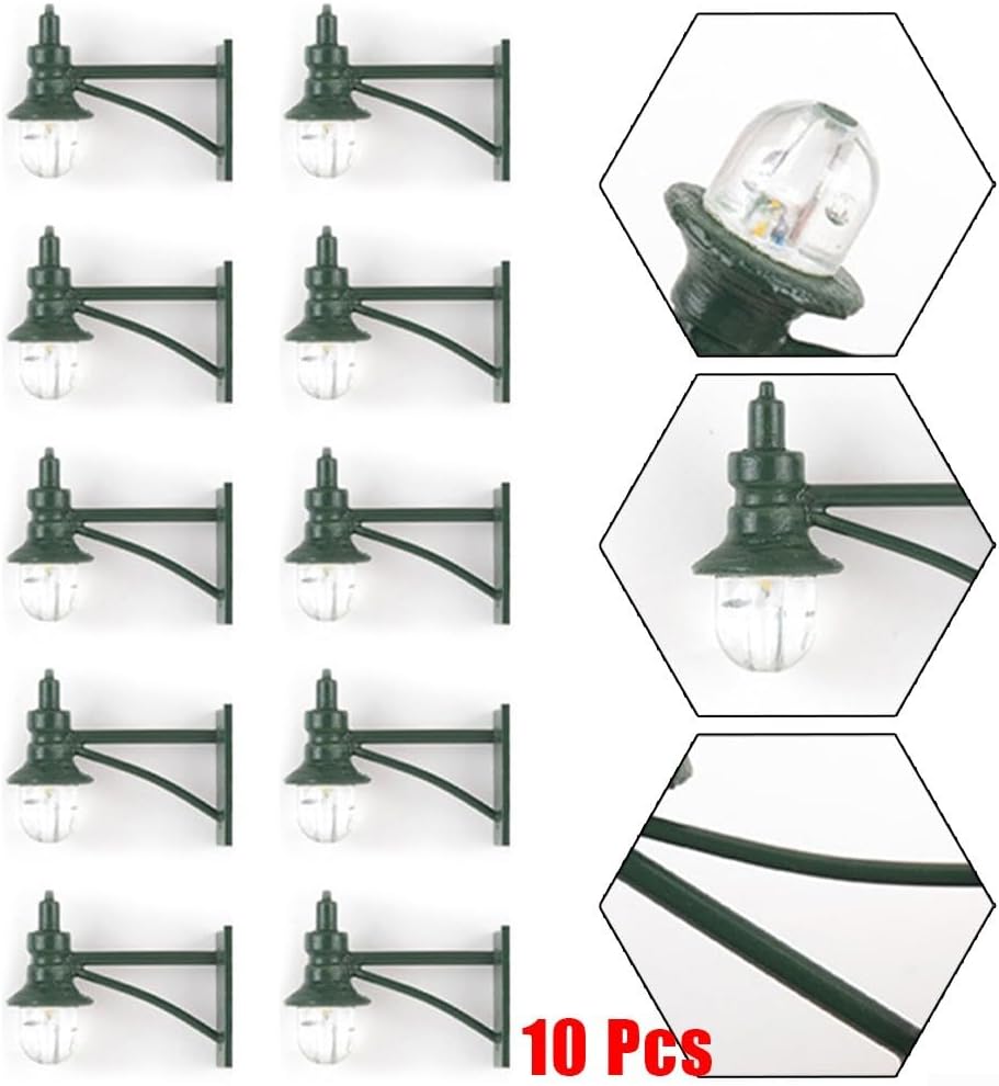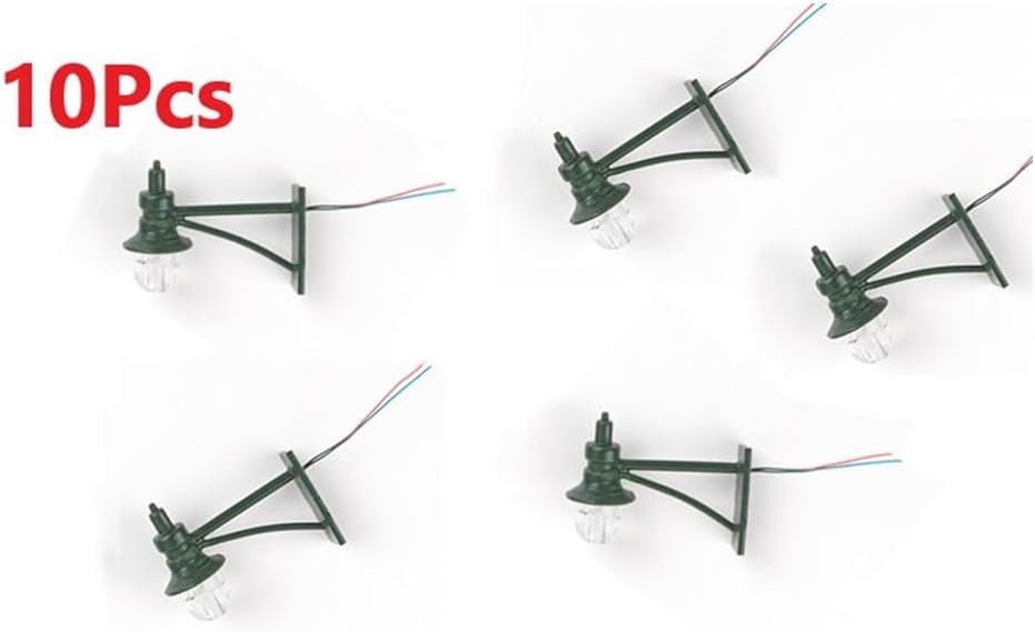 [DETTAGLIAZIONE REALISTICA]: queste 10 lampade da parete a LED bianco caldo in scala 1:87 (H0) offrono un'illuminazione autentica per il tuo modello ferroviario. Con un'altezza di 3,5 cm, si adattano armoniosamente a qualsiasi scenario. [UTILIZZO VERSATILE]: ideale per stazioni ferroviarie, strade ed edifici. Queste lampade sono ideali anche per diorami, decorazioni da giardino, modelli paesaggistici e altri progetti creativi. [FACILE INSTALLAZIONE]: le lampade sono dotate di cavi (rosso per più, blu per meno) e possono essere alimentate da 3 V o 12 V. In questo modo possono essere facilmente integrati nei sistemi di modellismo esistenti. [LAVORAZIONE DI ALTA QUALITÀ]: realizzati con una combinazione di plastica ABS e metallo, questi lampioni in miniatura offrono una struttura robusta per un divertimento duraturo nel modellismo. [ILLUMINAZIONE]: la luce LED bianca calda crea un'atmosfera accogliente sul vostro impianto. Dona alle tue scene modello un'atmosfera serale realistica e aumenta la visuale delle tue creazioni.