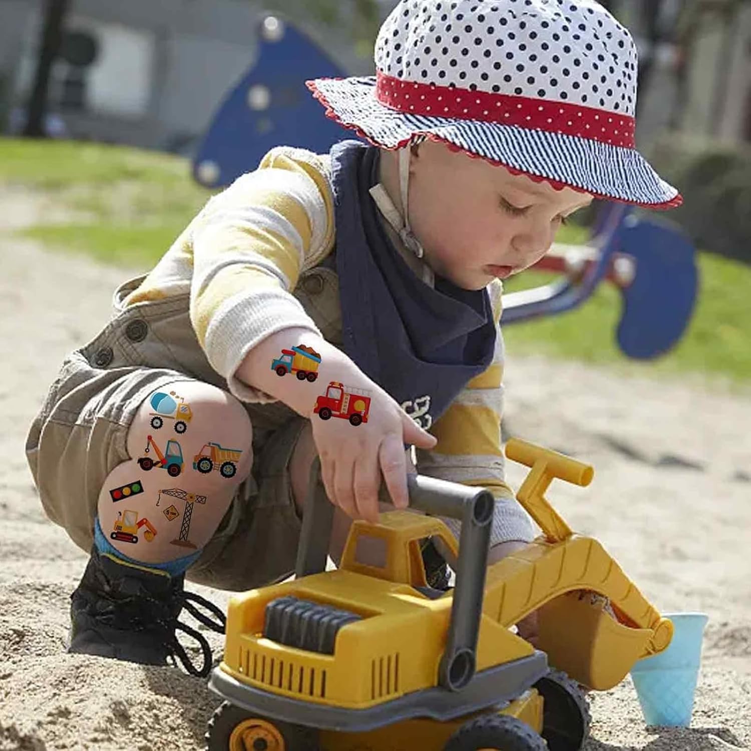 Selezione Unica: Questo set contiene 10 tatuaggi temporanei, ognuno con un design unico di una terna, un trattore, un'autopompa, un camion e altro ancora, che può ispirare l'eccitazione e l'interesse dei bambini. Materiale Morbido E Amichevole: I tatuaggi considerano la pelle delicata dei bambini, questi tatuaggi per bambini sono realizzati con materiali ipoallergenici e non tossici che sono delicati sulla pelle. Qualità Durevole: Anche con l'acqua e il sudore, questo tatuaggio per bambini non si stacca, così i bambini possono giocare con i loro disegni preferiti per molto tempo. Questo tatuaggio può durare 3-5 giorni o più, a seconda del numero di docce necessarie e della frequenza con cui il tatuaggio viene sfregato con acqua e sapone. Senza Impegno: I tatuaggi finti sono facili da applicare e rimuovere, possono essere tatuati su braccia, gambe, schiena, spalle e viso per feste di compleanno per bambini, feste di unicorno, Halloween, feste di Pasqua, Natale e altre feste. Nota: Ritagliare il disegno preferito, staccare la pellicola protettiva, attaccare il lato con il disegno sulla pelle, bagnare completamente la carta bianca sul retro con acqua e staccare con cura la carta bianca dopo 30 secondi. I tatuaggi colorati possono essere facilmente rimossi con alcool, olio per bambini, olio d'oliva o sapone.