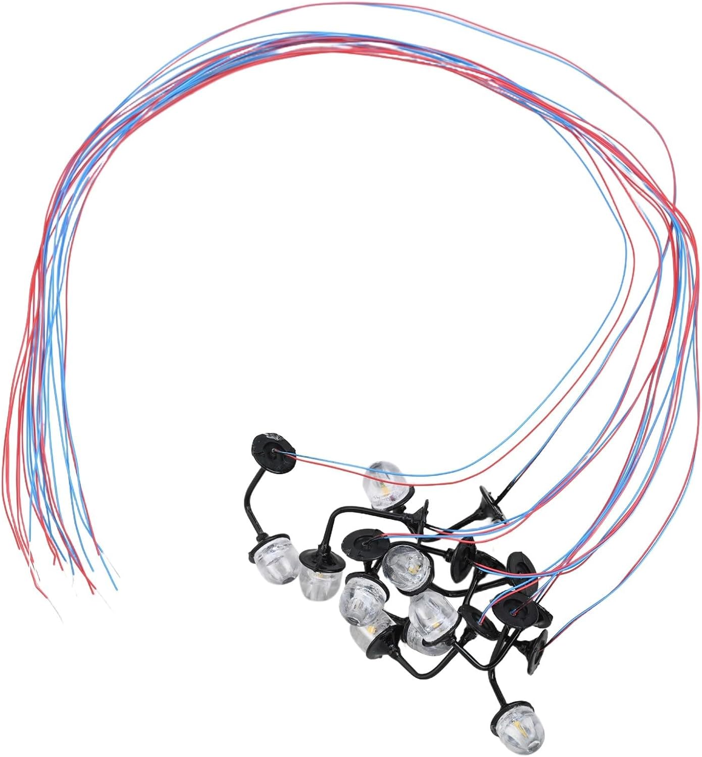 Luci da parete a LED per modellismo ferroviario: - Perfetto per migliorare il layout ferroviario e dell'edificio! - Realizzato con LED bianchi, fornendo un'illuminazione luminosa ed efficiente. - Completo di fili e LED, pronto per essere facilmente installato e illuminato. - Specificamente progettato per tensione di funzionamento 3V, prestazioni ottimali. - Ogni LED richiede una corrente di funzionamento di 20mA, mantenendo la longevità delle luci.