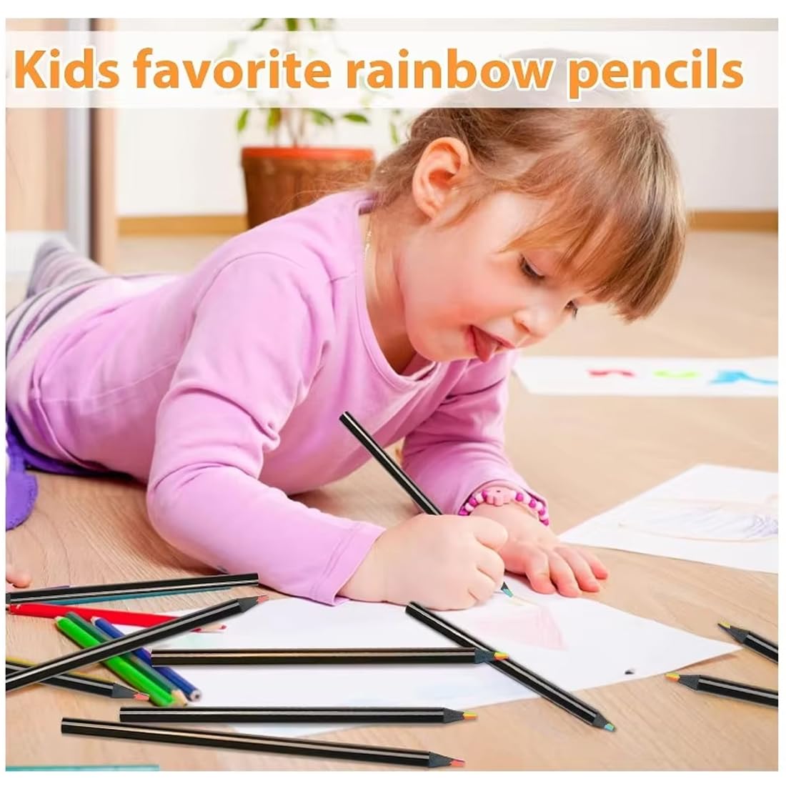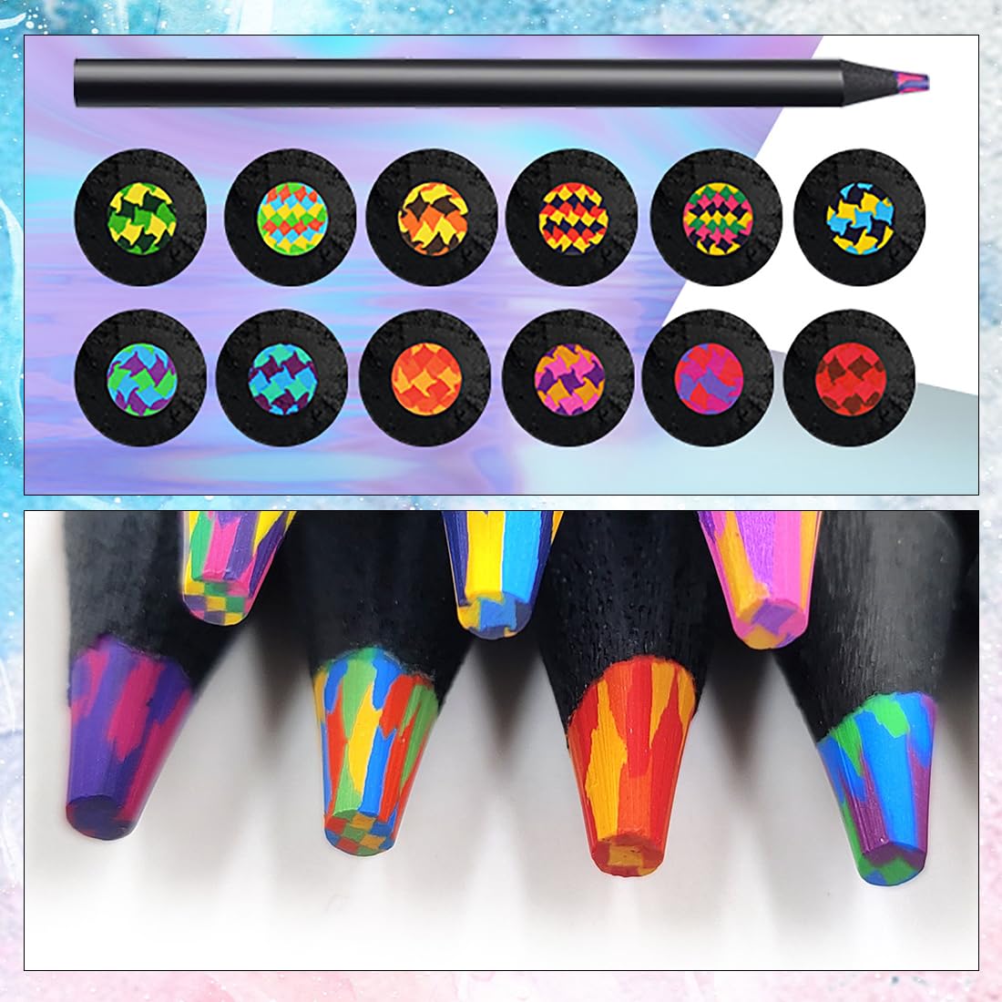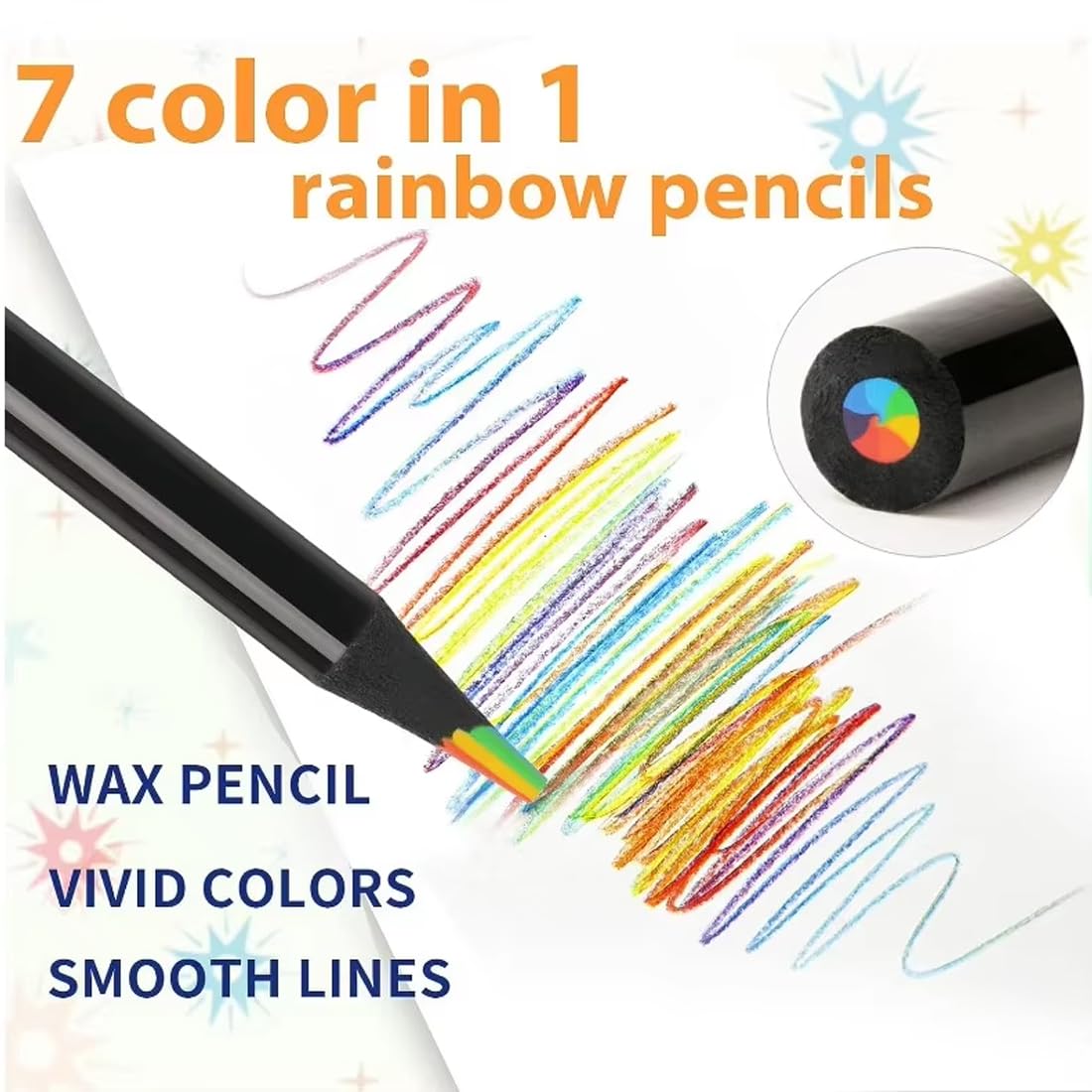 VERSATILE: le penne arcobaleno hanno 7 colori diversi: rosso, arancione, giallo, verde, blu, viola e blu scuro, consentendoti di creare facilmente bellissime sfumature ed effetti di ombreggiatura. DUREVOLE: le nostre matite arcobaleno sono realizzate in legno atossico e resistente e sono pre-affilate per un uso immediato. Non si rompono facilmente, il che garantisce una lunga durata. ADATTI A TUTTI: Che tu sia un artista professionista o un principiante, i nostri pastelli 7 in 1 sono perfetti per scrivere, disegnare, colorare e ombreggiare e sono un'aggiunta versatile alla tua cassetta degli attrezzi artistica. Ideale come regalo: il set di pennarelli è un regalo perfetto per adulti, adatto a compleanni, feste, Natale e altre occasioni speciali, offrendo un'esperienza creativa e divertente. Confezione grande: la confezione contiene 10 matite colorate, sufficienti per l'uso quotidiano e per soddisfare le tue esigenze creative. Goditi il divertimento del colore con questo set completo.