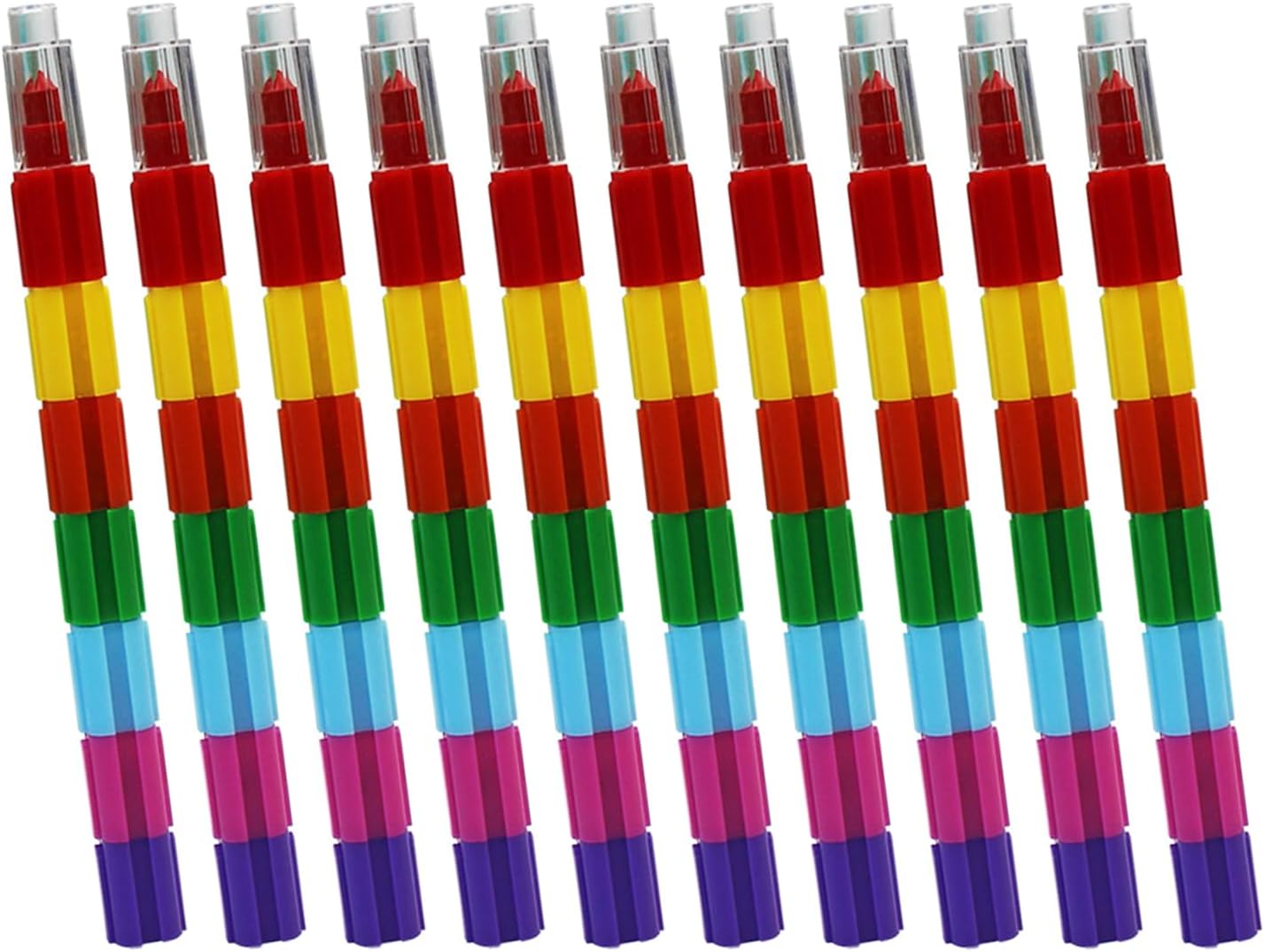 Questa borsa è adatta per borse di compleanno per bambini, riempitivi per calze di Natale, premi per classi studentesche, premi per giochi per bambini, premi per aule e altro ancora. Questa lunghezza di impilamento è di 14,6 cm. Puoi cambiare la posizione del colore e la lunghezza della matita. Le mine colorate sono realizzate in cera di paraffina, leggere e facili da tenere. Sicuri per i più piccoli, tuo figlio può usarli impilabili con sicurezza. Per bambini, bambini piccoli, studenti, disegno, scarabocchiare libri, dipingere, creare cartoline, progetti di artigianato, scrapbooking La confezione include 10 elementi costitutivi. Ogni pastello impilabile equivale a 10 matite rimovibili per l'uso quotidiano dei bambini e per la condivisione con gli amici