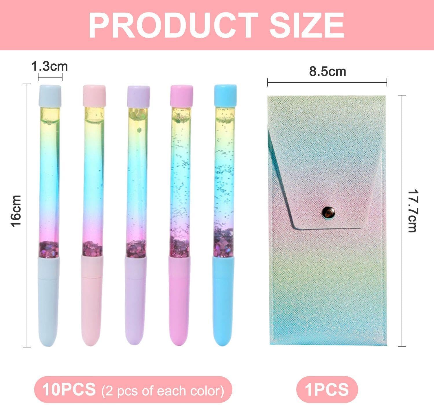 Contenuto Del Prodotto: Riceverai 10 Penne Glitter Colorate E Una Custodia Da 1 Pezzo. La Dimensione Della Penna Glitter Colorata È Di Ca. 16 X 1, 3 Cm E La Dimensione Della Custodia È Di Ca. È Adatto Per La Pittura A Mano E Il Lavoro Creativo Dei Bambini. 【Materiale Del Prodotto】 La Penna Glitterata Di Questo Prodotto È Realizzata In Plastica, Che Ne Garantisce La Durata E L'Uso A Lungo Termine. La Custodia È Realizzata In Tessuto, Leggera E Facile Da Trasportare, Fornendo Una Pratica Soluzione Di Conservazione E Trasporto Per La Tua Cancelleria. 【Design Creativo】Questo Prodotto Presenta Un Design Unico. La Penna Glitter Colorata Presenta Un Design A Colori Sfumati, Che Può Mostrare Effetti Colorati Durante La Scrittura, Adatto A Varie Esigenze Di Disegno E Scrittura A Mano. La Custodia Ha Un Design Elee E Carino, Che Ti Consente Di Riporre E Trasportare Comodamente Le Penne. 【Facile Da Usare】 Queste Penne Glitterate Sono Facili Da Usare, Scrivono Senza Intoppi E Hanno Colori Brillanti Che Non Sbiadiscono Facilmente. La Custodia È Progettata In Modo Intelligente E Offre Spazio Per Diverse Penne, In Modo Che La Tua Cancelleria Sia Sempre Ordinata E A Portata Di Mano. 【Ampia Applicazione】 Questo Prodotto È Molto Adatto A Studenti, Bambini E Tutti I Tipi Di Appassionati Di Artigianato. Che Venga Utilizzato Per La Scrittura Quotidiana, Il Disegno A Mano O La Creazione Artistica, Può Soddisfare Le Tue Esigenze E Aggiungere Colore E Riflessi Ai Tuoi Lavori.