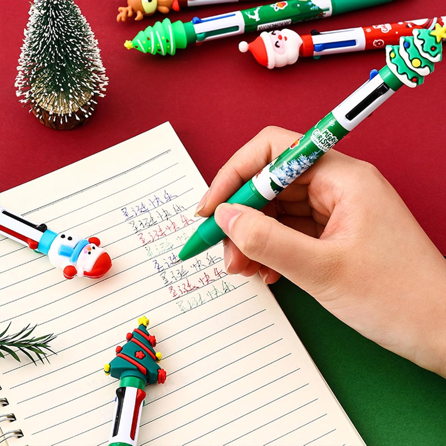 La confezione include: 10 penne a sfera multicolore retrattili, quantità sufficiente per soddisfare l'uso quotidiano e condividere le esigenze. Scrivi senza intoppi, asciugatura rapida. Adatto per scrivere, prendere appunti, codifica a colori, diario giornaliero, agenda, calendario. Molto adatto per riempitivi per calze natalizie, riempitivi per sacchetti di caramelle, premi di gioco divertenti, ricompense per la classe degli studenti, regalo di San Valentino per bambini, regalo di compleanno. Con un aspetto delicato e una funzione utile, nero, rossore, blu e verde, penna a sfera a 4 colori in 1 penna a sfera retrattile multicolore ampiamente utilizzata per scuola, ufficio, feste di compleanno, vacanze e altre occasioni. Ogni penna a sfera multicolore misura 15 cm di lunghezza. Adatto per codifica a colori, note, scrittura di promemoria, disegno, disegno, firma, pittura, pubblicità.