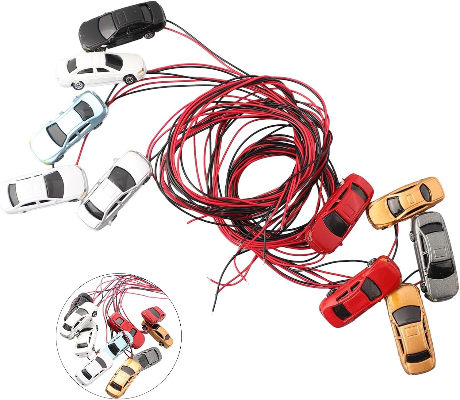 [MINIATURA FERROVIA]: queste auto paesaggistiche con treno modello in scala 1:200 sono perfette per layout ferroviari ed edifici, fornendo un'aggiunta realistica al tuo scenario di scala Z. [VEICOLI ILLUMINATI]: ogni modello di auto è dotata di LED che simulano sia i fari che le luci posteriori, dando al tuo layout una dimensione aggiuntiva della realtà. [FACILE DA USARE]: le auto possono essere alimentate direttamente con una tensione di 12 V. A tensioni più elevate, si consiglia di utilizzare un resistore per evitare danni. Si prega di notare la corrente di funzionamento consigliata di 20 mA. [UTILIZZO VERSATILE]: questi veicoli in miniatura sono ottimi per diversi scenari di modellismo, tra cui paesaggi urbani, stazioni ferroviarie e scene stradali e aggiungono realismo al tuo ulteriore realismo. [SET DI 10 AUTO]: questo set contiene 10 modellini di auto in plastica di alta qualità. I colori delle auto sono scelti a caso, il che aggiunge varietà al tuo scenario. Si prega di notare che a causa dei diversi lotti di produzione sono possibili lievi variazioni.