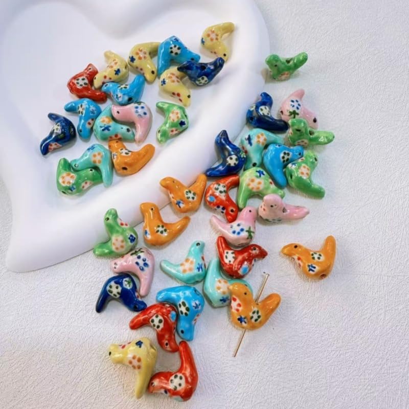 Perline sfuse in ceramica a forma di animale con fori per infilare per un facile utilizzo, dimensioni delle perline: 13x18 mm, diametro del foro: circa 2 mm, 10 pezzi/confezione Queste perle di porcellana dipinte a mano sono progettate a forma di animali, delicate e carine, con colori intensi, rendendo i tuoi gioielli fai da te più giocosi e unici Queste perline di ceramica a forma di animale possono essere abbinate a perline di cristallo, perline con lettere, perline o altre perline distanziatrici, oppure utilizzate come decorazioni pendenti per creare bellissimi braccialetti Queste perle a forma di animale sono realizzate in ceramica con una superficie liscia e lucida, non facili da rompere o sbiadire, comode da indossare e possono essere utilizzate a lungo Queste perline sfuse in ceramica smaltata sono versatili e perfette per realizzare braccialetti di perline, collane, orecchini, ciondoli, portachiavi, creazione di gioielli e vari lavori artigianali fai da te