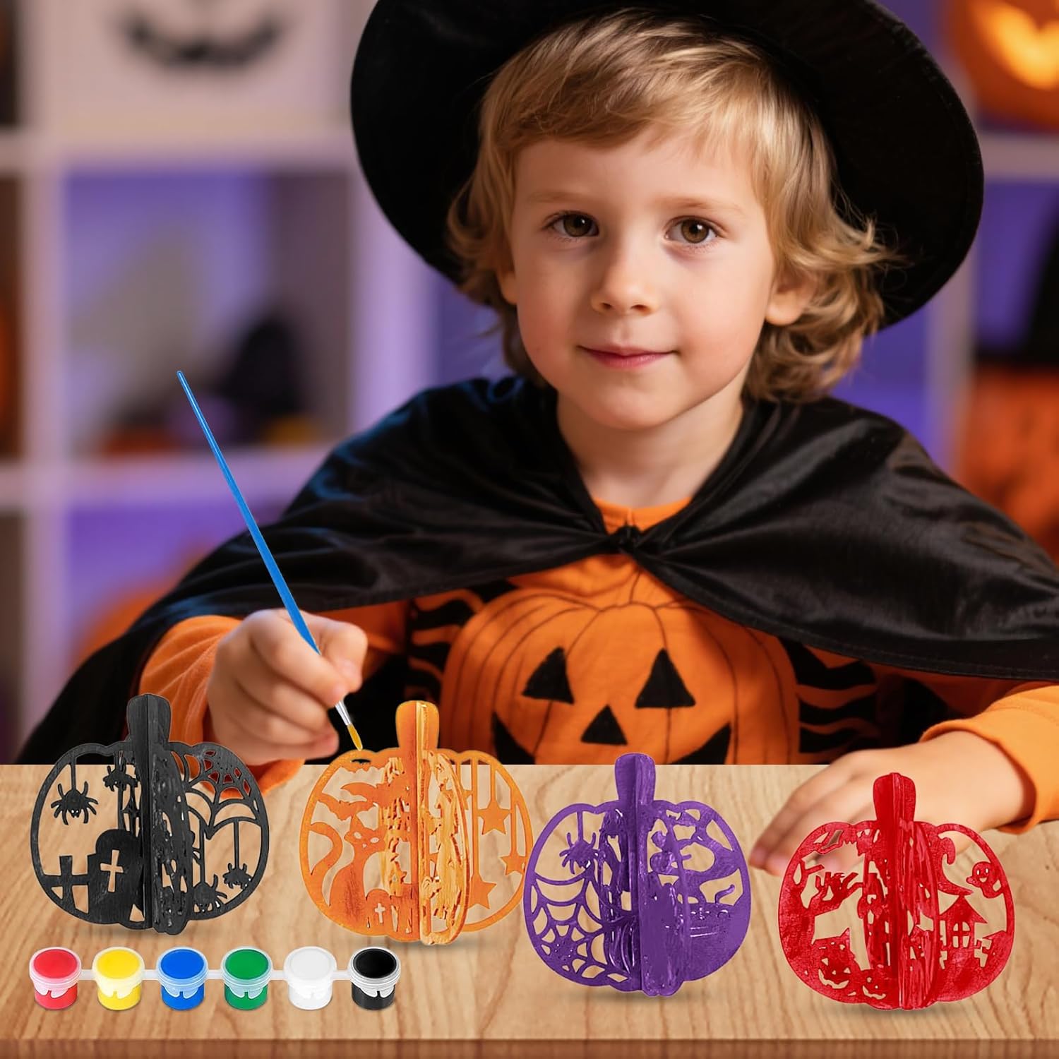 Zucca in legno per bambini: questo set per Halloween contiene 20 pezzi in legno di zucca, 24 colori colorati e 4 pennelli. Diversi design di zucche portano diverse esperienze creative, regali fai da te perfetti per ragazzi e ragazze che offrono piacere visivo attraverso le creazioni dei bambini Materiali di alta qualità: la zucca da dipingere è realizzata in legno di alta qualità con una superficie finemente lucidata, liscia e senza sbavature, che garantisce la sicurezza per i bambini. È facile da dipingere ed è una scelta ideale per il fai da te dei bambini Stimolare la creatività: i bambini possono dipingere e decorare secondo le proprie preferenze, lasciando libero sfogo alla loro creatività. Dopo aver dipinto, attendere che i pezzi di legno si asciughino, quindi attraversare due fette di legno per formare una decorazione a zucca 3D Decorazione autunnale per Halloween: queste parti in legno di zucca sono decorate con motivi traforati artistici, tra cui streghe, fantasmi e gatti neri. Le decorazioni a forma di zucca finite possono essere utilizzate come decorazioni da tavolo o appese a porte, finestre o in giardino e aggiungono un tocco di Halloween alla tua casa Regalo di Halloween per bambini: questi kit di zucca in legno non sono solo un divertente progetto fai da te per tutta la famiglia, ma anche perfetti per decorazioni di Halloween. Sono perfetti per attività artigianali per Halloween, autunno, Ringraziamento, feste di compleanno, Natale e altre festività