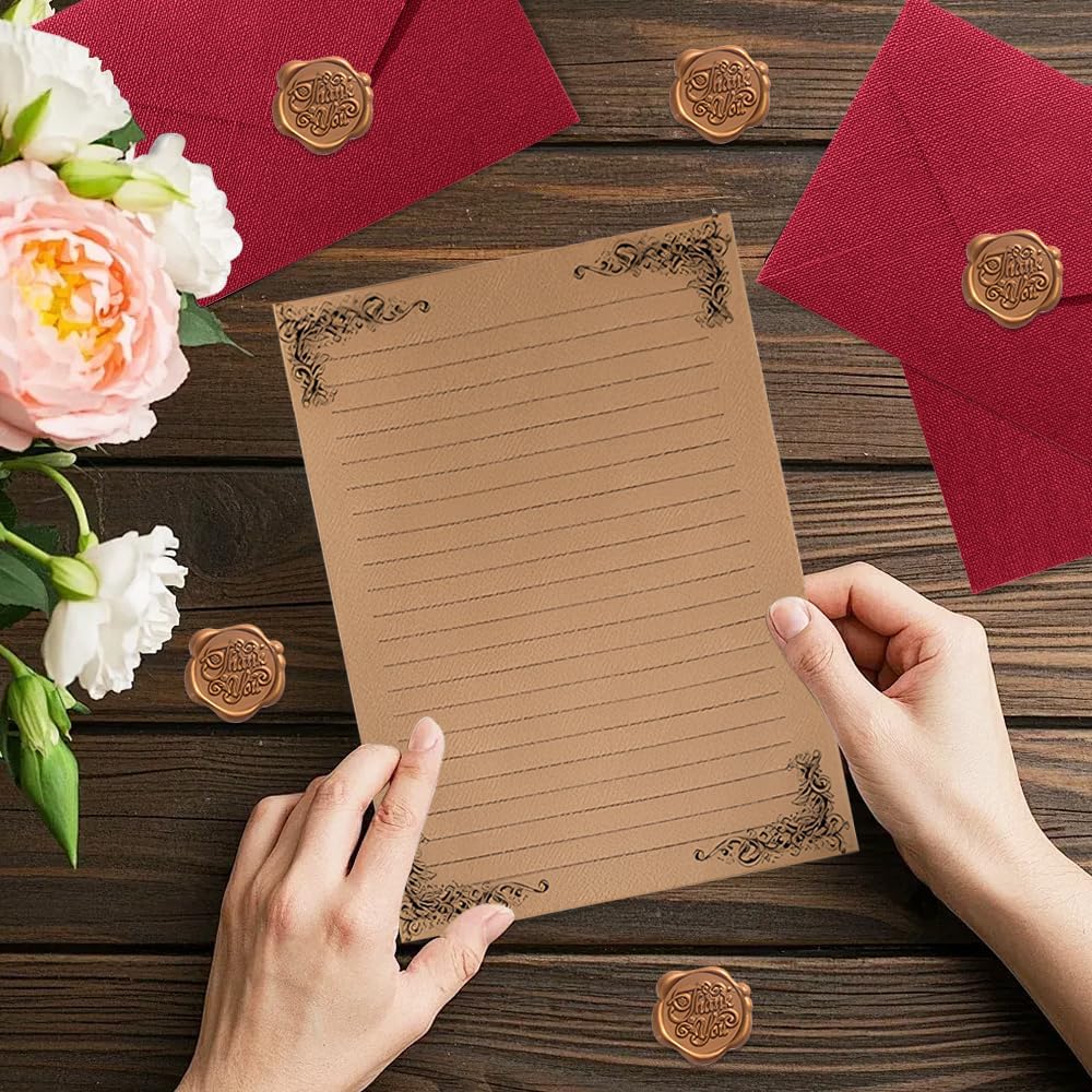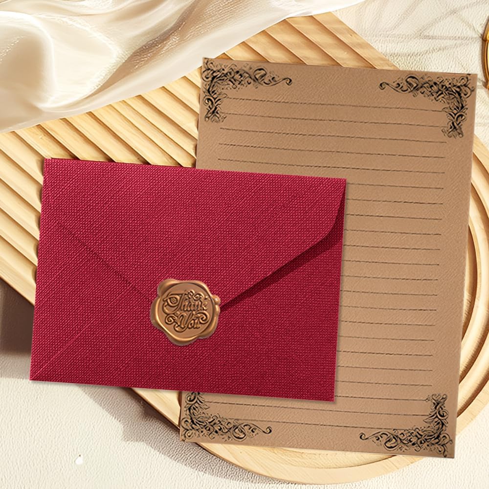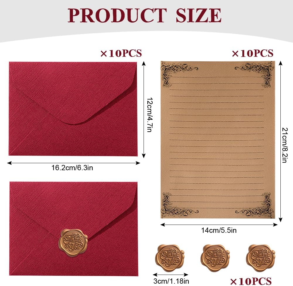 Contenuto: riceverai 10 fogli di carta da lettere vintage, 10 buste vintage e 10 adesivi classici con sigillo in ceralacca, per un'esperienza di scrittura tradizionale completa. Sono il mezzo perfetto per esprimere i propri sentimenti e sono adatti a tutte le occasioni speciali. Materiali di alta qualità: ogni lettera e busta vintage è realizzata con carta di alta qualità, caratterizzata da una consistenza consistente che resiste agli strappi. L'eccellente assorbimento dell'inchiostro la rende ideale per penne stilografiche e altri strumenti di scrittura, pur rimanendo compatibile con la maggior parte delle stampanti per soddisfare sia le esigenze moderne che quelle tradizionali. Design vintage: motivi vintage e toni caldi conferiscono al nostro set di cancelleria un fascino storico, evocando sentimenti nostalgici. La tonalità marrone antico non solo migliora l'aspetto visivo, ma riduce anche il riverbero, alleviando significativamente l'affaticamento degli occhi durante la scrittura. Il regalo perfetto: questo raffinato set di cancelleria vintage è un regalo ideale per compleanni, matrimoni, anniversari e altre occasioni speciali. Il suo stile unico e nostalgico regalerà sicuramente gioia ed emozione indimenticabili a chi lo riceverà. Utilizzo versatile: che si tratti di scrivere lettere d'amore, inviti di nozze o messaggi di laurea, questo set da scrittura vintage eccelle in ogni ruolo. È anche possibile ritagliarlo liberamente per progetti di artigianato fai da te, creando opere artistiche personalizzate.