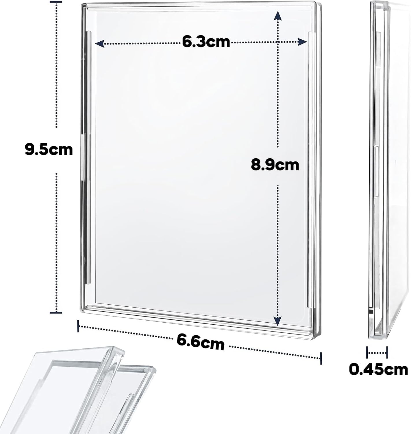 Specifiche Standard:: Il nostro set di valore include 10 pacchetti di autentici portacarte magnetici, la sua dimensione interna è di 2,52 * 3,54 pollici (6,4 * 9 cm), la dimensione esterna è di 2,72 * 3,47 pollici (6,9 * 9,5 cm), 0,2 pollici (5 mm) di spessore, chiaro come il vetro, in modo da poter vedere ogni dettaglio della carta senza estrarla, il design dell'angolo del diamante protegge i quattro angoli della tua preziosa carta dalla piegatura. Materiale protettivo di alta qualità: le nostre ghiere sono realizzate con materiali di alta qualità, non tossici e insapori, robusti e durevoli porta carte collezionabili, mantengono le carte libere da graffi, rughe e piegature. Se collezionate figurine: indossate i guanti per la pulizia, aprite la custodia delle figurine e riponete con cura la vostra figurina preferita all'interno. In questo modo potrete riporre e recuperare facilmente le carte e le vostre preziose carte saranno sempre pulite e ben protette. Grande scelta regalo: i nostri portacarte sono adatti per carte standard. I supporti per carte sono adatti per MTG, carte di calcio, carte sportive, carte collezionabili e molti altri tipi di carte standard. I manicotti rigidi per carte sono molto amati da altri collezionisti. Un regalo ideale per i collezionisti di carte, i bambini e gli amici, per proteggere e mostrare le carte più amate. SERVIZIO DOPO LA VENDITA : Fornire un'esperienza di soddisfazione di qualità è la nostra massima priorità per i nostri clienti. Sentitevi liberi di contattarci, siamo felici di aiutarvi e faremo tutto il possibile per soddisfarvi”.