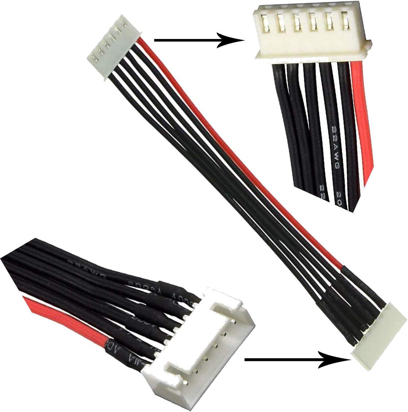 Cavo di prolunga per bilanciamento 5S 6-Pin adattatore RC lipo spina maschio a femmina connettore JST-XH. Tipo di filo: 22AWG; Lunghezza : 150mm Quantità del pacchetto: 10 pezzi. Progettato per batterie al litio 2s-6s. Accessorio perfetto per bilanciare le batterie.
