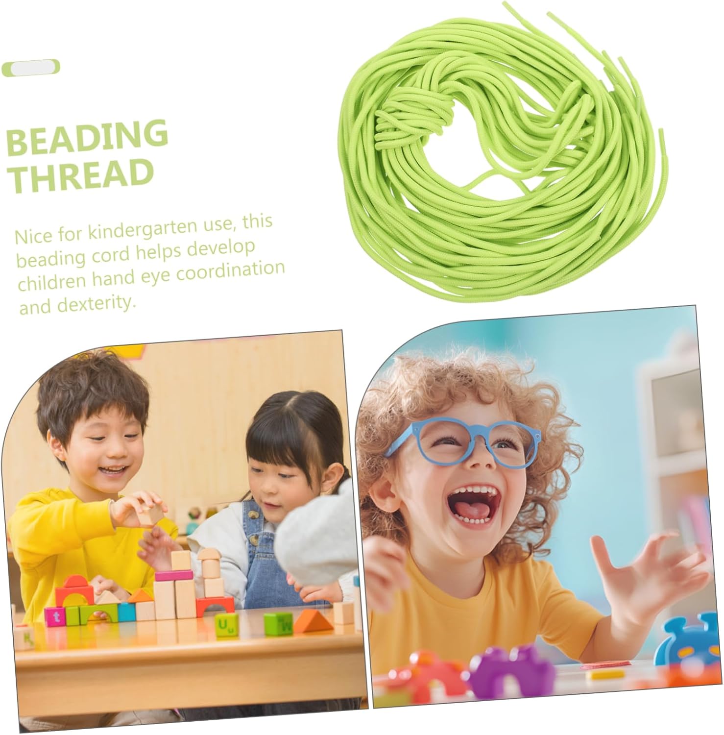 Ispira la creatività: usare questo filo di perline nei progetti incoraggia i bambini a usare la propria immaginazione e pensare in modo creativo, Utilizzare accessori per giochi con perline all'asilo, Infilare i lacci delle scarpe: Il design del filo di perline è visivamente accattivante per i bambini, rendendolo uno strumento attraente per le attività di infilatura, Filo per perline, filo per l'asilo per bambini Incoraggia la creatività: Partecipare ad attività di perline con questo filo aumenta la creatività e l'immaginazione dei bambini e rende divertente l'apprendimento. cordino da gioco con perline, cordino da gioco con perline per la scuola materna Design facile da usare: il cordone di perline è progettato per un facile infilamento, consentendo ai bambini di infilare perline con il minimo aiuto, accessori per perline, cordoncino per creare gioielli Colori accattivanti: i colori vivaci del cordone di perline attirano l'attenzione dei bambini e rendono l'infilatura più emozionante e divertente. filo di rilegatura, accessori per il gioco con perline