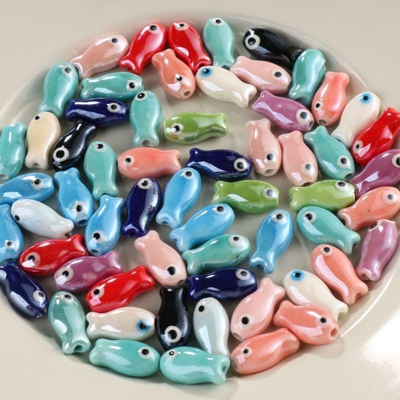 La dimensione di questa perlina di ceramica colorata a forma di pesce è di 19 mm, il diametro del foro è di 2,5 mm, colori misti, colori ricchi e belli, per soddisfare le tue diverse esigenze di perline Queste perle sciolte a forma di pesce sono realizzate con squisita lavorazione artigianale in ceramica, con una superficie delicata e liscia, colore brillante, non sbiadiscono facilmente, leggere e resistenti, comode da indossare Queste perle di ceramica sono splendidamente progettate con adorabili motivi a forma di pesce e stampe colorate piene di vitalità, il design del pesce aggiunge un elemento naturale giocoso e vivace alle tue perline fai da te Queste perle di porcellana a forma di pesce sono perfette per realizzare braccialetti di perline, collane, portachiavi, ciondoli, accessori di gioielleria e vari lavori artigianali fai da te Queste perle di ceramica colorate a forma di pesce possono essere abbinate ad altre perle di cristallo, pendenti e perline distanziatrici per creare opere uniche e squisite che aggiungono fascino al tuo outfit