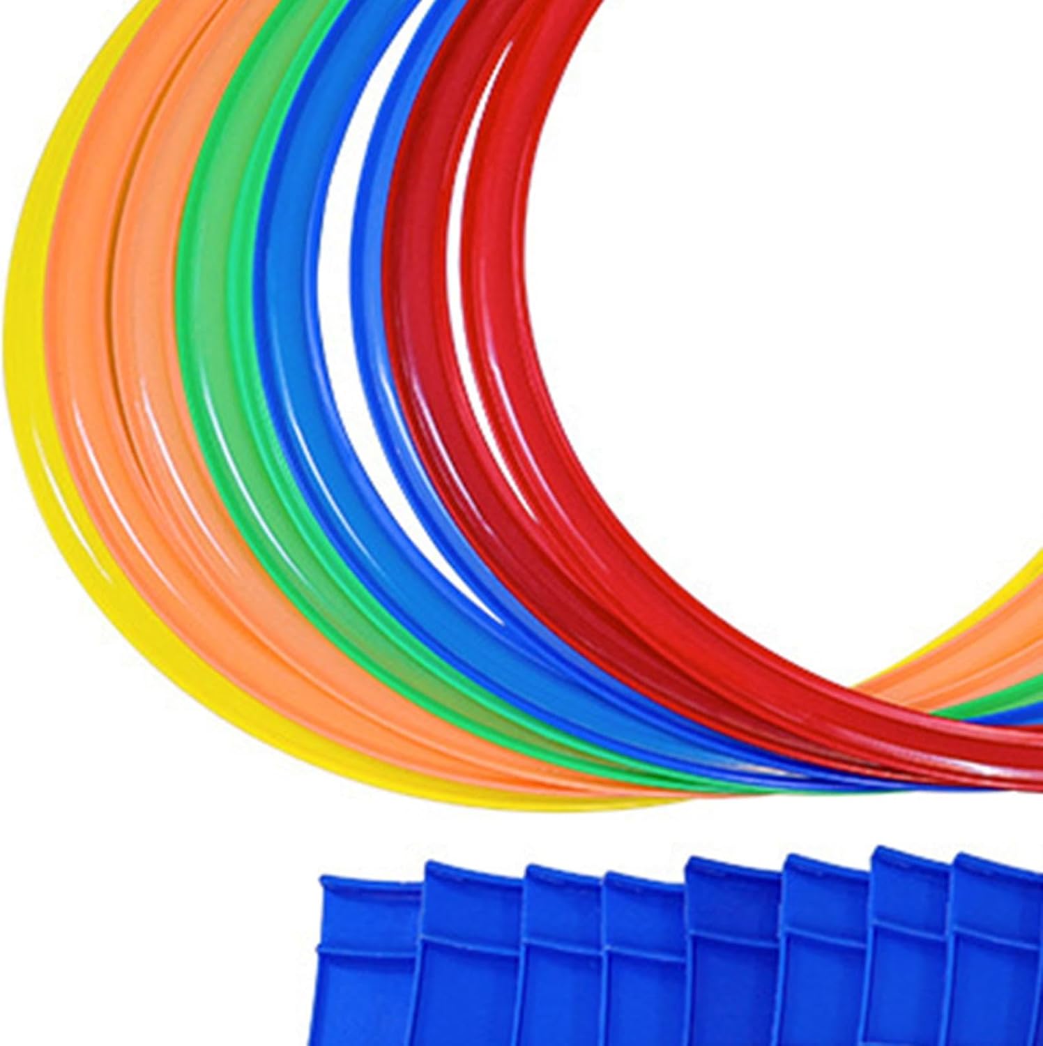 【Assemblaggio sicuro e stabile】: Caratterizzati da un design di chiusura ben studiato, anelli del gioco della campana si collegano saldamente con fibbie solide che impediscono l'allentamento durante il gioco, fornendo un per attività energiche 【Set completo per una facile installazione】: il pacchetto include 10 anelli, 10 fibbie, una custodia e un sacchetto per garantire una facile installazione e una comoda conservazione dopo l'uso. Questo set è ideale per creare diverse configurazioni per mantenere i bambini impegnati nell'attività fisica. 【Design flessibile】: Realizzati in PE semi-morbido, questi anelli per campana sono flessibili e resistono a rotazioni e rotazioni senza rompersi. La struttura robusta promette un'esperienza di gioco duratura per i bambini. 【Strumento di sviluppo sensoriale】: questo set di giochi della campana è un ottimo dispositivo di allenamento sensoriale che aiuta a migliorare la concentrazione dei bambini, le capacità di coordinazione motoria e migliora la connessione tra mente e corpo attraverso il gioco attivo. 【Funzionalità di sicurezza avanzate】: ogni anello è dotato di un design con scanalatura antiscivolo sul fondo, che offre una sicurezza pratica riducendo il rischio di scivolamento durante l'uso, rendendolo ideale per il divertimento all'aperto