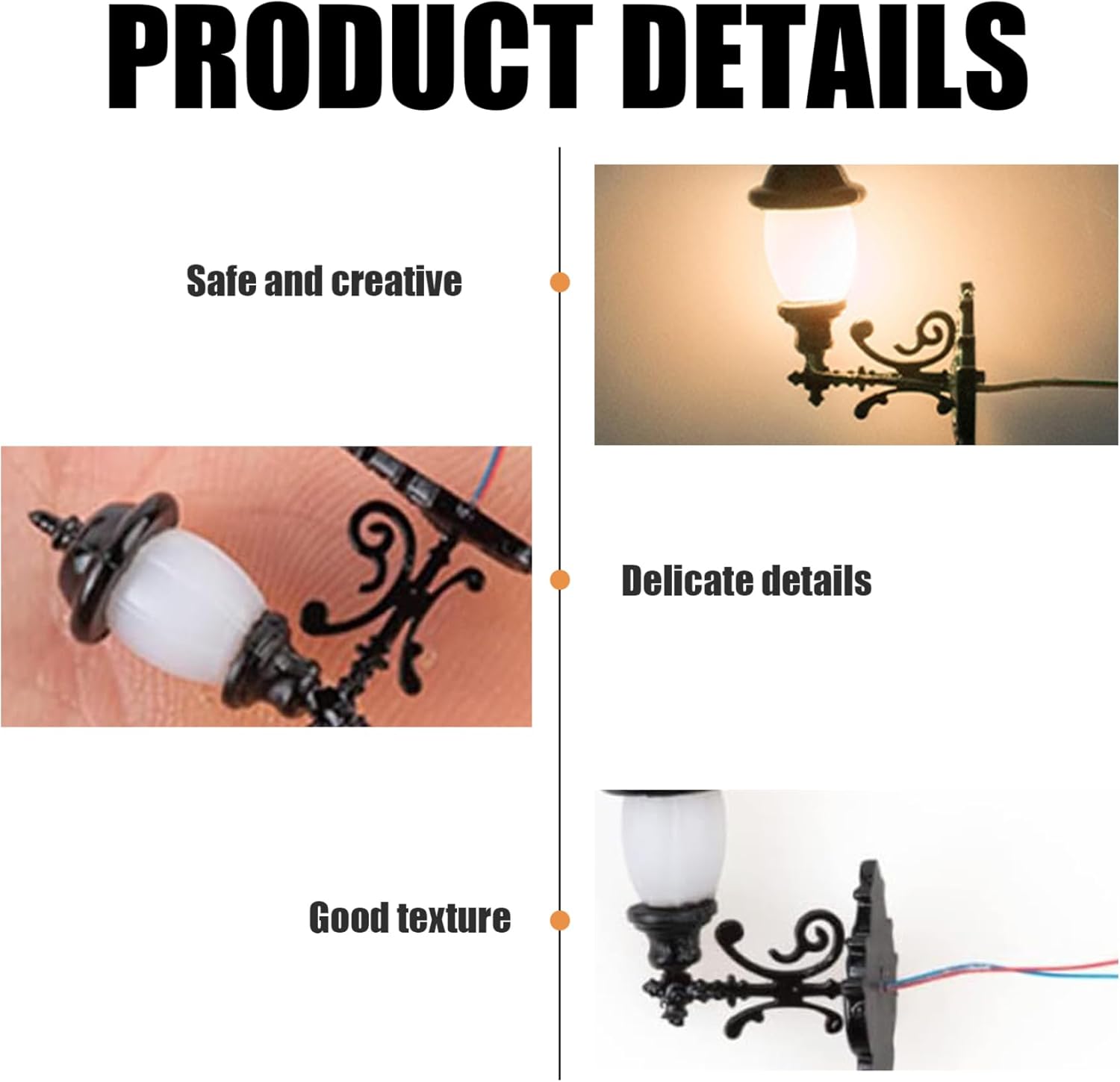 Accessorio perfetto per gli appassionati: ideale sia per i principianti che per gli appassionati di una casa di bambola, queste luci della casa delle bambole sono accessori per la decorazione essenziali che migliorano il fascino e i dettagli dei tuoi mondi in miniatura. Glow a LED caldo: trasforma i tuoi spazi in miniatura con la luce morbida e calda emessa dalle nostre mini lampade a parete a LED..Perfetti per creare un'atmosfera accogliente, queste luci forniscono l'atmosfera ideale per le scene della tua casa delle bambole. Opzioni decorative versatili: queste luci del paesaggio da parete non sono solo per le case delle bambole!.Usali in modo creativo per tavoli di sabbia fai -da -te o altri progetti in miniatura, offrendo infinite possibilità di mostrare le tue capacità di creazione e creatività. Design in miniatura realistica: migliora la tua casa delle bambole con 10 pezzi di luci in scala realistiche 1:87!.Queste lampade in miniatura sono realizzate in addominali di qualità e acciaio inossidabile, offrendo un aspetto autentico che eleva qualsiasi impostazione delle bambole. Facile da installare: progettato per la decorazione senza problemi, ogni lampada è intuitiva e può essere facilmente posizionata all'interno dell'impostazione in miniatura..Basta montare o attaccarli dove desideri, facendo un gioco da ragazzi!