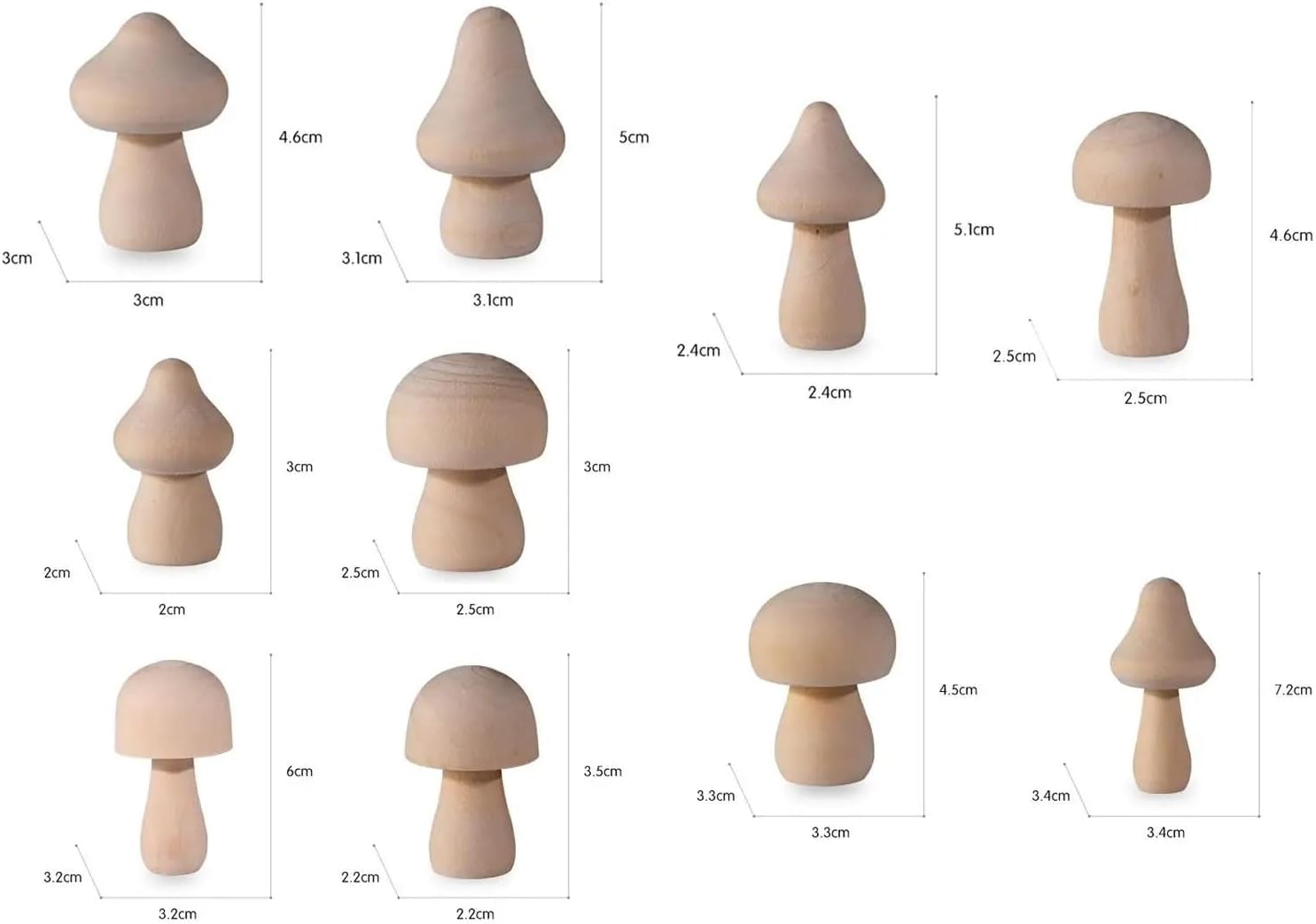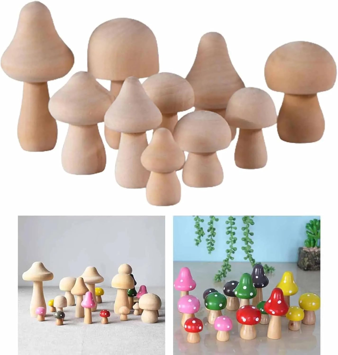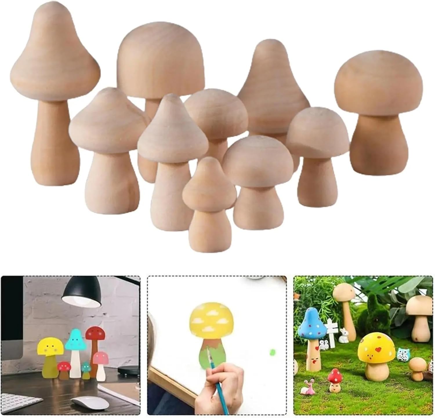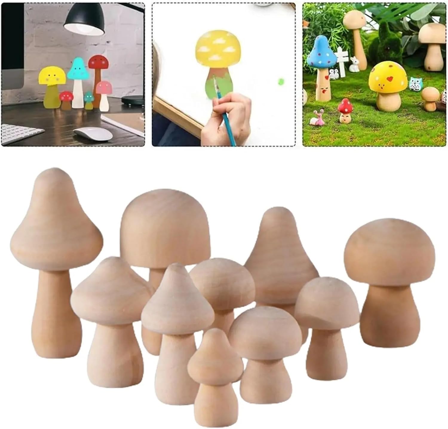 10 pezzi di bambole legno semplici e grezze a forma fungo, for decorazioni fai da te
