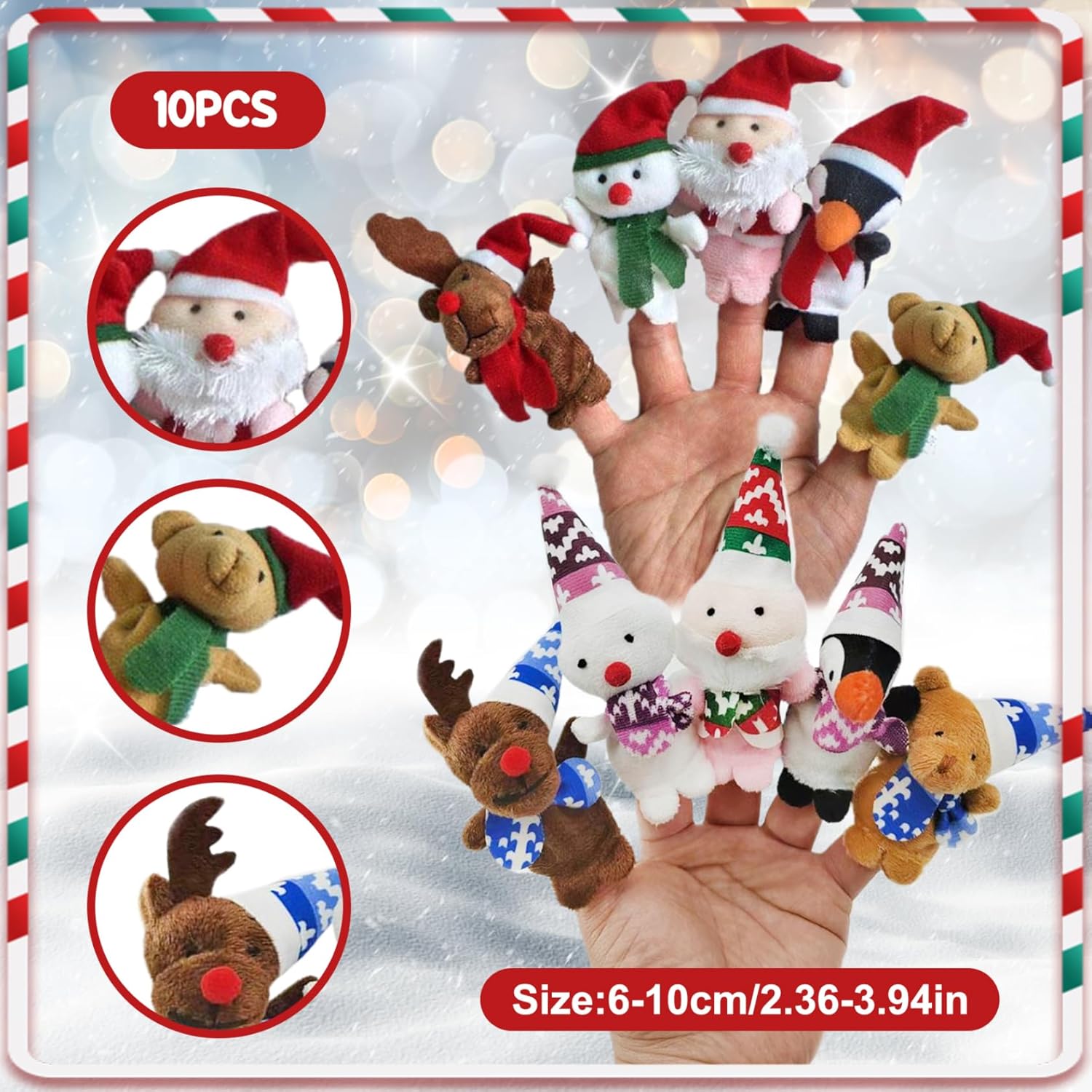 Playtime coinvolgente ed educativo: i nostri burattini per bambini di età compresa tra 4 e 8 anni trasformano il gioco di gioco in un'esperienza interattiva ed educativa..Attraverso il gioco di ruolo, i bambini imparano abilità e valori sociali come l'amicizia e il lavoro di squadra. Versatile: ideale per compleanni, Natale o ogni occasione, questi giocattoli di Natale sono un riflesso che intratterrà ed educerà..I genitori apprezzeranno il valore che apportano al gioco, in quanto incoraggiano il gioco interattivo offrendo al contempo opportunità ai bambini di sviluppare le loro capacità comunicative. Facile da usare: i nostri burattini per bambini per bambini 3-5 sono progettati per i bambini, con un design flessibile per spettacoli dinamici..Le aperture delle dita ospitano varie dimensioni, garantendo una vestibilità comoda..I bambini più piccoli possono facilmente scivolare due dita nel buco per un migliore controllo, rendendo semplice dare vita ai personaggi. Stili diversi per il gioco fantasioso: i nostri burattini per i più piccoli 1-3 sono disponibili in due deliziosi stili: un set presenta classici cappelli rossi, mentre l'altro mette in mostra cappelli vibranti e colorati..Questa varietà non solo aggiunge un fascino visivo, ma incoraggia anche i bambini a impegnarsi nella narrazione creativa. Morbido e sicuro: realizzati in morbido peluche, questi burattini sono sicuri per piccole mani..Il materiale morbido è delicato contro la pelle, rendendoli perfetti per i bambini..Il loro design leggero li rende facili da afferrare e manipolare, migliorando l'esperienza di gioco generale.