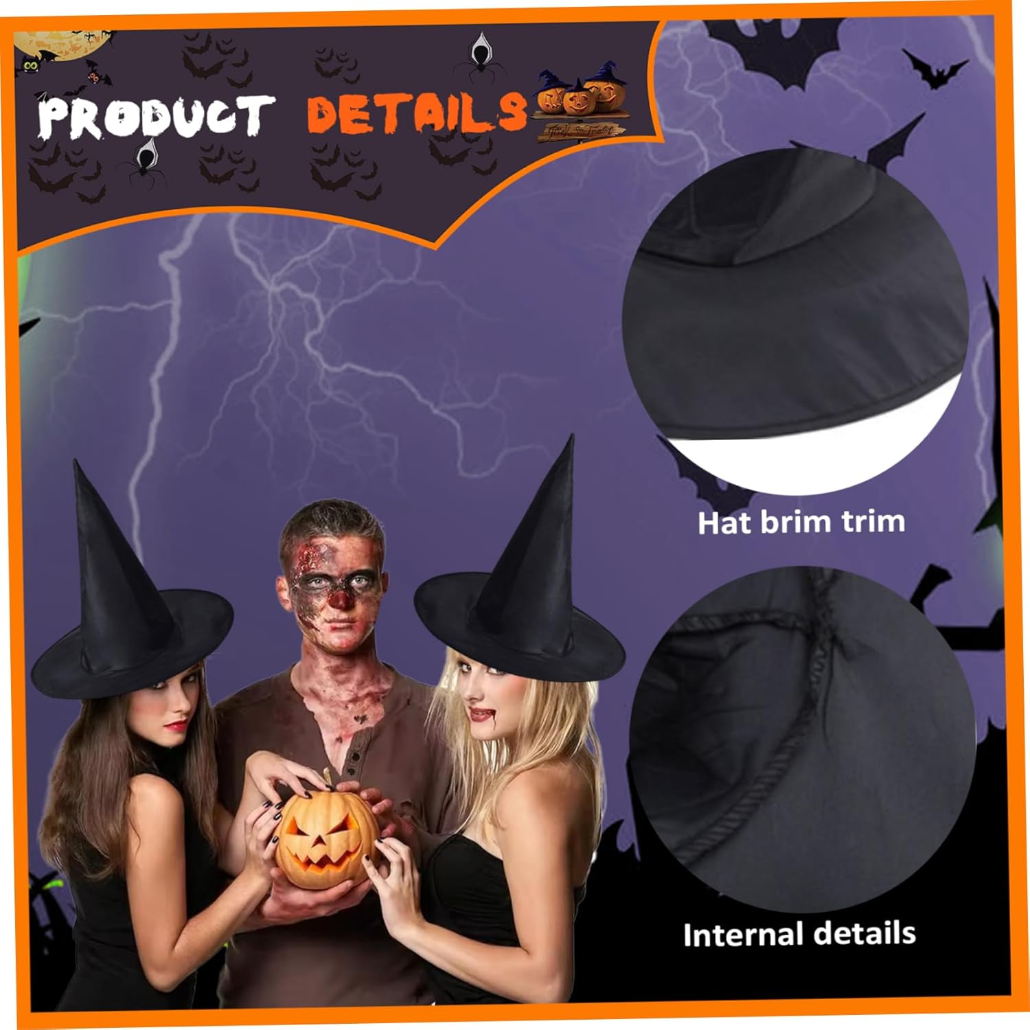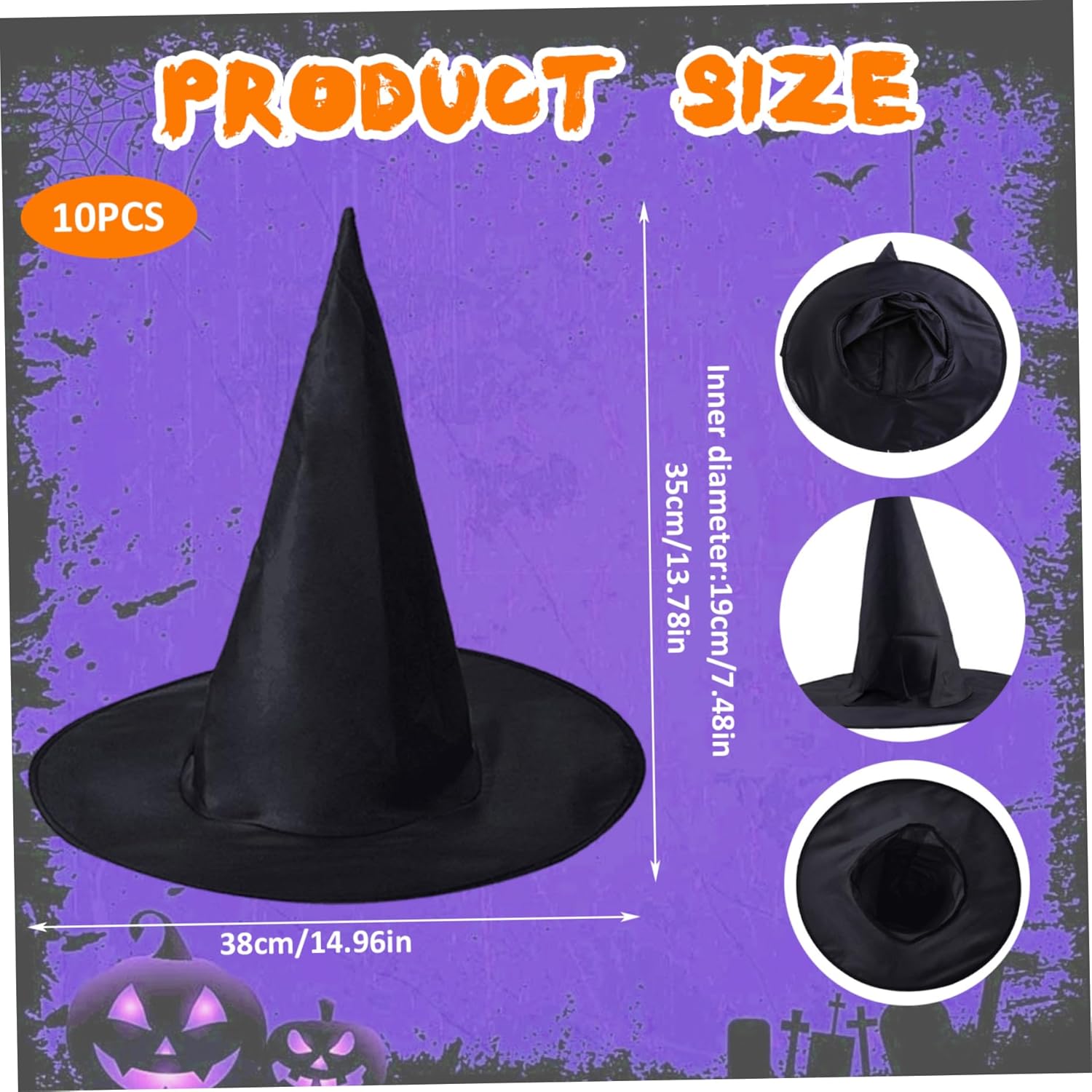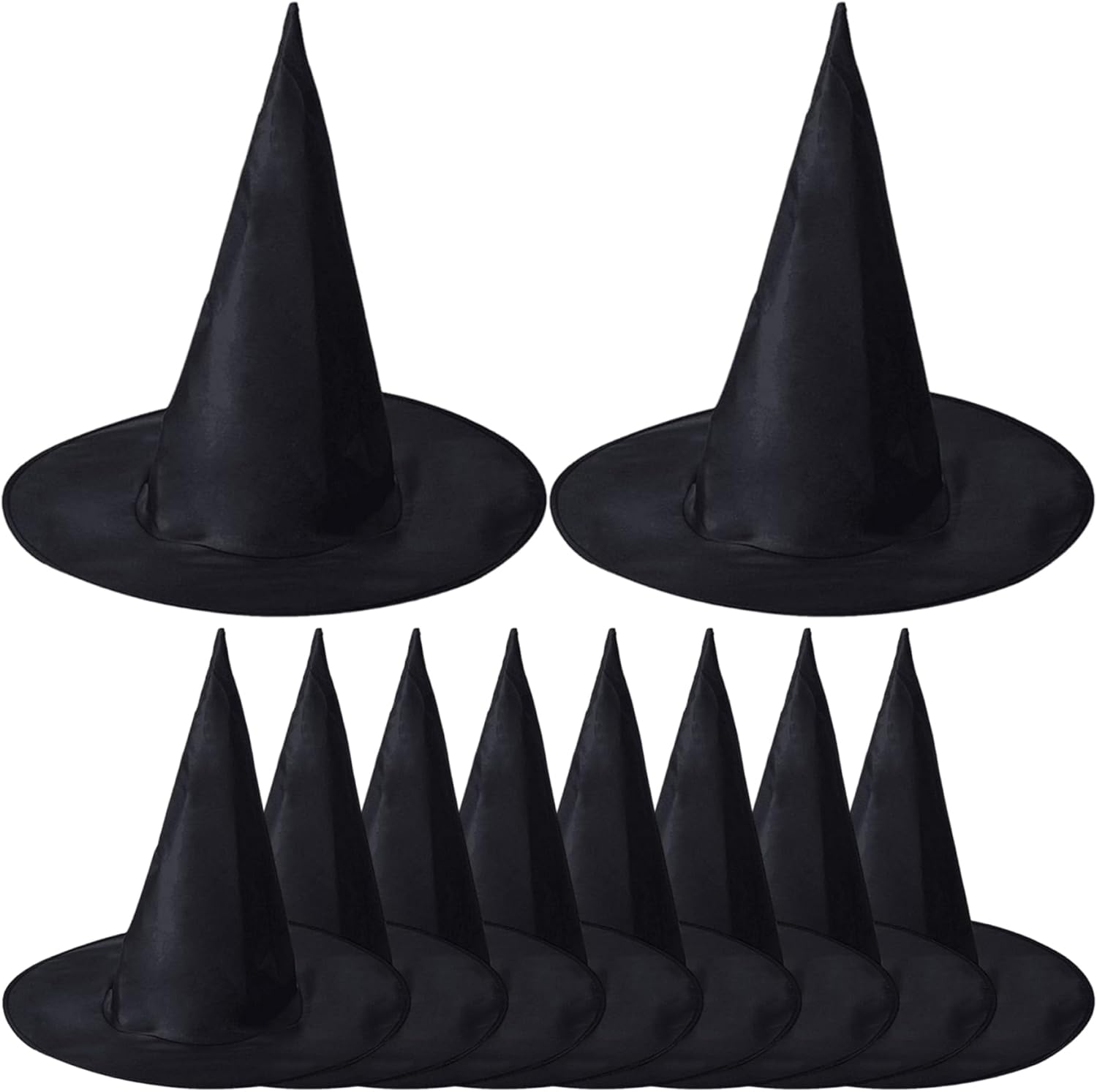Accessorio per feste versatili: ideale per Halloween, Carnivali, eventi di cosplay, feste a tema magico o produzioni teatrali..Funzionano benissimo come oggetti di scena fotografica, bomboniere o anche i traguardi. Piegabile e portatile: la costruzione del tessuto consente a questi cappelli di essere facilmente piegati e imballati senza occupare spazio, rendere semplice e trasportati semplici prima o dopo l'evento. Fit confortevole: realizzato in tessuto oxford morbido e leggero, questi cappelli sono traspiranti e delicati sulla pelle, consentendo lunghe ore di usura senza disagio durante le feste o le sfilate. Pacchetto di 10 per divertimento di gruppo: con 10 cappelli in ogni set, sono perfetti per riunioni di famiglia, eventi scolastici, feste a tema, spettacoli teatrali o concorsi di costumi: tutti si uniscono al divertimento! Stile stregone classico: questi cappelli da stregone appuntiti presentano l'iconica forma di cono alto e largo bordo, aggiungendo un tocco magico a qualsiasi costume di Halloween, cosplay o aspetto da festa.