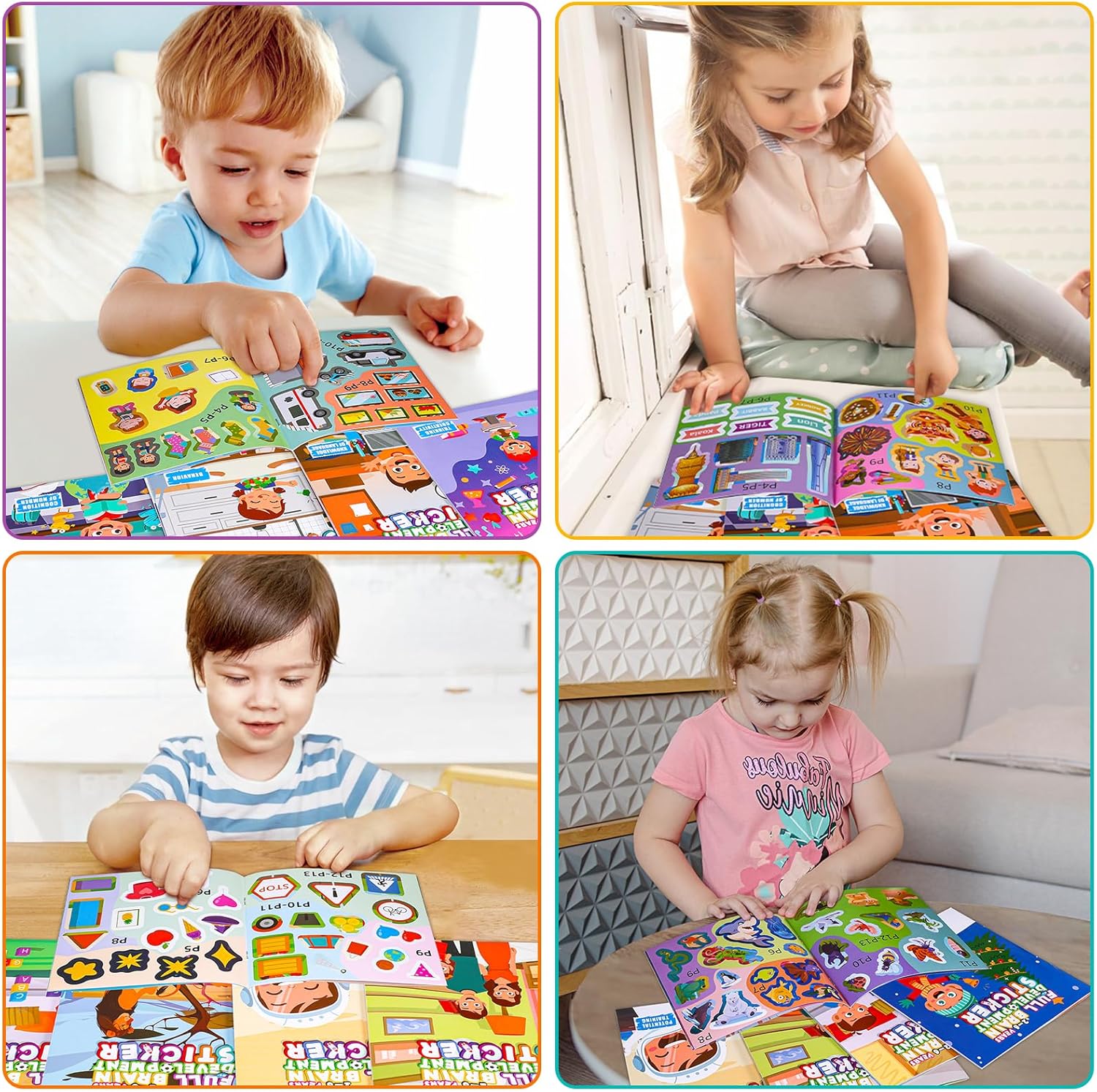 10 pezzi di libri di adesivi educativi per bambini, vari temi e stili ricchi, facili da riutilizzare, libri adesivi, pacchetto attività