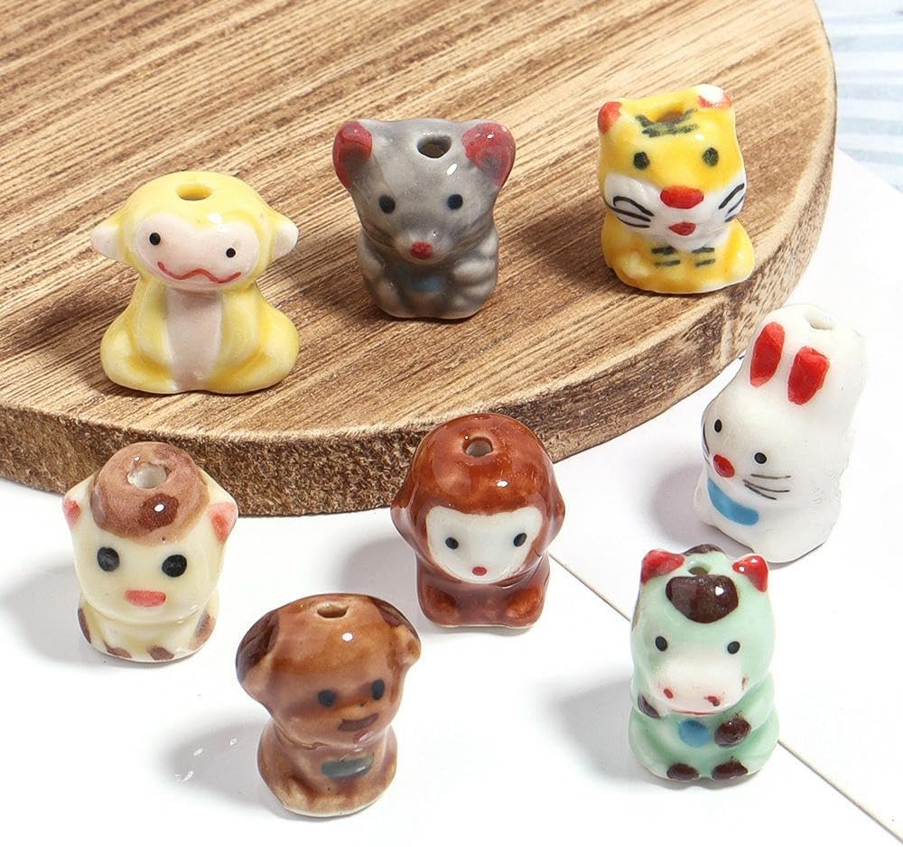 Perline sfuse in ceramica a forma di animale con fori per un facile utilizzo, dimensioni delle perline: 17x18 mm, 12x18 mm, ecc., diametro del foro: circa 2 mm, 10 pezzi/confezione Queste perle di porcellana dipinte a mano sono progettate a forma di animali, delicate e carine, con colori intensi, rendendo i tuoi gioielli fai da te più giocosi e unici Queste perline di ceramica a forma di animale possono essere abbinate a perline di cristallo, perline con lettere, perline o altre perline distanziatrici, oppure utilizzate come decorazioni pendenti per creare bellissimi braccialetti Queste perle a forma di animale sono realizzate in ceramica con una superficie liscia e lucida, non facili da rompere o sbiadire, comode da indossare e possono essere utilizzate a lungo Queste perline sfuse in ceramica smaltata sono versatili e perfette per realizzare braccialetti di perline, collane, orecchini, ciondoli, portachiavi, creazione di gioielli e vari lavori artigianali fai da te