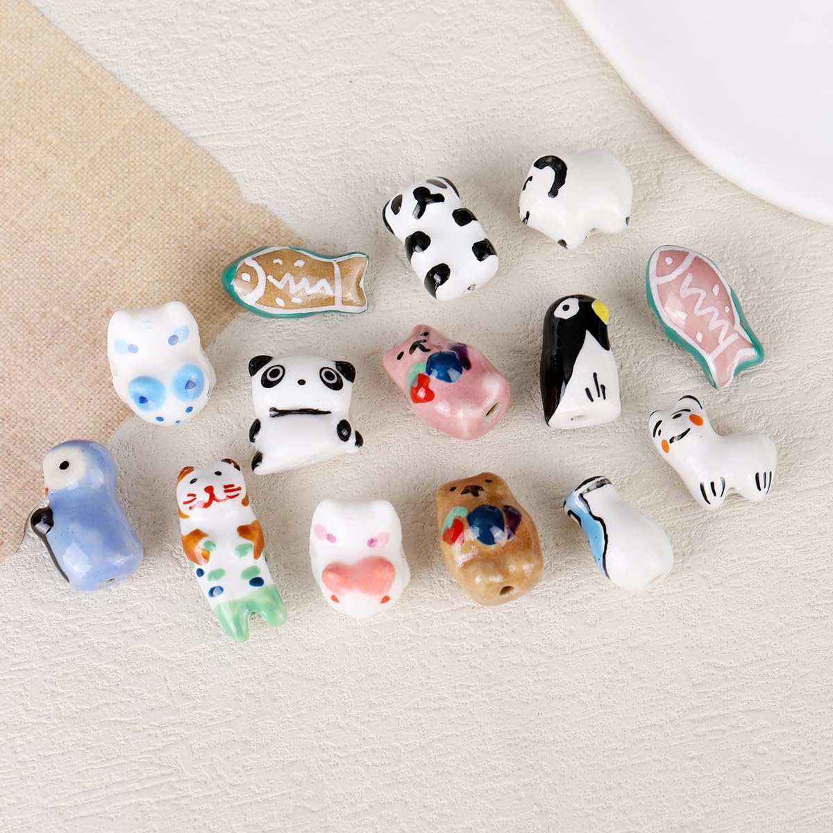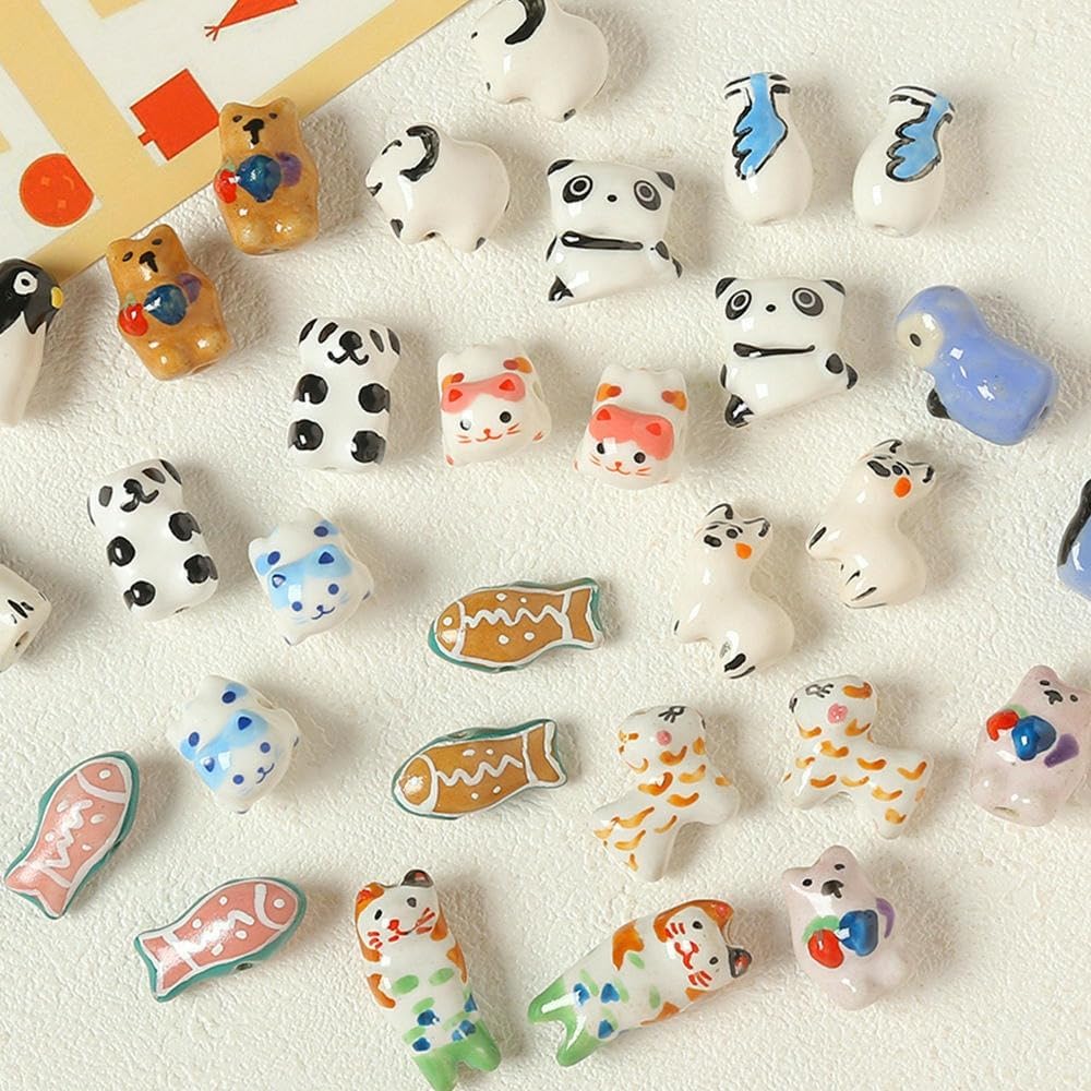 Perline sfuse in ceramica a forma di animale con fori per infilare per un facile utilizzo, dimensioni delle perline: 14x17 mm, 16x18 mm, 12x26 mm, ecc., diametro del foro: circa 2 mm, 10 pezzi/confezione Queste perle di porcellana dipinte a mano sono progettate a forma di animali, delicate e carine, con colori intensi, rendendo i tuoi gioielli fai da te più giocosi e unici Queste perline di ceramica a forma di animale possono essere abbinate a perline di cristallo, perline con lettere, perline o altre perline distanziatrici, oppure utilizzate come decorazioni pendenti per creare bellissimi braccialetti Queste perle a forma di animale sono realizzate in ceramica con una superficie liscia e lucida, non facili da rompere o sbiadire, comode da indossare e possono essere utilizzate a lungo Queste perline sfuse in ceramica smaltata sono versatili e perfette per realizzare braccialetti di perline, collane, orecchini, ciondoli, portachiavi, creazione di gioielli e vari lavori artigianali fai da te