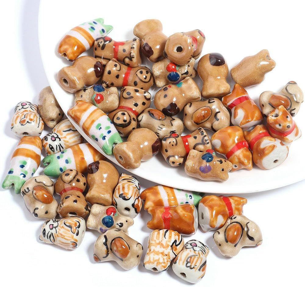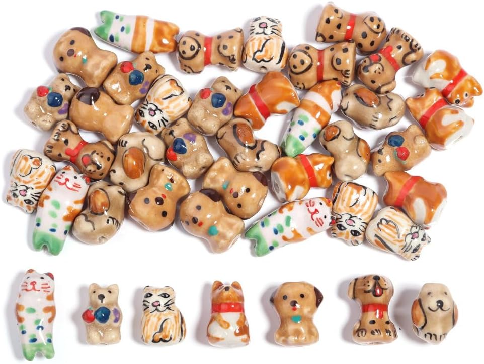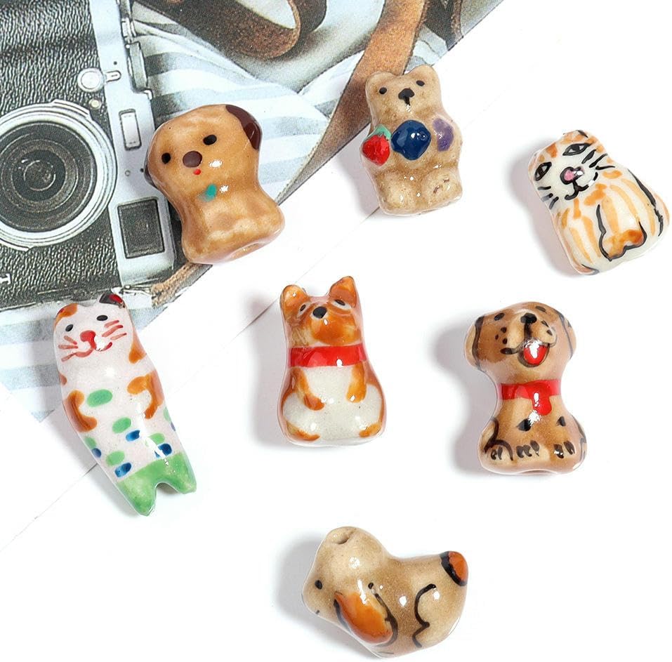 Perline sfuse in ceramica a forma di animale con fori per infilare per un facile utilizzo, dimensioni delle perline: 20x17 mm, 12x26 mm, 12x18 mm, ecc., diametro del foro: circa 2 mm, 10 pezzi/confezione Queste perle di porcellana dipinte a mano sono progettate a forma di animali, delicate e carine, con colori intensi, rendendo i tuoi gioielli fai da te più giocosi e unici Queste perline di ceramica a forma di animale possono essere abbinate a perline di cristallo, perline con lettere, perline o altre perline distanziatrici, oppure utilizzate come decorazioni pendenti per creare bellissimi braccialetti Queste perle a forma di animale sono realizzate in ceramica con una superficie liscia e lucida, non facili da rompere o sbiadire, comode da indossare e possono essere utilizzate a lungo Queste perline sfuse in ceramica smaltata sono versatili e perfette per realizzare braccialetti di perline, collane, orecchini, ciondoli, portachiavi, creazione di gioielli e vari lavori artigianali fai da te