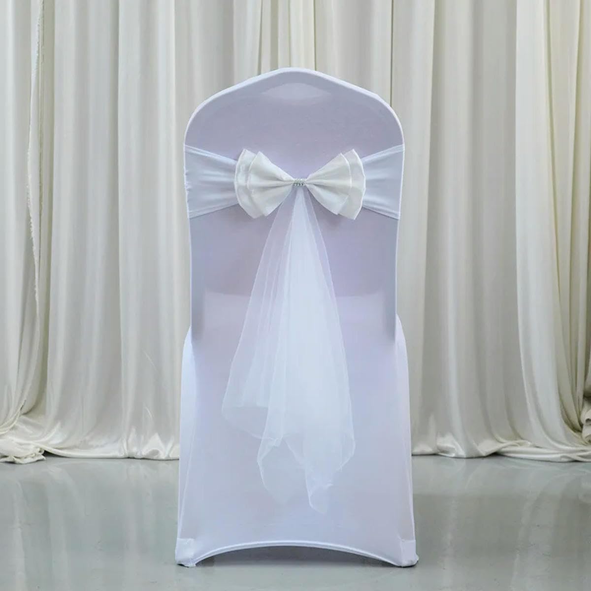 10 Pezzi di telai for Sedia da Matrimonio con Fiocco Decorazione for sedie Elasticizzati Nodi for for Banchetti Hotel for Feste Nozze Decorazioni Europee,Fasce per sedie(Beige White)