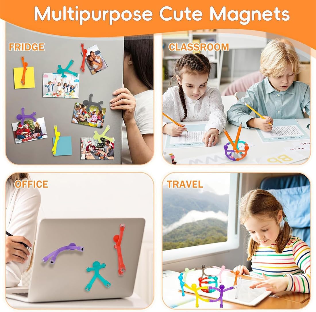 Forma creativa e adattabilità a molteplici scenari: progettato con figure umane interessanti e colorate, può essere utilizzato come decorazione magnetica per il frigorifero, come piccolo oggetto sulla scrivania dell'ufficio e può anche essere utilizzato per l'interazione in classe e l'intrattenimento in viaggio. È pratico in molteplici scene e aggiunge divertimento alla vita. Forte stabilità magnetica e struttura flessibile: 4 potenti magneti integrati, forte attrazione magnetica, giunti a forma umana che possono essere piegati in modo flessibile, forme creative facili da costruire, stimolano l'immaginazione e l'abilità pratica, un'ottima scelta per far interagire e giocare genitori-figli e amici. Materiale sicuro e durevole: realizzato in materiale morbido e durevole, non facile da danneggiare, sicuro e senza sbavature, adatto ai bambini per giocare e può anche essere utilizzato come piccolo articolo da ufficio e da casa per lungo tempo, con un rapporto costi-prestazioni elevato. Intrattenimento senza dover ricorrere a dispositivi elettronici: non c'è bisogno di usare tablet o videogiochi, l'intrattenimento è garantito dalla pura creatività, ed è adatto al tempo trascorso in famiglia, alle riunioni e all'interazione con gli amici e al ritorno agli scambi divertenti offline. Piccolo, portatile e facile da riporre: le dimensioni di una singola figura sono ridotte, non occupano spazio, sono facili da riporre e trasportare e possono essere utilizzate in qualsiasi momento durante i viaggi o le uscite per riempire il tempo frammentato
