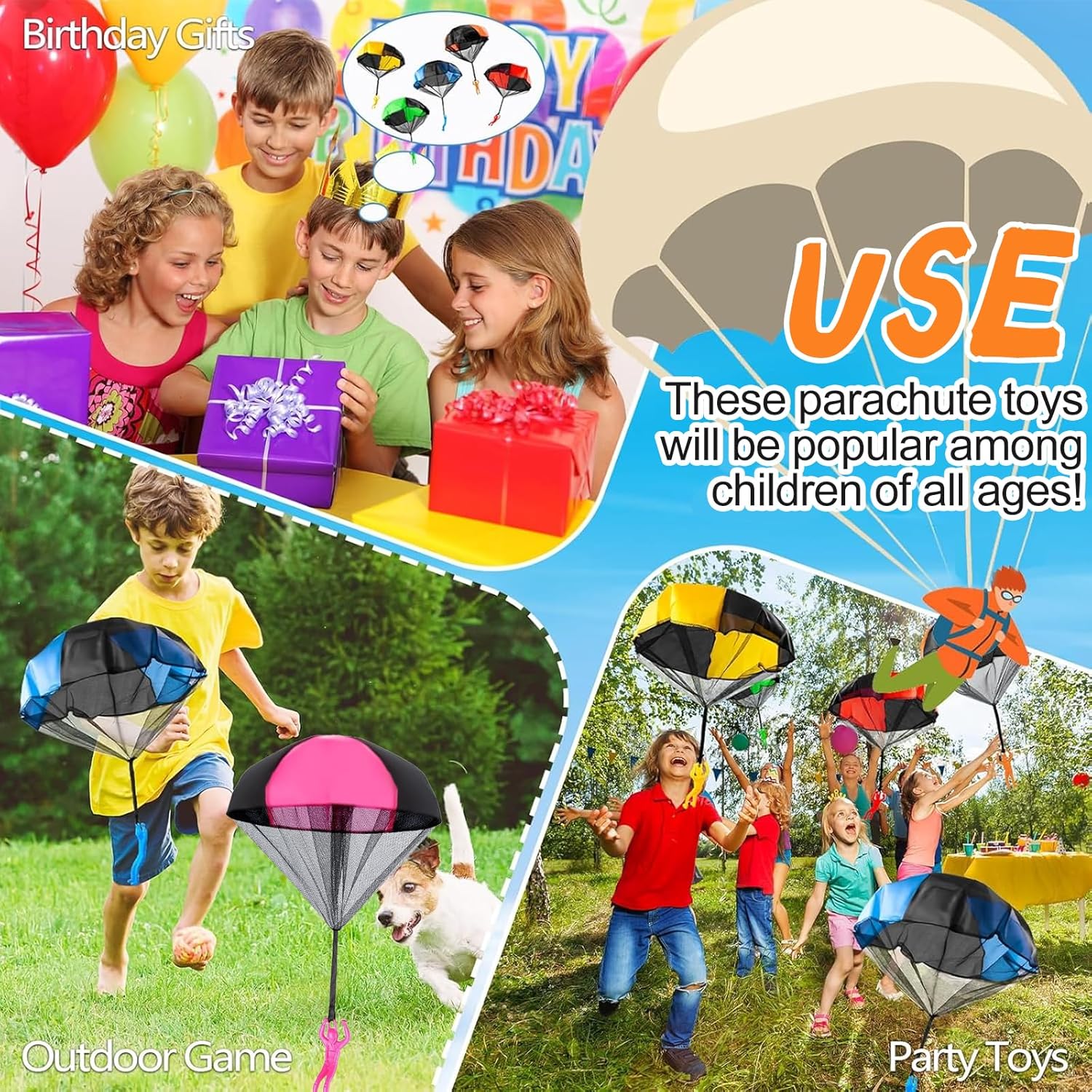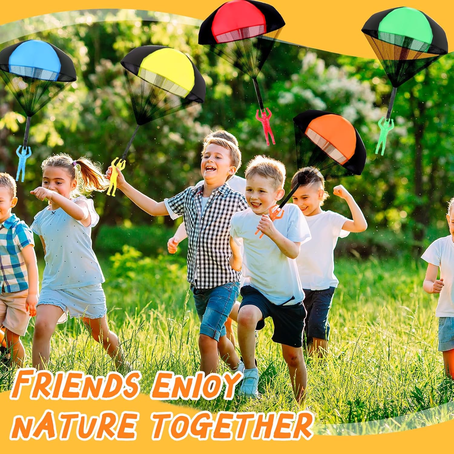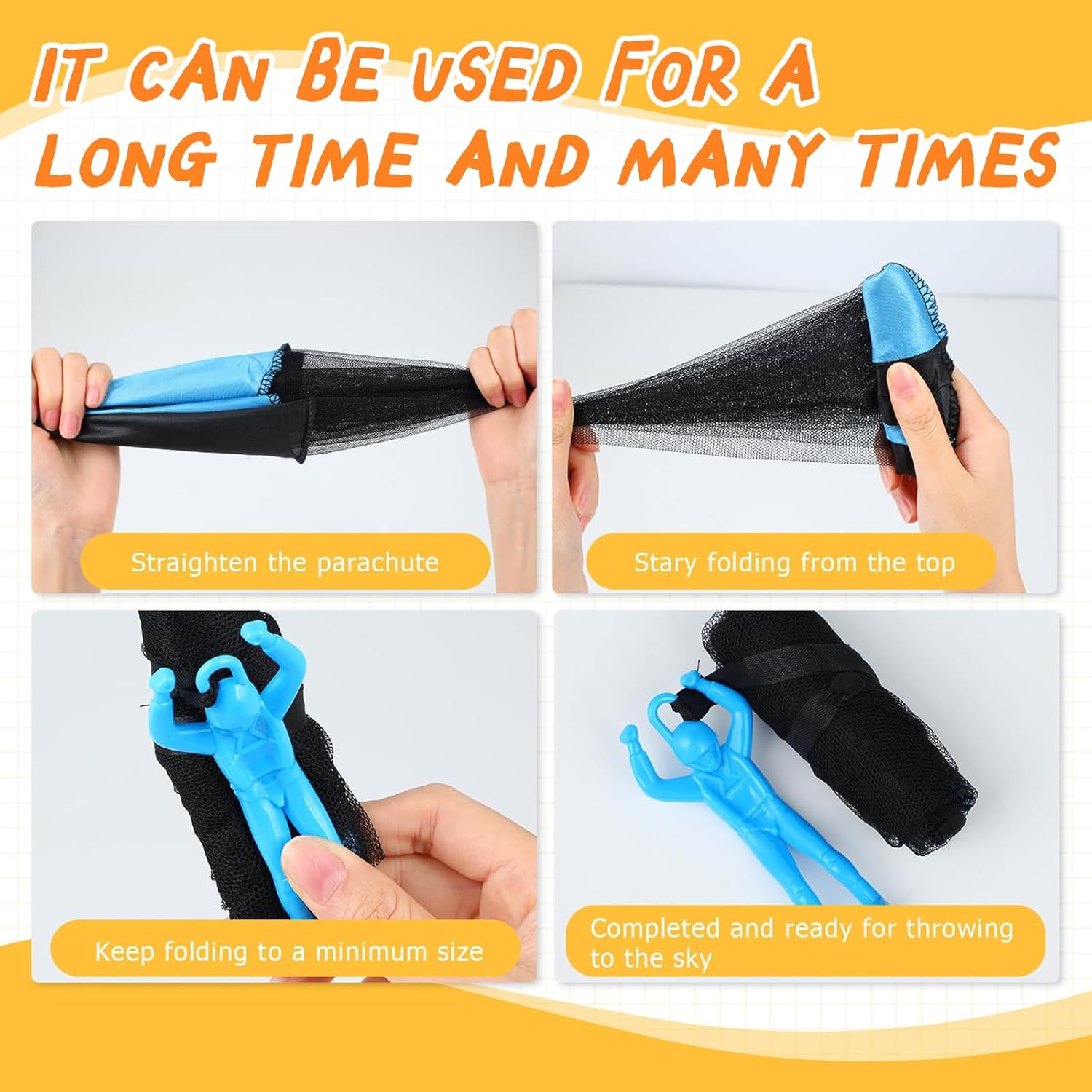 【Materiale Resistente e Sicuro】 Questo giocattoli per paracadute è realizzato in nylon e tulle di alta qualità, resistenti e durevoli, non facili da rompere e utilizzabili a lungo. Il paracadute del giocattoli per paracadute adotta un design leggero per ridurre la resistenza al vento, consentendo voli più alti e coinvolgenti e mostrando incredibili effetti di rallentamento quando viene lanciato in alto. 【Esperienza di Atterraggio Realistica】 Questo giocattoli per paracadute può simulare l'atterraggio di un vero paracadutista. Lancia giocattoli per paracadute in aria e il paracadute colorato si aprirà immediatamente e cadrà lentamente. Attraverso il gioco, i bambini percepiranno intuitivamente la gravità e la resistenza dell'aria, comprenderanno le nozioni di fisica e vivranno un'esperienza immersiva ed emozionante. 【Funzionamento Semplice e Pratico】 Il nostro giocattoli per paracadute non richiede un assemblaggio complicato e batterie, e puoi giocarci subito dopo averlo estratto. Basta lanciare giocattoli per paracadute in cielo e il bambino potrà iniziare facilmente. Durante il gioco, è possibile esercitare la coordinazione occhio-mano e le capacità motorie, in modo che i bambini possano stare lontani dagli schermi elettronici e godersi il tempo all'aria aperta. 【Ottimo Compagno All'aperto】 Il gioco all'aperto di giocattoli per paracadute incoraggia e aiuta a coltivare la creatività, le capacità cognitive e sociali dei bambini, lasciando ricordi felici e indimenticabili. I genitori possono anche promuovere l'interazione genitore-figlio attraverso giochi di presa e lancio di giocattoli per paracadute a più persone, coltivando al contempo le capacità manuali e atletiche dei bambini. 【Regalo Creativo e Ideale】Il nostro giocattoli per paracadute è adatto a vari scenari all'aperto come giardini, parchi, spiagge e può essere utilizzato anche in ampi spazi interni. Giocattoli per paracadute è leggero e facile da piegare, facile da trasportare ed è la scelta ideale per le riunioni di famiglia e le attività scolastiche, aggiungendo divertimento e sorprese infinite alla vita dei bambini.