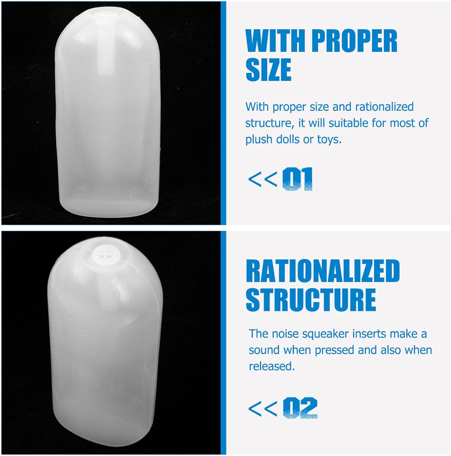Rumore per bambole: con dimensioni adeguate e struttura razionalizzata, è adatto alla maggior parte dei peluche o giocattoli, inserti per giocattoli squeaker Giocattoli squittenti in plastica: gli inserti squittenti emettono un suono quando vengono premuti e anche quando vengono rilasciati, giocattoli squittenti Inserto di ricambio per giocattoli con cigolii: realizzato in materiale plastico per supportare un uso prolungato, semplice e comodo, giocattoli sonaglio per la Inserti squittenti per giocattoli per cani di piccola taglia: varietà di diverse dimensioni per il divertimento del tuo cane! hanno un squittio forte e chiaro che non deluderà!, giocattolo Inserto per giocattolo squeaker: leggero, portatile, facile da trasportare e da usare, può offrirti grande praticità, inserto per giocattolo squeaker