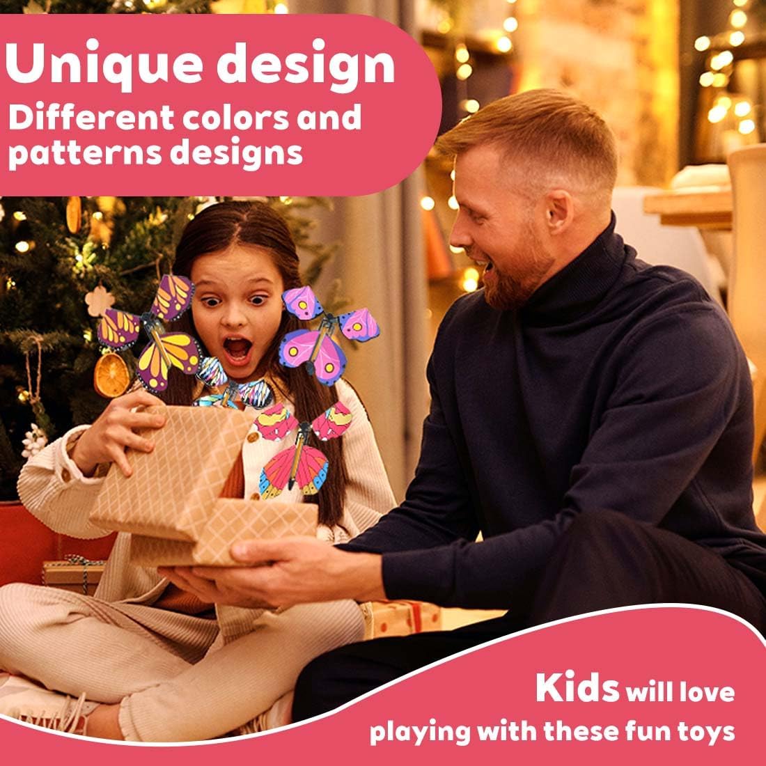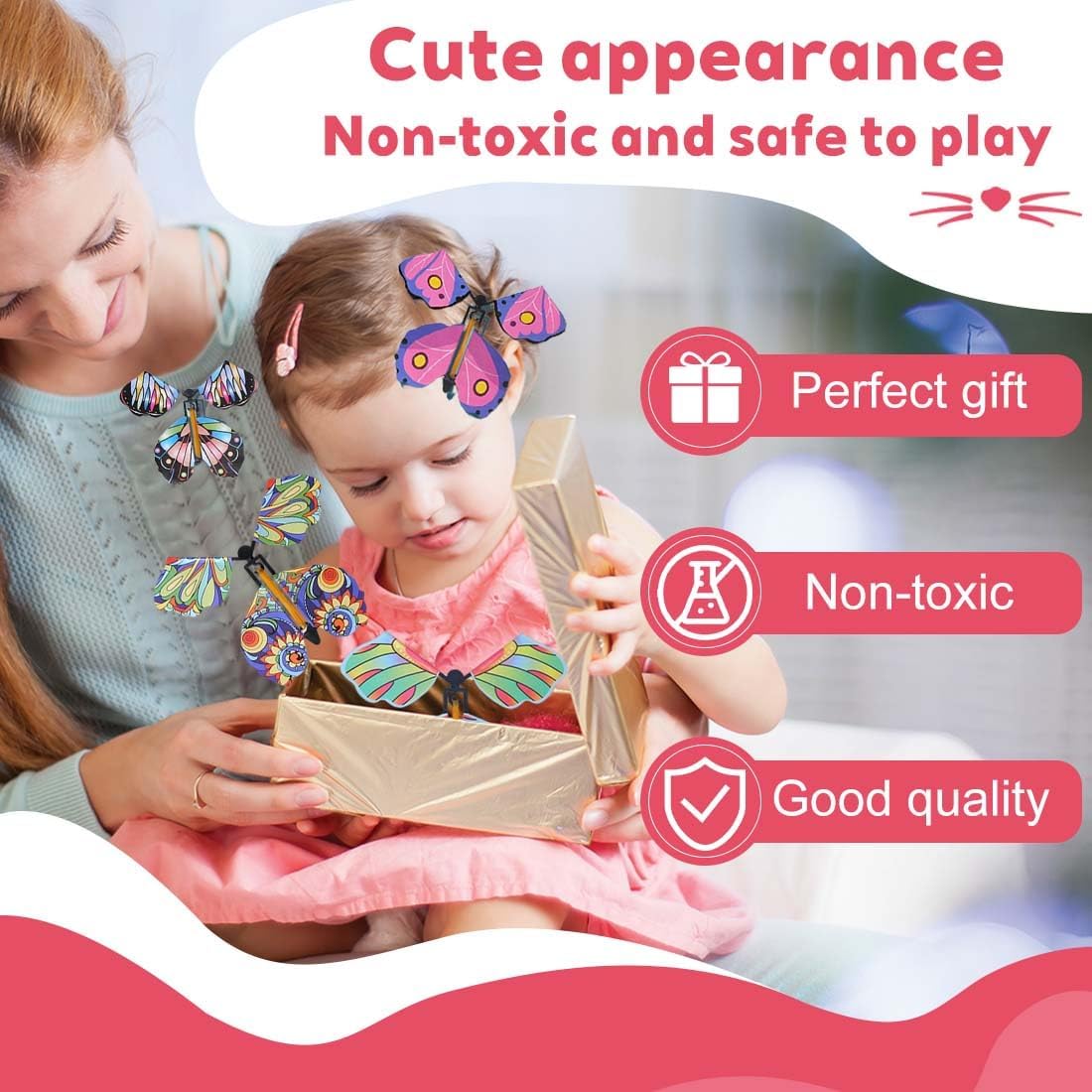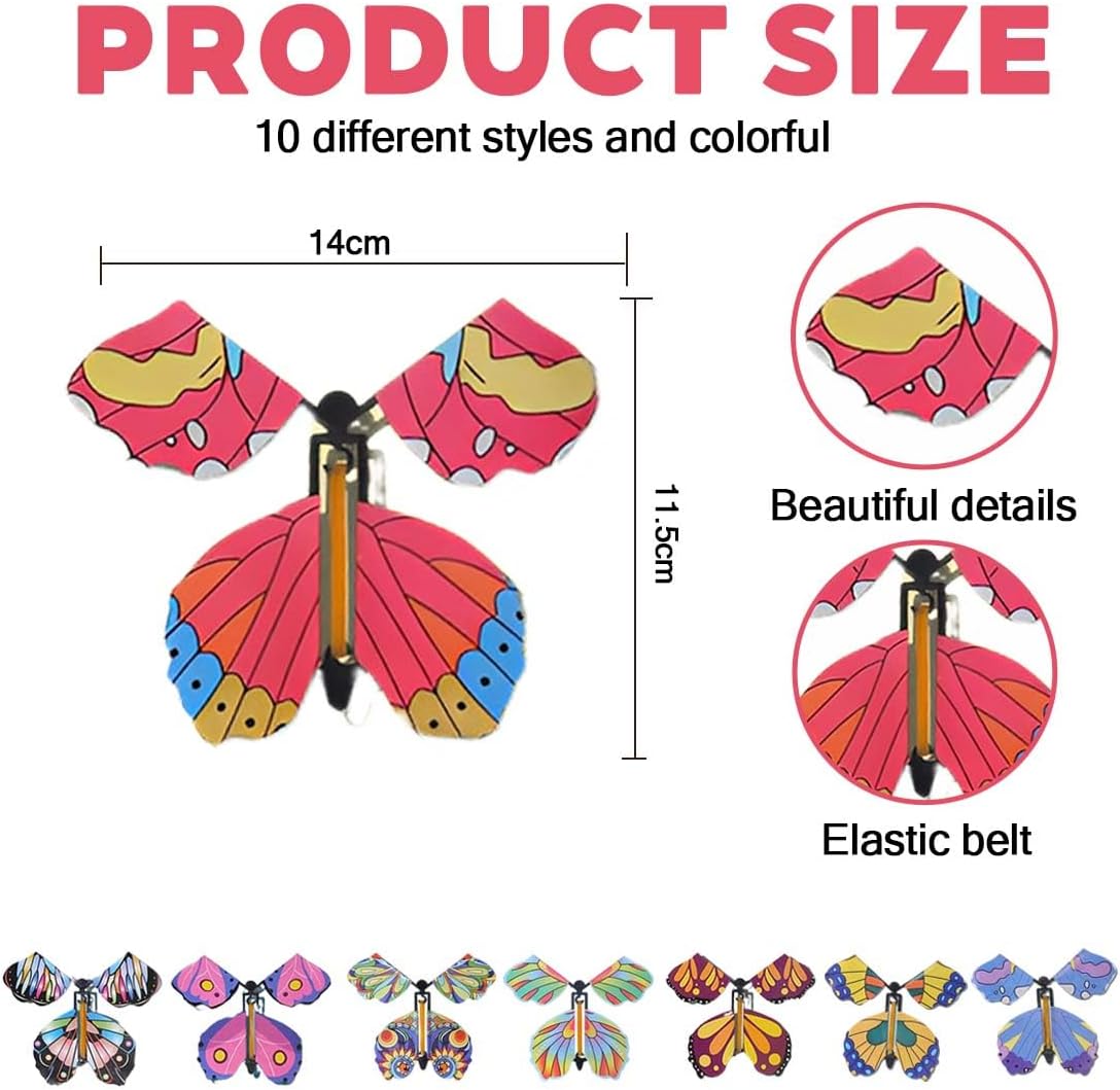 1. Confezione Super Value: Riceverai 10 adorabili e magiche farfalle volanti in diversi stili e colori vivaci, che imitano perfettamente l'eleganza delle vere farfalle. 2. Materiali di alta qualità: le ali della farfalla sono realizzate in cartone ecologico, il corpo della farfalla è in plastica di alta qualità e al centro della farfalla è presente un elastico. 3. Facile da giocare: per prima cosa tieni la coda della farfalla con la mano sinistra, poi ruota la testa della farfalla circa 30-50 volte con la mano destra e infine rilascia la farfalla. 4. Design accattivante: i colori vivaci e il design accattivante possono facilmente attirare l'attenzione dei bambini, promuovendo e migliorando le loro capacità tattili. Puoi usarlo come segnalibro. 5. Regalo a sorpresa perfetto: puoi sostituire il cinturino e inserirlo in un libro o in un biglietto. Decorazione per biglietti d'auguri, perfetta come regalo di compleanno per fidanzata, bambini e famiglia.