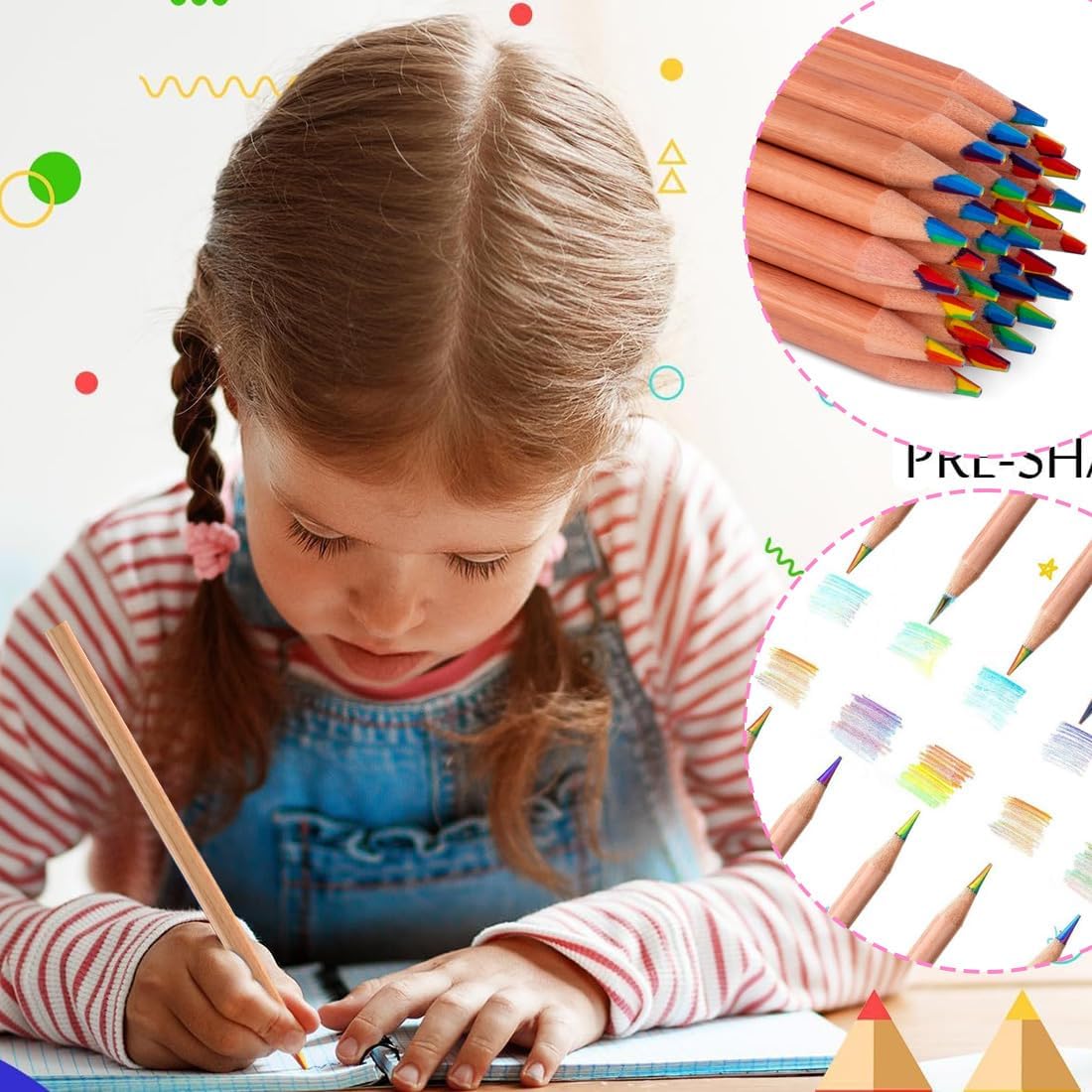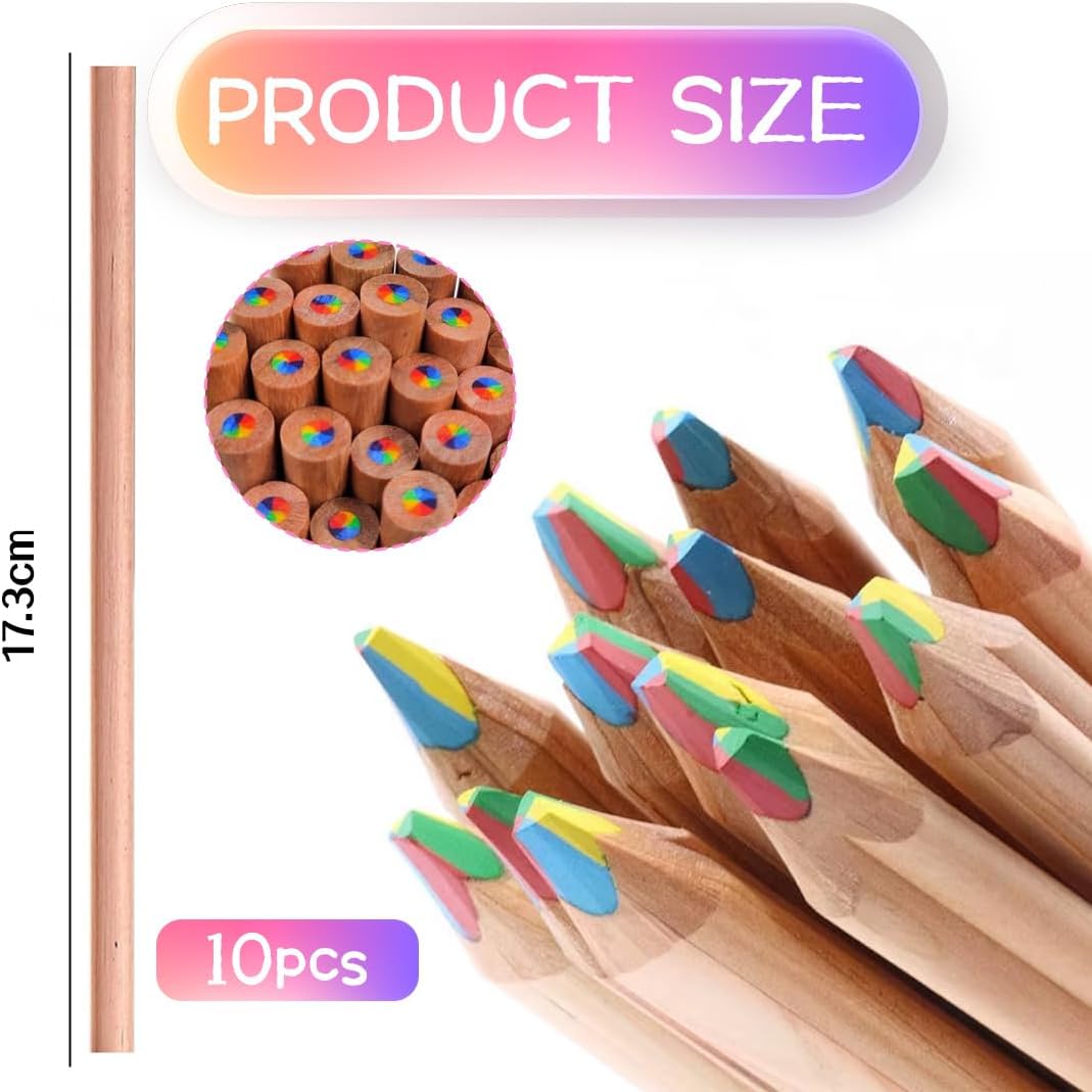 Che tu sia un artista professionista o che tu abbia appena iniziato a disegnare, colorare o ombreggiare, le nostre matite colorate in legno 7 in 1 sono il complemento perfetto per la tua cassetta degli attrezzi. Perché aspettare ancora? Aggiungi oggi stesso questo set alla tua collezione e inizia a creare opere d'arte straordinarie. [ Regalo ideale per bambini e adulti ] - Le matite arcobaleno sono il regalo migliore per i bambini. Scelta ideale per Pasqua, la festa dei bambini, l'inizio della scuola, l'inizio dell'anno scolastico, Natale, il calendario dell'Avvento, i regalini per le feste di compleanno dei bambini. I bambini adoreranno disegnare con le matite colorate. Con le matite colorate creeranno sempre opere d'arte sorprendenti. [ Effetto cromatico unico ] - Le mine delle matite hanno più di tre colori diversi mescolati tra loro e i colori casuali sembrano mantenere il tuo disegno sempre sorprendente. Puoi passare facilmente da una tonalità all'altra per creare bellissime sfumature ed effetti di ombreggiatura, rendendo il tuo disegno colorato. [ Ampiamente utilizzabile ] - Queste matite colorate possono essere utilizzate per colorare libri, lavori di design, schizzi a colori, scarabocchi, disegni creativi, annotazioni sui libri e per molti altri scopi. Possiamo disegnare tutto ciò che vogliamo. Le matite sono disponibili in diversi colori e basta ruotare la punta per ottenere un colore diverso! [ Sicurezza e durata ] - La matita arcobaleno è realizzata in legno di alta qualità e pigmenti premium e non si rompe facilmente, la mina è molto più spessa e molto resistente! L'esterno in legno di queste matite conferisce loro un aspetto elegante e professionale.