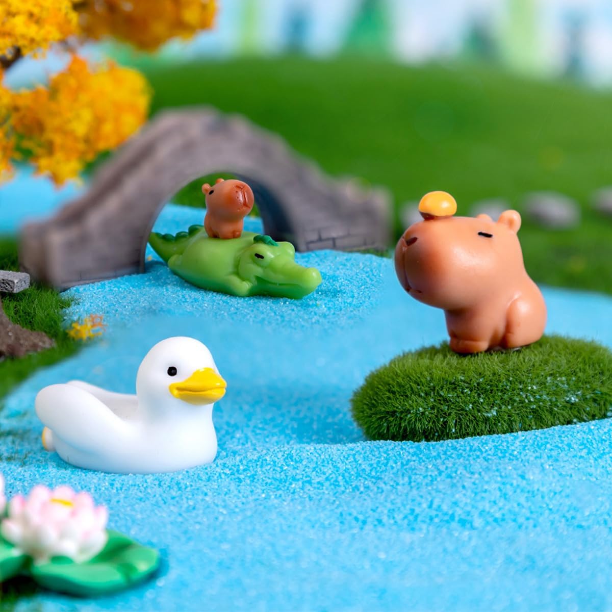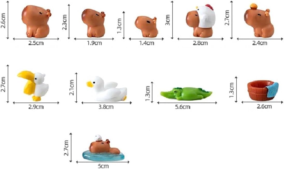 Design accattivante: grazioso design a fumetti, dipinto a mano, dettagliato, impermeabile e riutilizzabile. Costruisci un mondo fatato per te o le tue bambine quando questi articoli si adattano perfettamente a un mini giardino o terrario. Possono essere utilizzati per mini giardini fatati, decorazioni per la casa, la scrivania del computer o qualsiasi altro luogo che desideri decorare. Materiale di qualità: è realizzato con materiali in resina selezionati, è atossico e insapore e ha le proprietà anticaduta, antistrappo, durevole e indeformabile. Stimola la creatività: questi mini animali in resina sono perfetti per lavori artigianali e progetti fai da te, stimolando la tua immaginazione e creatività. Ampia applicazione e idea regalo: mini giardino decorativo fai da te o terrario, case delle bambole e scene di shadow box, decorazioni per cupcake, decorazioni per feste in ufficio e a casa. Puoi anche usarli come bomboniere o premi scolastici. Contenuto della confezione e dimensioni generose: la confezione contiene 10 piccole e graziose statuette di coccodrillo capibara. Possono essere combinate in diverse scene. Il prodotto è destinato a bambini dai 14 anni in su.