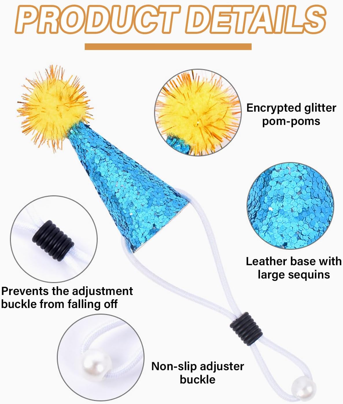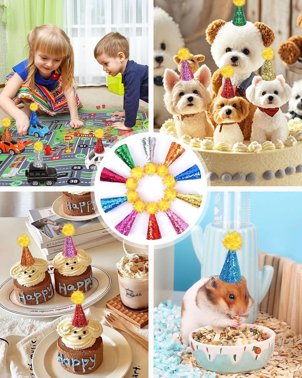 Contenuto del pacchetto: otterrai 10 pezzi di cappelli da mini festa in 10 colori vibranti, perfetti per decorare animali di peluche, dinosauri giocattoli, bambole e mestieri. Dimensioni ridotte: misurazione 6x2cm, con fasce elastiche regolabili, perfettamente dimensionate per gli ospiti di piccole feste, questi mini cappelli da festa sono ideali per decorare animali di peluche, animali giocattolo o figurine come dinosauri, gatti e cani, peluche.Facile da mettere e spento. Qualità premium: realizzato con in pelle finta di qualità, copertura con paillette brillante e pompon in alto, bella, comoda e facile da indossare. Decorazioni per feste versatili: ottimo per feste di compleanno, Natale, Halloween o Progetto artigianale fai -da -te, feste di figurina.o usato come toppers per torte, accessori per bambole o cappelli in costume per animali domestici (cane, gatto o altri piccoli animali).Sparca la creatività nelle attività fai -da -te dei bambini. Design colorato: questi piccoli cappelli hanno colori vivaci e una squisita lavorazione, aggiungendo un tocco di stravaganti decorazioni per le tue feste.È un accessori divertenti e festosi.