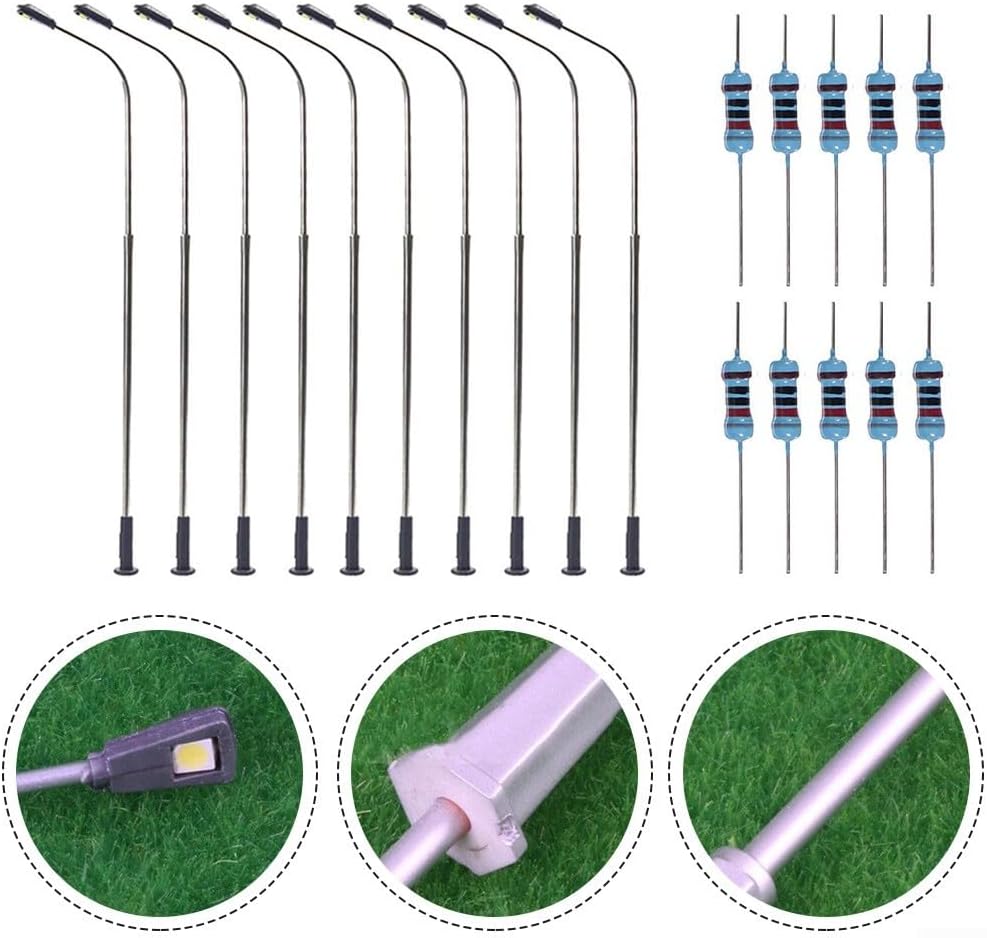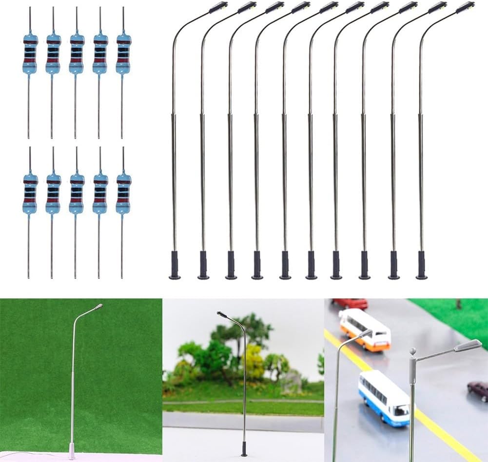 【Pali della luce in metallo】 Robusti pali della luce in metallo per il tuo plastico ferroviario o progetto di costruzione. 【Illuminazione a LED cablata】Ogni palo della luce è dotato di una luce LED cablata che fornisce un'illuminazione brillante e realistica. 【Adatto per scala O】 Progettato per essere compatibile con modellini di treni in scala O e altre strutture simili. 【Ampia tensione operativa】 Può funzionare in un ampio intervallo di tensione da 3 V a 12 V, consentendo flessibilità nella fonte di alimentazione. 【Installazione semplice】 Il pacchetto include 10 lampioni stradali modello treno e 10 resistori per una configurazione comoda e senza problemi.