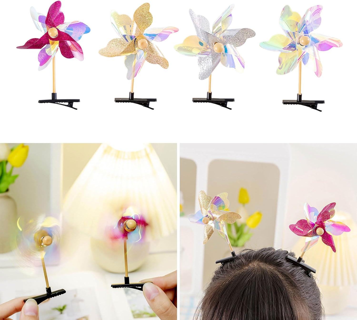 ❀ Realizzati con materiali di alta qualità, questi fermagli per capelli sono realizzati magnificamente. I colori casuali e i dettagli affascinanti li rendono un'aggiunta versatile a qualsiasi outfit. Ogni clip ha una dimensione perfetta per tutti i tipi di capelli. ❀ Adottando un simpatico mulino a vento, può attirare l'attenzione dei bambini, aumentare il loro interesse e divertimento, e la forcina ruota con il vento, aggiungendo giocosità. ❀ Che si tratti di una festa di compleanno, di una giornata informale o di un'occasione speciale, questi fermagli per capelli sono versatili e possono essere indossati per varie cose. Miglioreranno immediatamente i tuoi abiti e le tue acconciature, facendoti distinguere dalla massa. ❀ Progettati per ragazze di tutte le età, questi accessori per capelli sono un'ottima scelta per compleanni, festival e festività. Possono essere facilmente attaccati a capelli, vestiti, fasce per la testa, cappelli, borse e altro ancora. Un must per le ragazze che vogliono aggiungere un tocco di dolcezza al loro stile. ❀ Preparati a brillare con questi vivaci e divertenti fermagli per capelli Minkissy! La loro caratteristica carina e l'aspetto colorato porteranno gioia ed eccitazione nella tua vita quotidiana. Mostra il tuo stile unico e lascia trasparire la tua personalità con questi adorabili accessori per capelli.