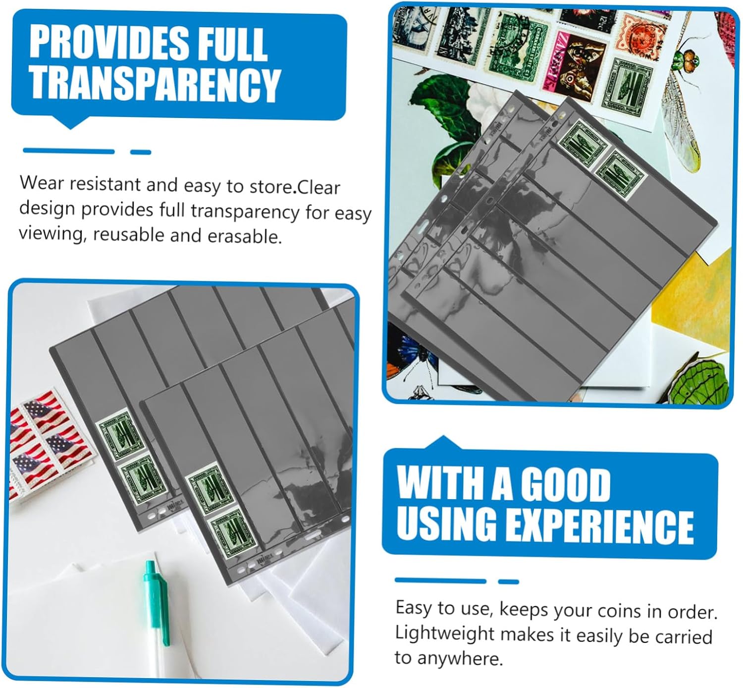 Porta francobolli: l'aspetto trasparente del design consente di vedere il contenuto all'interno della pagina, pagine di protezione per francobolli Libro di francobolli: la pagina del nostro album di francobolli è liscia e ti fa sentire a tuo agio quando la tocchi, protegge la borsa Album per francobolli: è realizzato in materiale , questo articolo può essere utilizzato a lungo termine, come tasca per collezionisti di francobolli Album porta francobolli: facili da usare, mantengono le tue monete in ordine, leggeri e facili da trasportare ovunque, pagina dell'album per francobolli Pagine di francobolli per raccoglitore di album di francobolli: può essere un regalo pratico per i tuoi amici che amano francobolli e saranno molto felici, album di raccolta di francobolli