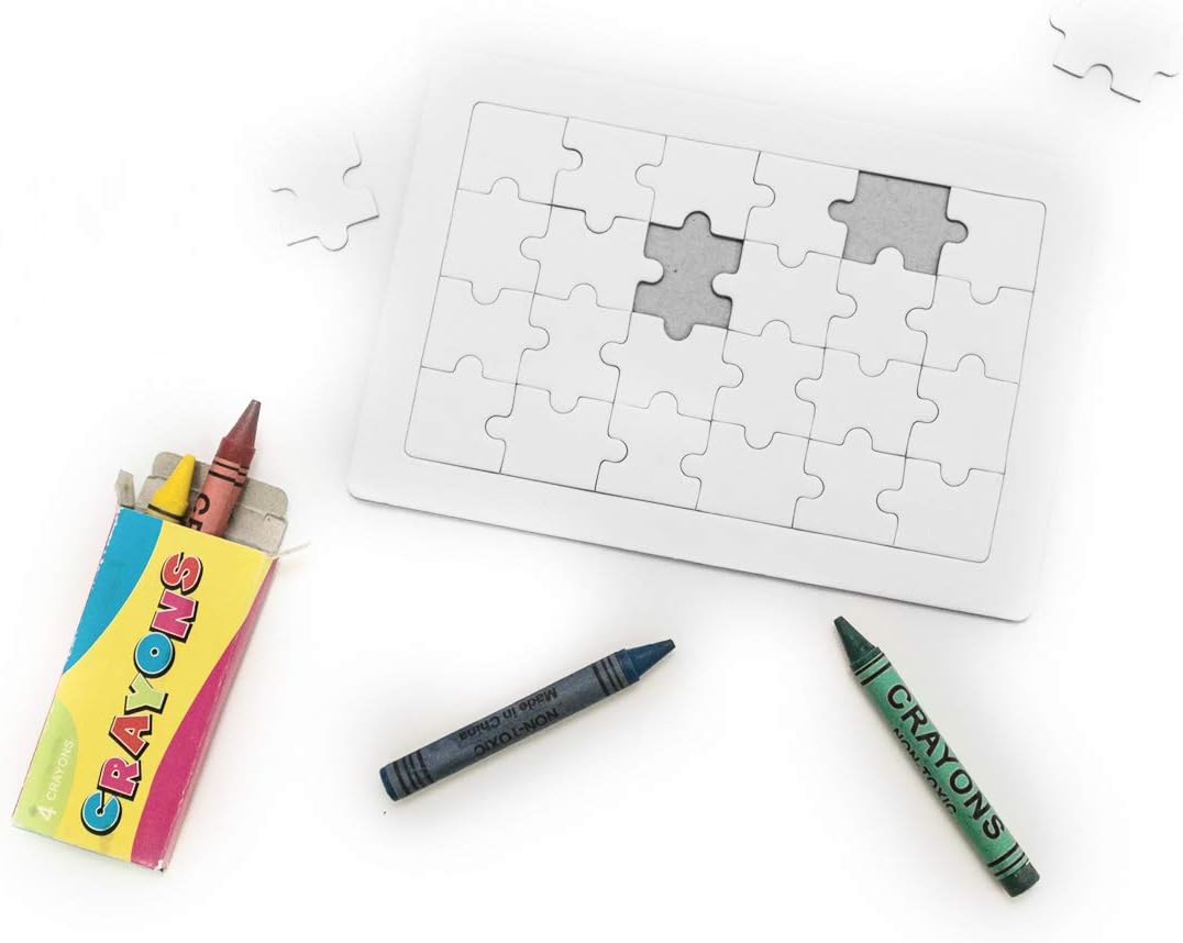 Creativo: un meraviglioso regalo per gli ospiti della tua festa per bambini, con le matite colorate di cera puoi dipingere i tuoi puzzle Unico: ogni bambino può dipingere il proprio puzzle secondo i propri desideri. Le matite di cera incoraggiano la creatività dei bambini Ecologico: i puzzle da dipingere sono realizzati in cartone, certificato CE e quindi sicuri e sostenibili Valore del prezzo: per il prezzo basso riceverai 10 pezzi di puzzle per bambini come regali per il compleanno dei bambini, la festa di carnevale o la festa Helloween. Ogni piccolo ospite riceve un regalo unico e ha un ricordo duraturo della festa. Ideale anche per hotel, ristoranti, kitas, scuole, eventi aziendali, complessi, club, barche, pullman, treno.... ovunque tu voglia fare un piacere ai tuoi piccoli clienti Dettagli: ciascuno dei puzzle da 24 pezzi ha le dimensioni di 15 cm x 10 cm, le 4 matite di cera nei colori giallo, verde, blu e rosso sono naturalmente.