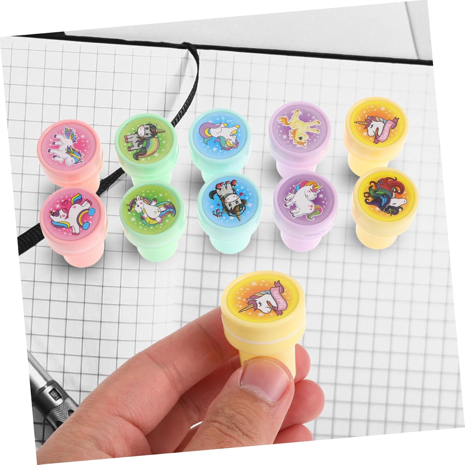 Timbri Unicorno: questi timbri sono perfetti per aggiungere un tocco di divertimento e creatività alle attività quotidiane del diario. Timbri in plastica Set di timbri per unicorno - Una buona scelta se vuoi creare le tue opere d'arte fai-da-te con questi delicati sigilli per francobolli, come bomboniere per i compleanni dei bambini Francobolli per bambini - vari modelli di unicorni che conferiscono loro un aspetto unico, francobolli per bambini Francobolli per bambini - i timbri con unicorno aggiungono più divertimento ai lavoretti, per album di ritagli, lettere di album, cartoline., adatti per l'uso fai-da-te, francobolli per ragazze Francobolli per bambini: i timbri sono progettati per essere piccoli, rendendoli facili da maneggiare per le mani dei più piccoli utilizzare. simpatico timbro in plastica