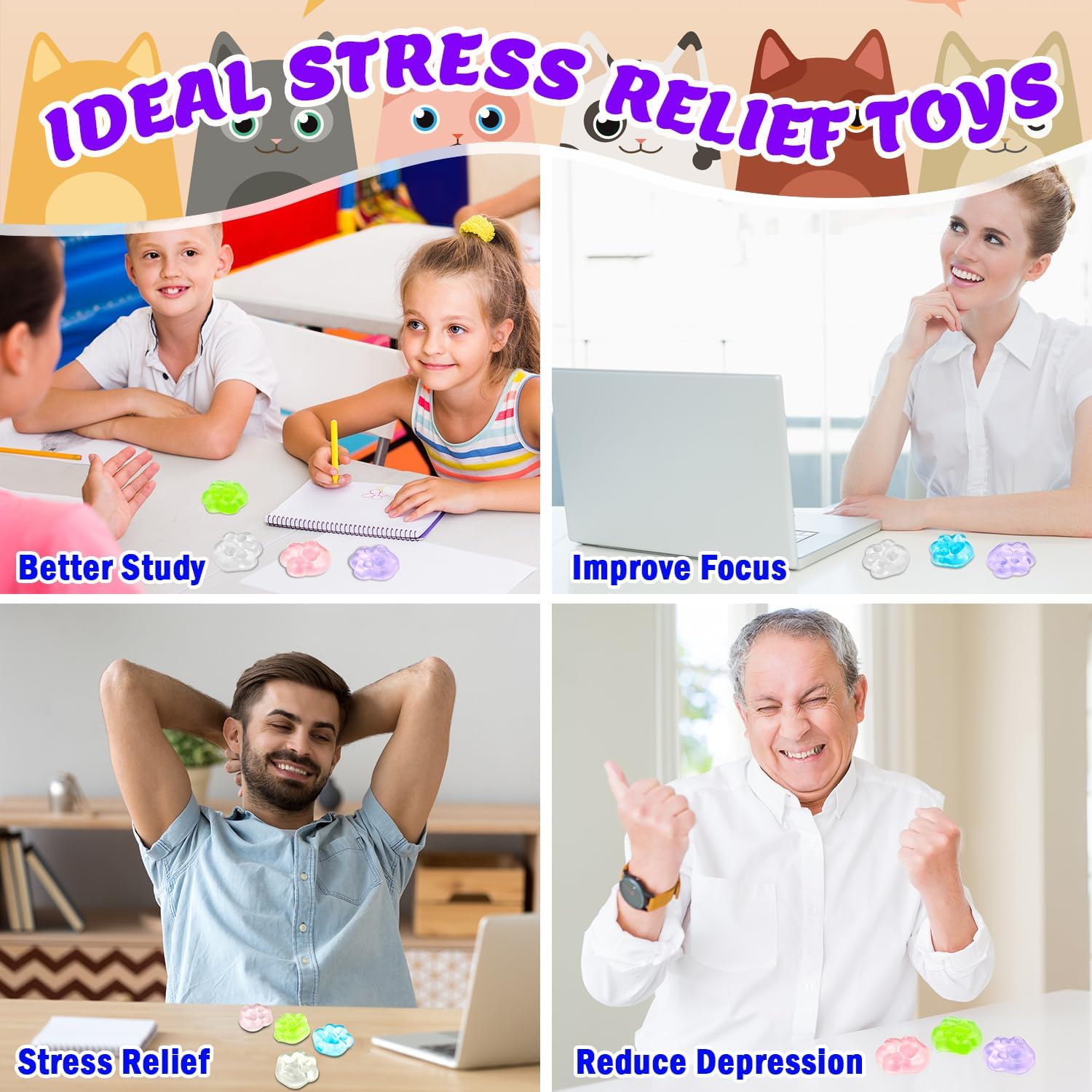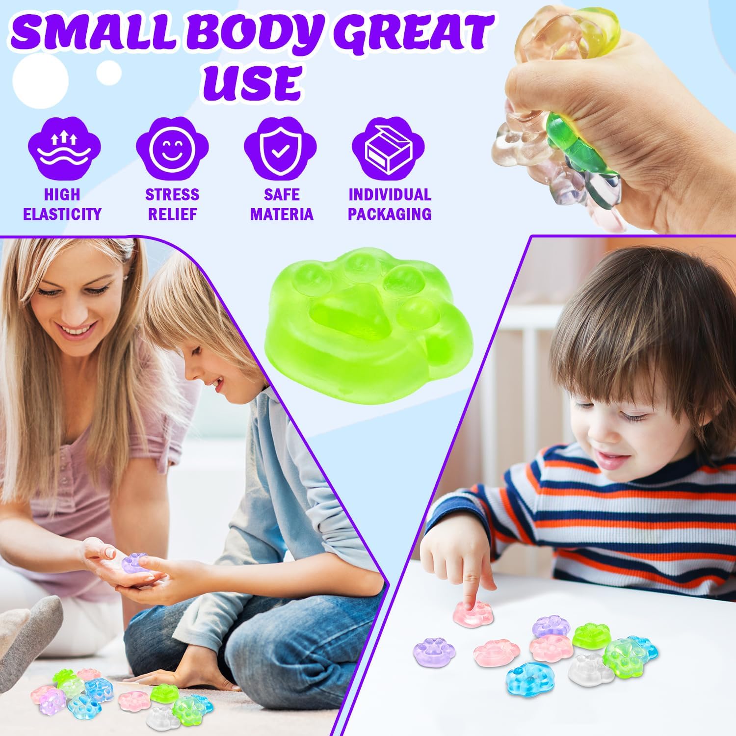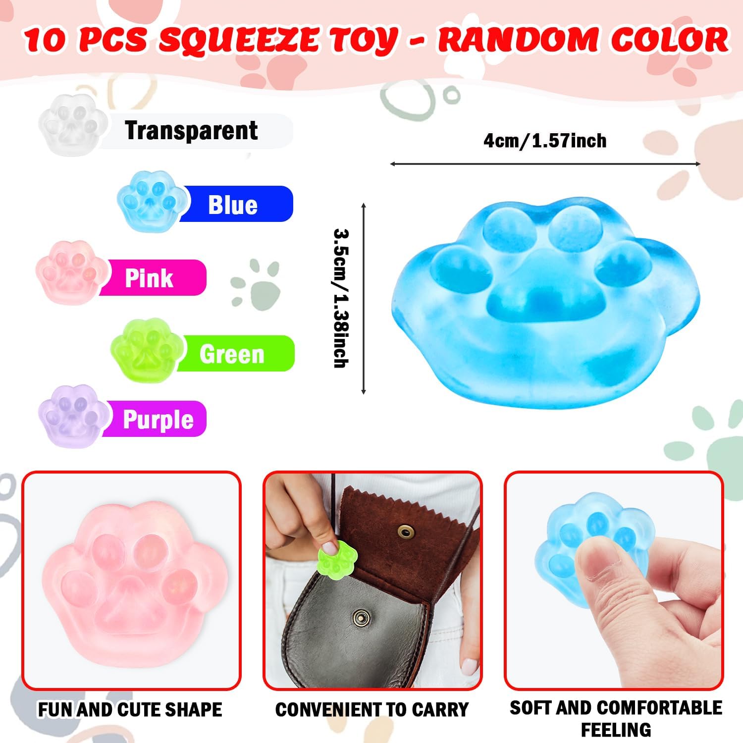 【Confezione mini giocattoli squishy da 10 pezzi】 - Questo set contiene 10 giocattoli squishy in cinque colori diversi (trasparente*2, blu*2, rosa*2, verde*2, viola*2), ogni giocattolo squishy è confezionato singolarmente. La forma della zampa del gatto è carina e attira l'attenzione. Tutti lo adoreranno e la loro giornata sarà piena di gioia. 【Bel regalo】 (Regalo adorabile) - Questi mini giocattoli da spremere sono creativi per le decorazioni delle feste dei bambini e adatti per regali di Natale, caccia alle uova di Pasqua, regali di Halloween, regali di compleanno, regali di Capodanno e altro ancora. Se stai cercando un bel regalo, questi mini giocattoli non mancheranno mai di soddisfare le tue aspettative! 【Materiale sicuro e facile da pulire】 - Questi giocattoli morbidi sono realizzati in silicone ecologico, non tossico ed altamente elastico, possono essere tirati a piacimento e torneranno immediatamente alla loro forma originale non appena li lasci andare. Inoltre è riutilizzabile, basta lavarlo con acqua e sapone quando si sporca. 【Sollievo dallo stress e riduzione dell'ansia】 - Comodi e morbidi al tatto, spremere questi mini squishy è utile per aiutare a rilasciare lo stress e l'ansia accumulati, promuovendo il rilassamento e mantenendo la calma. 【Portatile】 - Dimensioni compatte e peso leggero, puoi metterlo in tasca o in borsa, portarlo in ufficio, a scuola, al parco, in biblioteca, alla stazione della metropolitana o ovunque tu voglia, permettendoti di goderti lo stress ovunque tu vada.