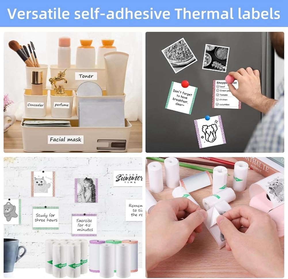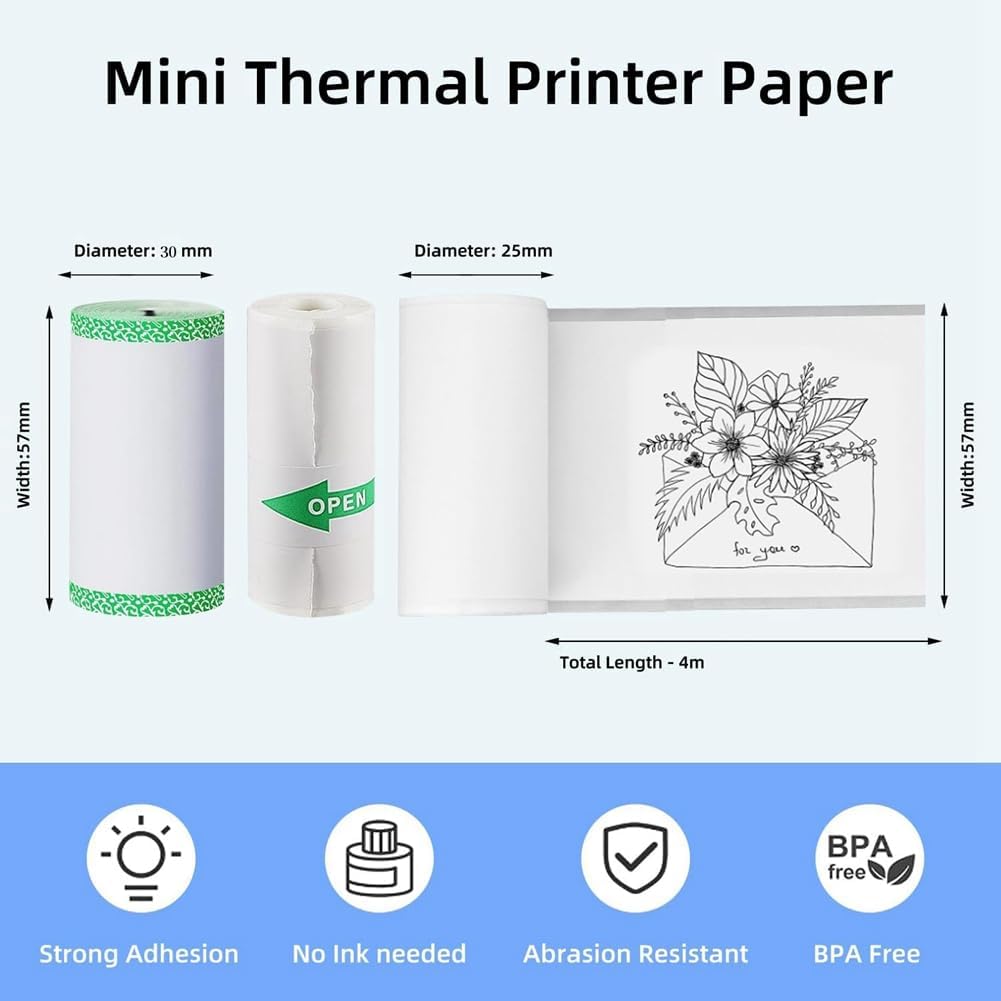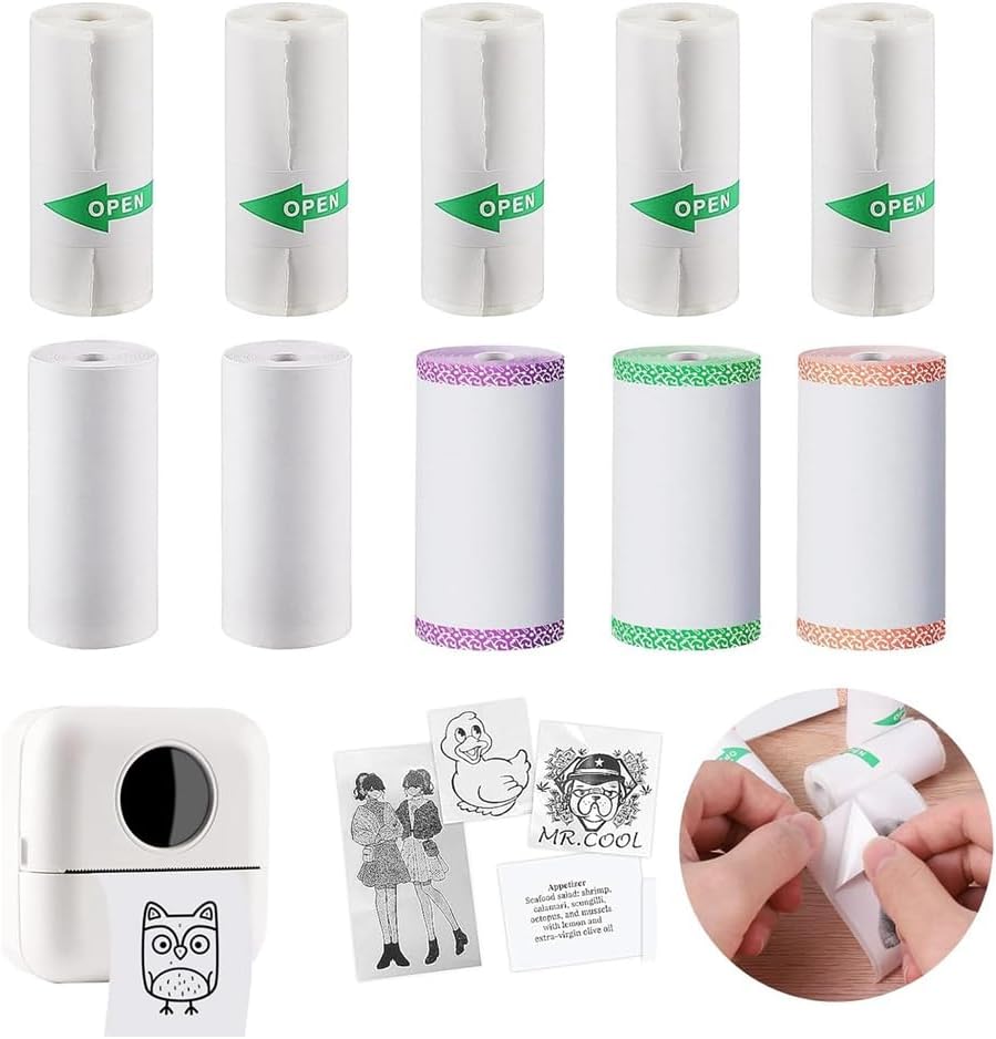 Materiale di aggiornamento: sicuro per i bambini. Carta calda di alta qualità per pulizia e stampa senza inchiostro. Il rivestimento sensibile al calore è un materiale liscio, trasparente, di medio spessore, impermeabile e antigraffio per accessori per mini stampanti fotografiche. Compatibile con tutti i sistemi di stampa termica. Non preoccupatevi che l'adesivo cada. Formato carta mini stampante: diametro carta con bordi di colore 30 mm, 10 rotoli di carta. Questa eccezionale funzionalità garantisce un'esperienza di stampa fluida ed efficace, lasciando libero sfogo alla tua creatività senza limiti. [Incluso] Riceverai 10 rotoli di carta a caldo per la ristampa di fotocamere istantanee, tra cui 3 rotoli di carta per registrazione equilatera, 2 rotoli di carta bianca di alta qualità e 5 rotoli di carta da stampa autoadesiva. [Stampa chiara] Utilizzando foto e altri materiali di stampa sugli adesivi, puoi ottenere un'eccellente qualità di stampa e sperimentare. Poiché è facile da tagliare, è eccellente per i bambini che possono facilmente modellare etichette nei loro disegni preferiti e aggiungere i propri colori vivaci. [Creazione fai da te] La carta calda per fotocamera istantanea ha tre colori, una quantità sufficiente ed è adatta per carta da disegno creativa per bambini. È possibile tagliarli in qualsiasi forma e modello desiderato, non solo godendo del divertimento di indossare le immagini, ma anche dare libero sfogo alla loro immaginazione e creatività, stampare foto in bianco e nero per dipingere o riempire i colori.