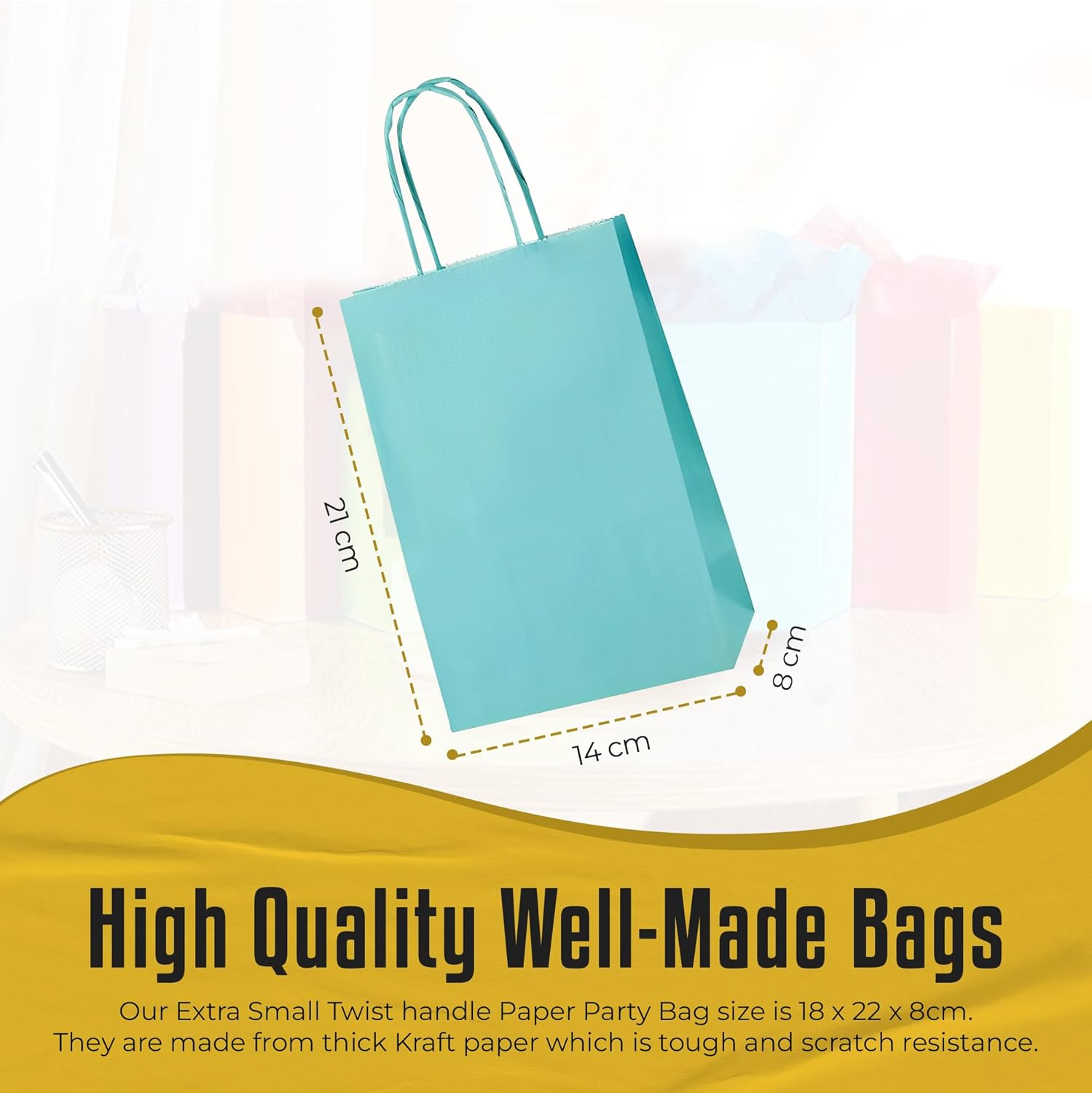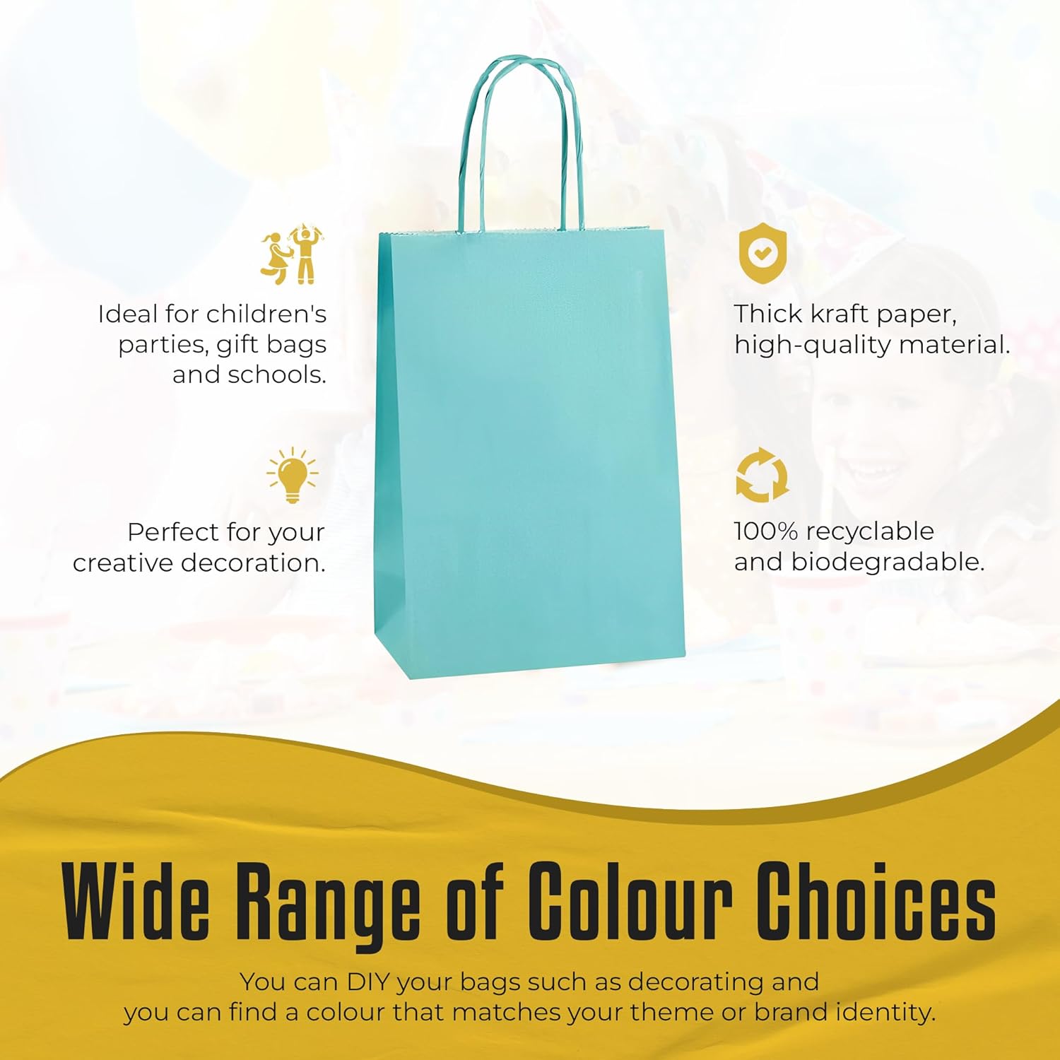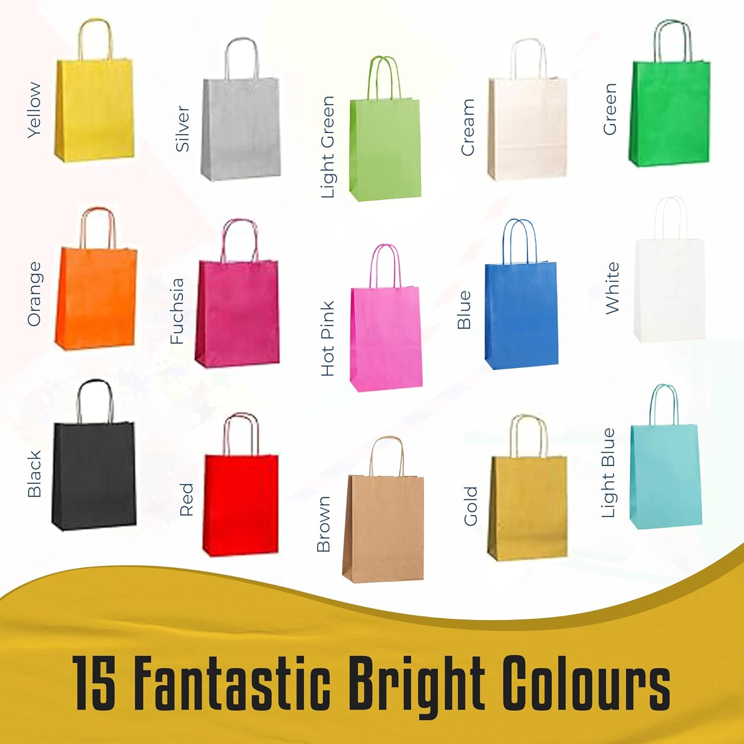 Sacchetti di carta di fantastica qualità con manici - Dimensioni borsa: 140x210x80mm Quindici colori vivaci tra cui scegliere: giallo, blu, verde, rosso, blu guscio d'uovo, arancione, bianco, marrone, fucsia, crema/avorio, nero, rosa, argento, oro e verde chiaro. Scegli tra 10 e 30 sacchetti per la tua celebrazione Ideale per feste per bambini, sacchetti regalo e dolciumi Realizzato in resistente cartoncino artistico bianco da 90 g/m²
