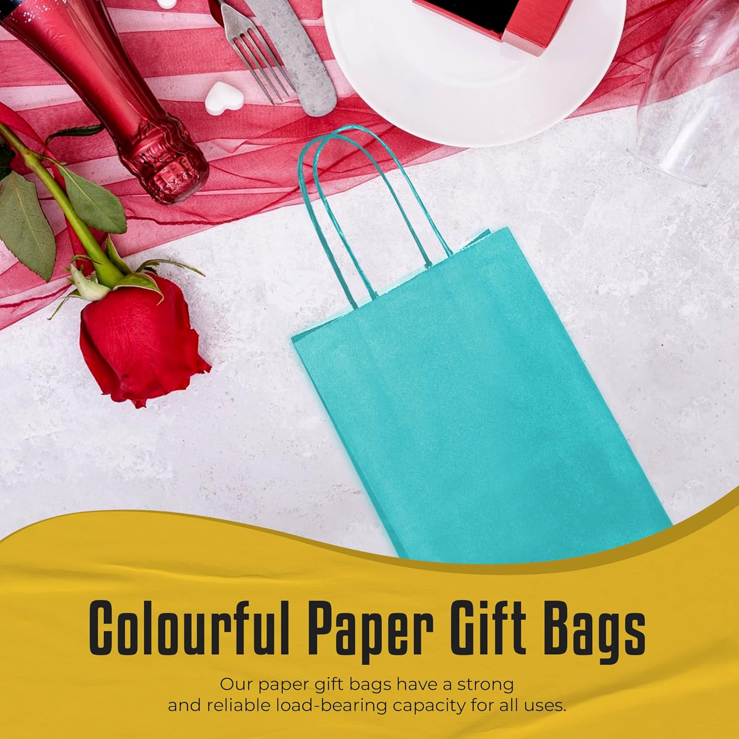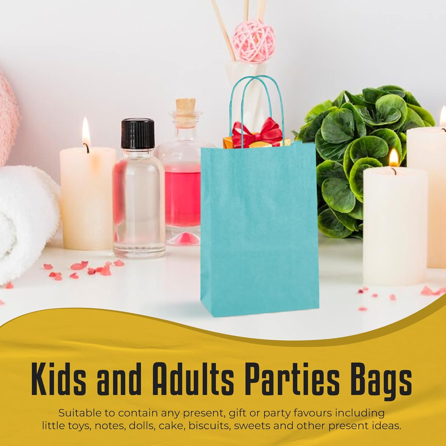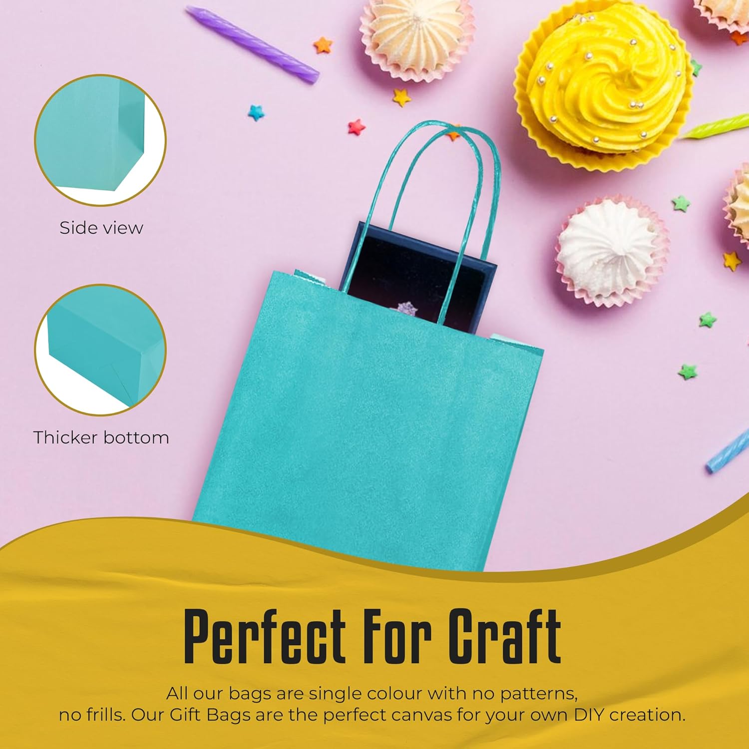 Sacchetti di carta di fantastica qualità con manici - Dimensioni borsa: 140x210x80mm Quindici colori vivaci tra cui scegliere: giallo, blu, verde, rosso, blu guscio d'uovo, arancione, bianco, marrone, fucsia, crema/avorio, nero, rosa, argento, oro e verde chiaro. Scegli tra 10 e 30 sacchetti per la tua celebrazione Ideale per feste per bambini, sacchetti regalo e dolciumi Realizzato in resistente cartoncino artistico bianco da 90 g/m²