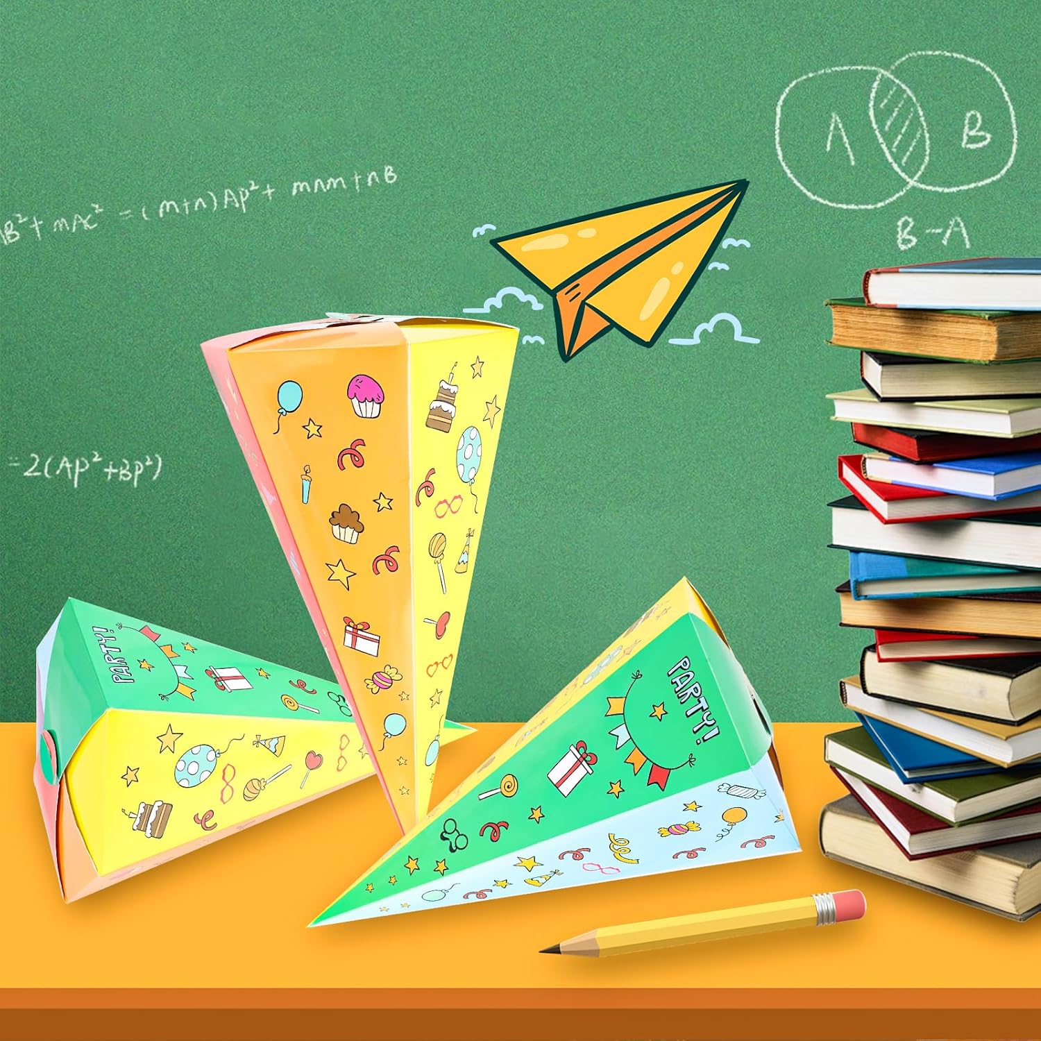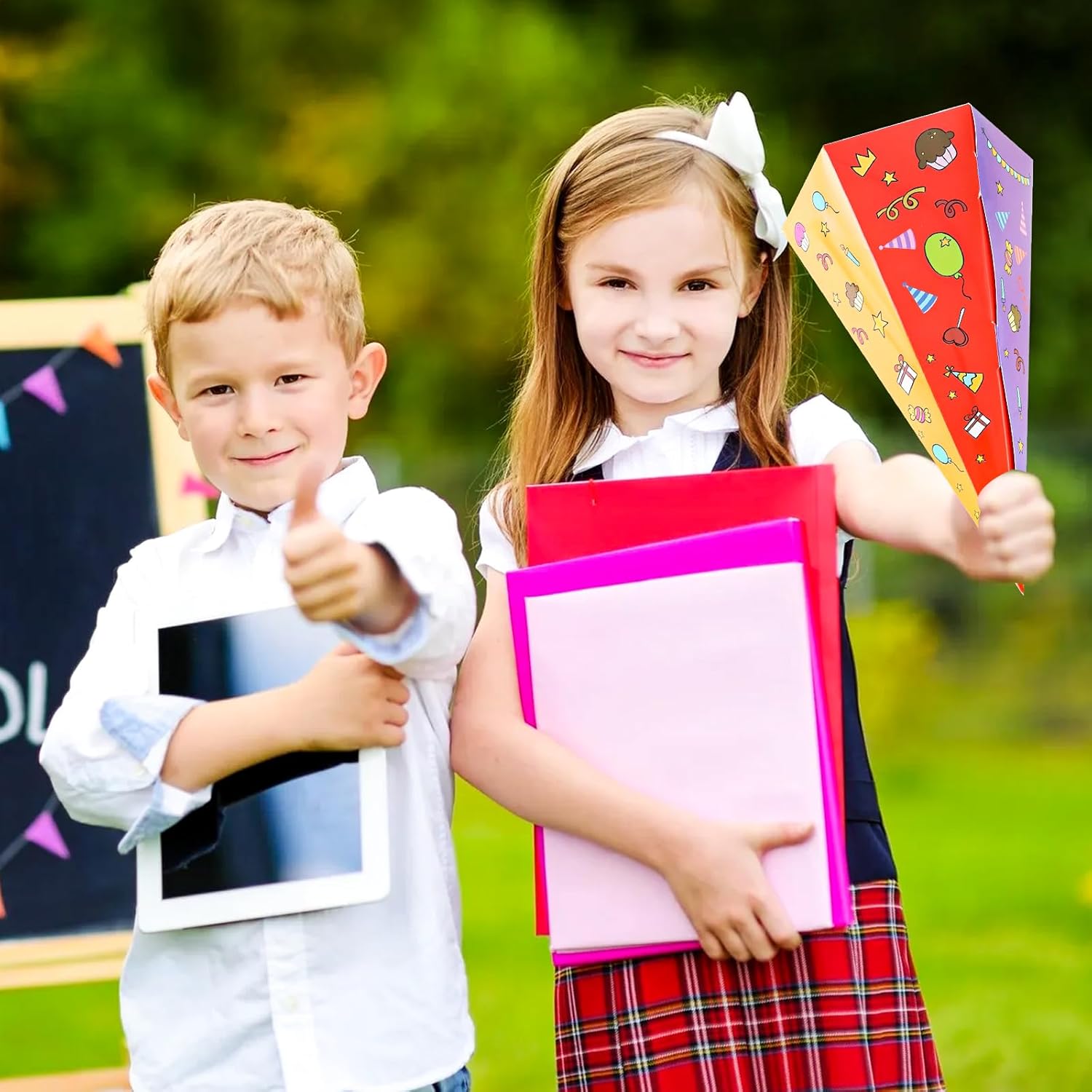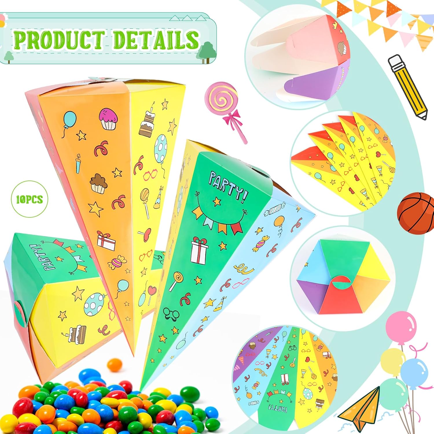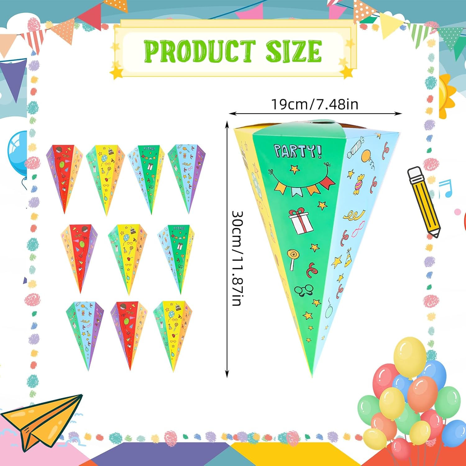 【Cono scolastico per fratelli】 La confezione di coni scolastici piccoli contiene 10 coni di zucchero colorati. I colori vivaci e i tanti bellissimi motivi li rendono un regalo perfetto per i bambini che festeggiano il rientro a scuola. 【Lavorazione di alta qualità】 I piccoli coni scolastici sono realizzati in cartone robusto e sono quindi durevoli e robusti. I collegamenti pieghevoli hanno lo scopo di rendere la punta del cono della scuola più forte e più stabile. 【Cono di zucchero pieghevole】 Il nostro cono scolastico in confezione regalo è molto facile da montare e può essere facilmente piegato dai bambini in modo che tu e tuo figlio possiate realizzare bellissimi coni scolastici insieme. 【Bellissimo design】 Il design colorato e allegro del cono della scuola per fratelli garantisce buon umore e gioia a chi inizia la scuola. La composizione cromatica colorata non lascia nulla a desiderare. 【Idea regalo】La borsa per la scuola vuota è molto adatta come confezione regalo per piccoli regali per la scuola, piccoli regali per i bambini in età scolare o regali di addio per la scuola materna e Nikko. Può essere utilizzato anche come decorazioni per feste, ragazzi e ragazze.