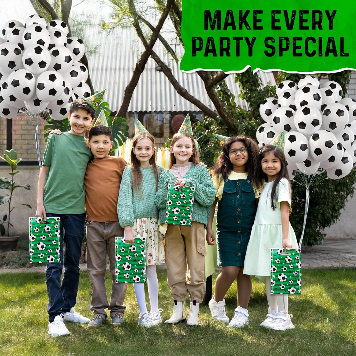 Riempitivi per sacchetti per feste di calcio all-in-one: include 10 sacchetti a tema pieni di divertenti giocattoli da calcio come giochi di film, portachiavi e carte - perfetti per emozionanti omaggi per feste di calcio o sorprese di compleanno Sacchetti per feste pre-riempiti per bambini: risparmia tempo e fatica con i sacchetti per feste pronti all'uso che vengono forniti completamente confezionati; ideali per qualsiasi festa di calcio, evento scolastico o festa per bambini Riempitivi per sacchetti per feste per ragazzi e ragazze: un giocoso mix di regali di calcio per ragazzi e ragazze, tra cui palloncini, fischietti, braccialetti e carte da collezione in stile Panini Decorazioni per feste di calcio e divertimento: i palloncini da calcio inclusi e gli oggetti colorati fungono anche da divertenti decorazioni per feste di calcio per aiutare a dare vita al tuo tema Perfetti per riempire sacchetti per le feste per bambini: questi sacchetti sono ideali per bomboniere, riempitivi per sacchetti di compleanno o premi in classe per gli amanti del calcio dai 4 anni in su