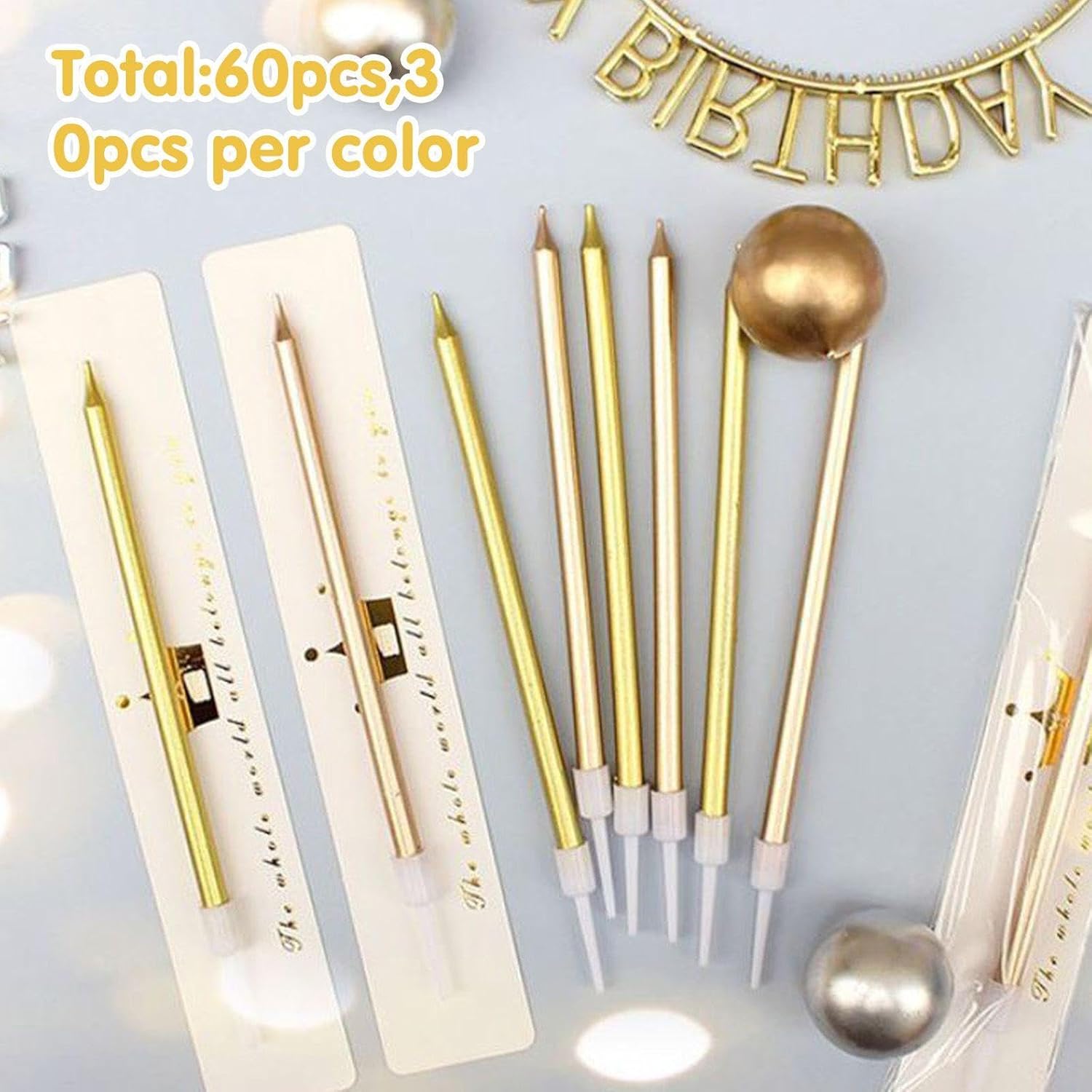 【Contenuto Del Prodotto】 Ottieni 10 Scatole Con Candele Colorate, Ogni Scatola Con 6 Candele. Ogni Candela Ha Una Dimensione Di 11, 2 Cm E I Colori Sono Oro Magnati E Champagne Adatti Per Il Compleanno E Le Varie Feste. 【Materiale Del Prodotto】 Questo Prodotto È Costituito Da Materiali Di Paraffina E Abs. Le Sue Proprietà Sono Sicure E Non Tossiche, Tempo Di Combustione E Non Facili Da Sciogliere E Deformare. Il Materiale Di Paraffina Rende Impossibile Creare Odore Quando La Candela Viene Bruciata, Mentre Il Materiale Abs Offre Una Buona Resistenza Al Calore E Il Colore Della Luce. 【Design Creativo】 Questo Prodotto È Unico E La Combinazione Di Ricco Oro E Champagne Lo Fa Sembrare Di Classe Ed Elee, Il Che È Molto Adatto Per Feste Di Compleanno E Varie Celebrazioni. I Colori E I Design Unici Possono Dare Alla Tua Torta Un Bel Effetto Decorativo E Il Tuo Evento Diventa Più Speciale E Indimenticabile. 【Ampliato】 Questo Prodotto Non È Solo Adatto Alla Decorazione Del Luogo Di Compleanno, Ma Anche Con Varie Attività Di Feste Come Matrimoni, Celebrazioni Per L'Anniversario, Celebrazioni Per Le Vacanze, Ecc., Che Si Tratti Di Un Incontro Di Famiglia O Di Un Grande Evento, Queste Candele Creative Possono Dare Al Tuo Evento Un'Atmosfera Calda E Romantica. 【Facile Da Usare】 Questo Prodotto È Facile Da Usare. Basta Inserire La Candela Nella Torta O Decorare Il Tavolo. Dopo Che La Candela È Stata Accesa, La Fiamma È Stabile E Brucia Per Lungo Tempo. Dopo L'Uso, È Facile Da Pulire E Non Lascia Tracce Che Sono Difficili Da Rimuovere.