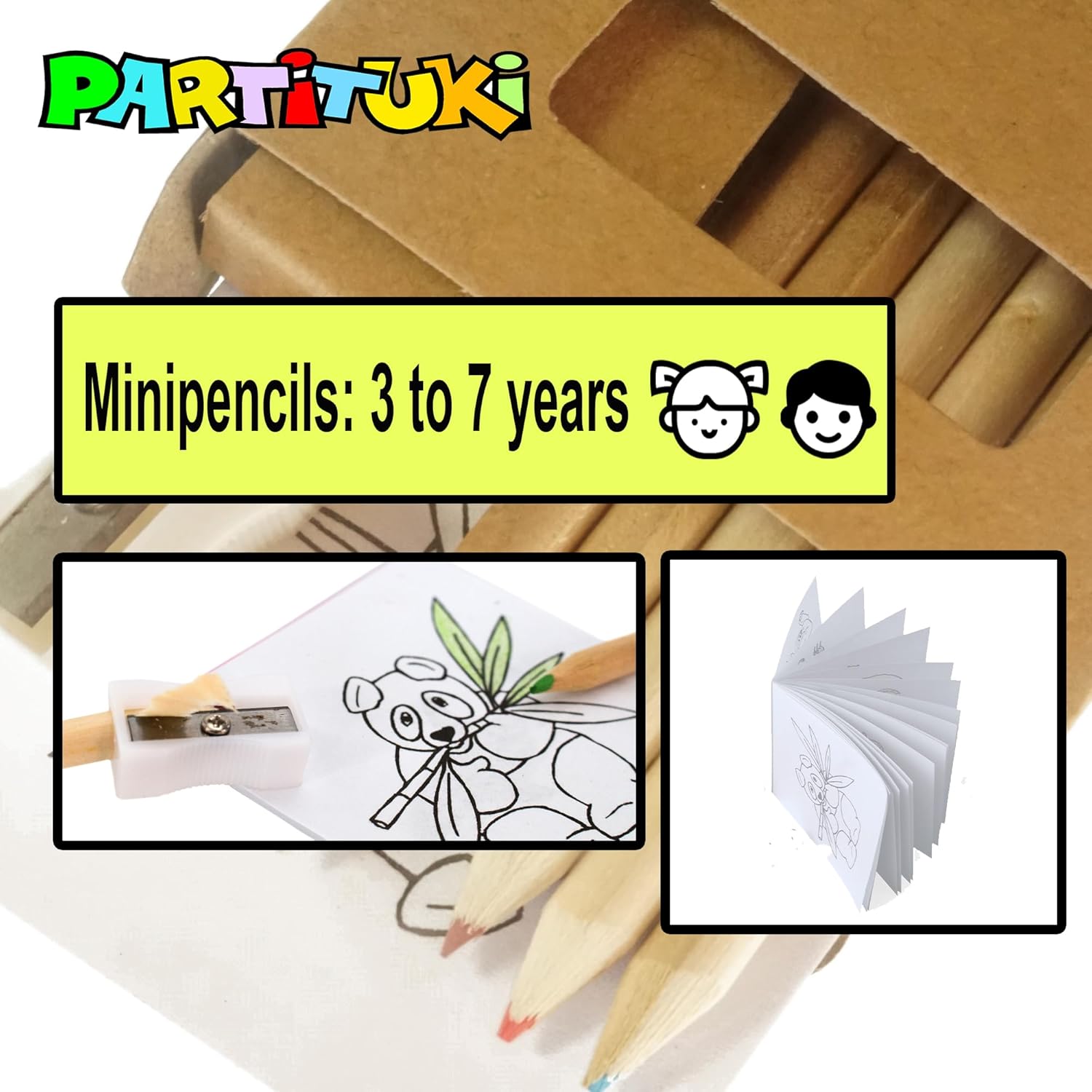 DESCRIZIONE: Set compatto ma completo di 10 scatole da 6 mini matite colorate, 1 libro da colorare per bambini da 20 pagine e 1 temperamatite. In totale: 60 mini matite colorate, 10 mini libri da colorare e 10 temperamatite. DIMENSIONE: Le mini matite colorate misurano 9 cm. Appositamente progettato per le mani piccole di bambini e bambine di età compresa tra 3 e 7 anni. Il blocco da colorare da 20 fogli misura 9x7 cm. GARANZIA: Soddisfazione garantita. Siamo così sicuri che li adorerai che offriamo una garanzia di rimborso al 100% di 60 giorni se non sono all'altezza delle tue aspettative. ATOSSICI: Permettono ai più piccoli di colorare, dipingere e disegnare in tutta tranquillità. Alternativa sana a dolci e caramelle. PERSONALIZZABILE: Gli astucci sono semplici e senza testo, il che consente loro di essere personalizzati a tuo piacimento. Ideale per i dettagli di feste di compleanno, feste per bambini, regali di matrimonio o comunione, eventi scolastici, piñata, animazione per bambini...