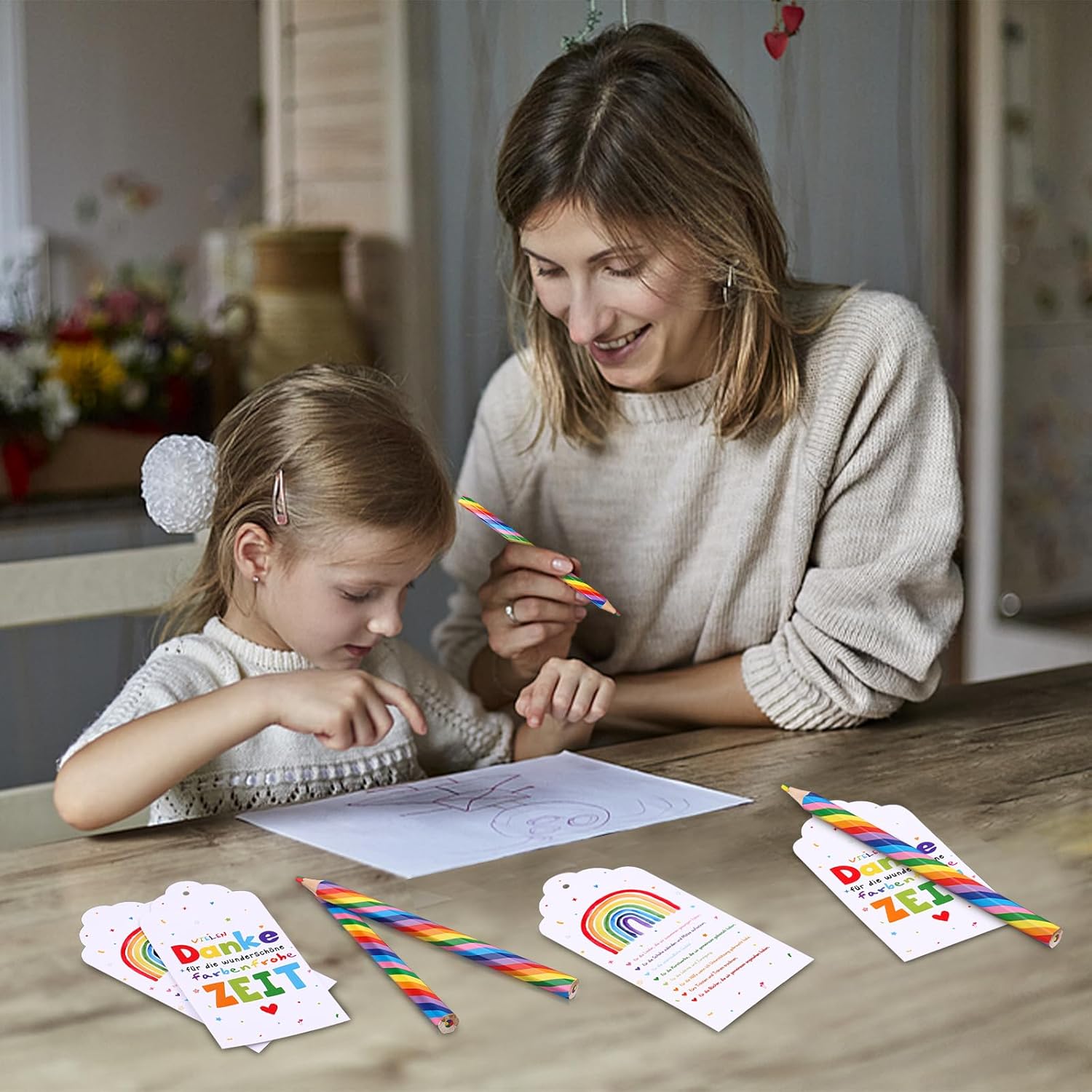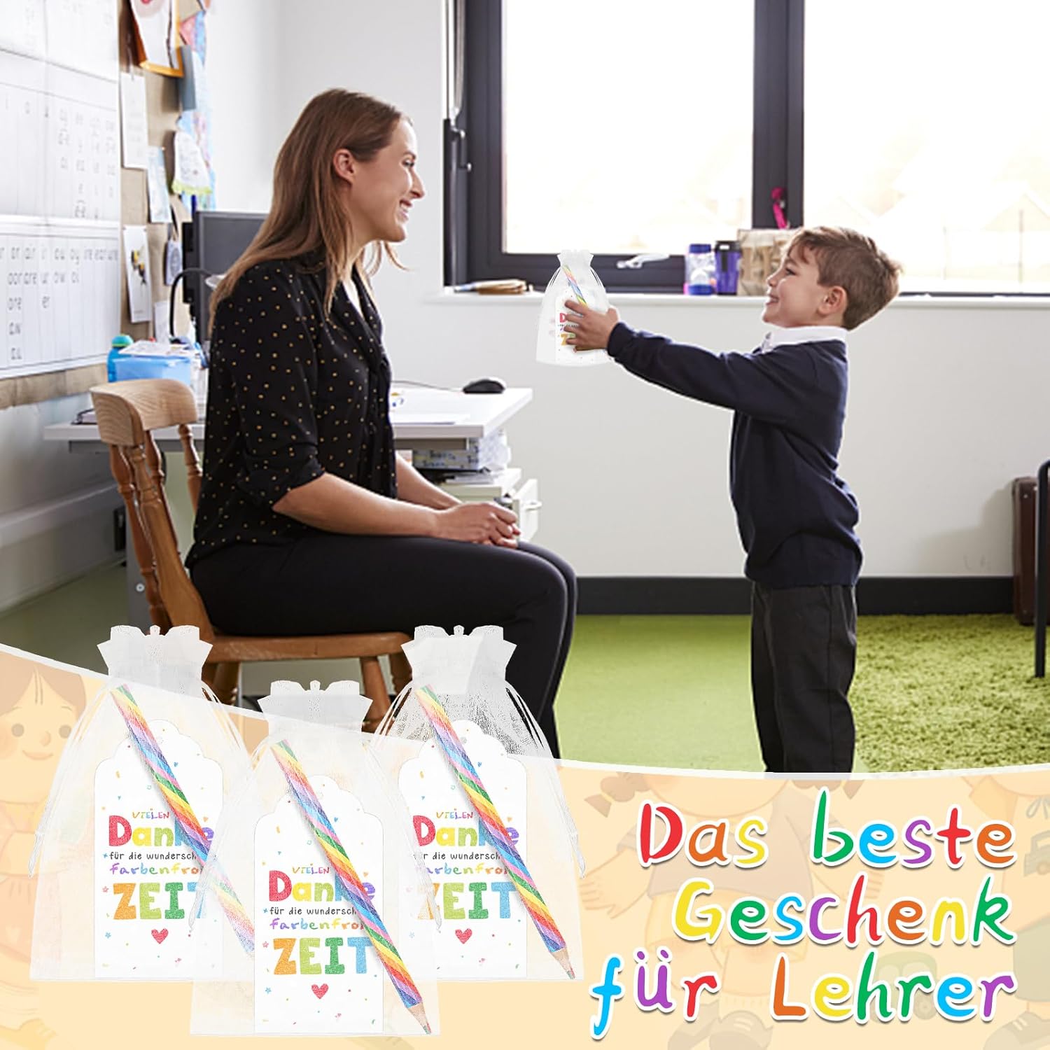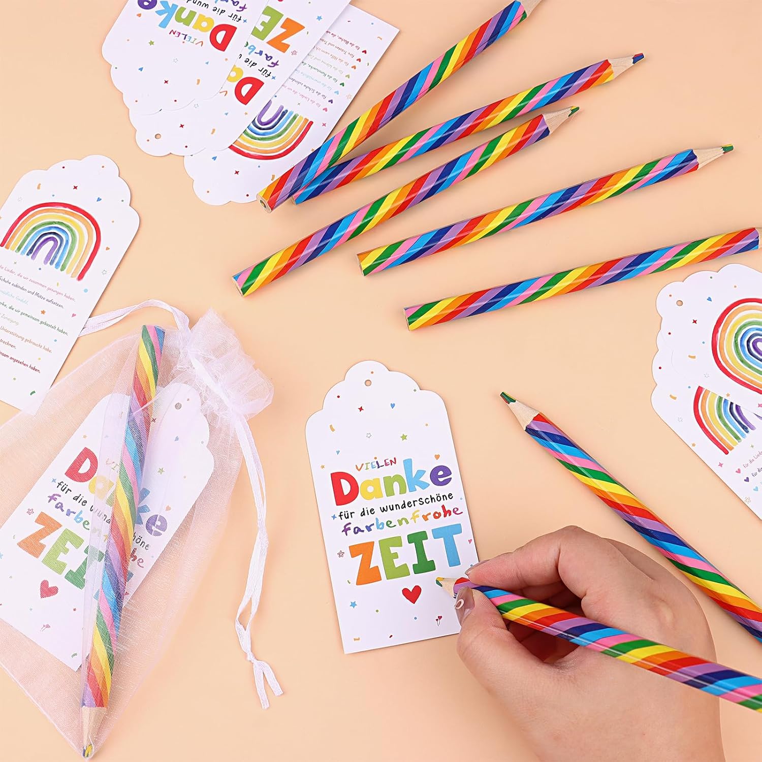Lista di imballaggio: il piccolo set regalo di ringraziamento contiene 10 penne arcobaleno per bambini, 10 etichette regalo arcobaleno di ringraziamento e 10 sacchetti di organza bianchi. Un set accuratamente preparato per un regalo d'addio per gli insegnanti. Design colorato: le matite pretemperate arcobaleno per bambini hanno uno speciale nucleo multicolore: giallo, blu, rosso e verde. Può mostrare colori colorati durante la pittura. Rendi divertente il disegno di tuo figlio. Misura adatta: i pennarelli da disegno arcobaleno sono lunghi circa 17 cm, una dimensione comoda per bambini e adulti; I graziosi biglietti d'auguri per insegnanti regalo d'addio arcobaleno misurano circa 12*6 cm, i sacchetti di organza misurano circa 13*18 cm Condividi il tuo apprezzamento: il nostro regalo d'addio arcobaleno è un bel regalo per insegnanti, assistenti sociali, colleghi, infermieri e altro ancora, esprimi loro pienamente il tuo sincero apprezzamento e fagli sentire calore. Regalo ideale: i set di penne arcobaleno sono ottimi per scrivere e disegnare. Il set di matite arcobaleno è la matita colorata ideale per bambini e adulti. La penna arcobaleno può essere inviata come premio di classe, come regalo di classe, come regalo di laurea e come bomboniera