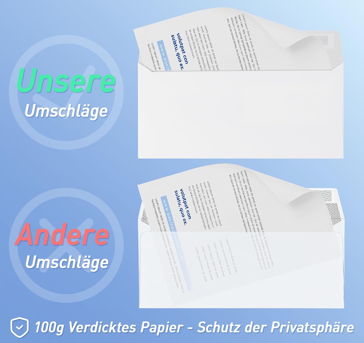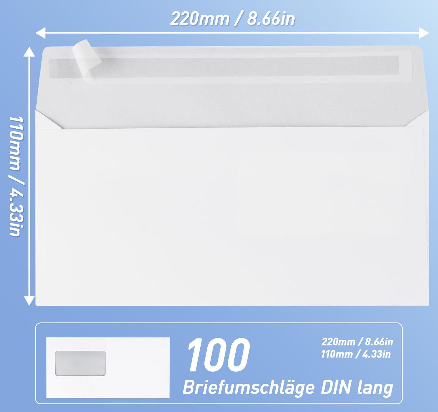 Sigillatura rapida: ogni busta con finestra dispone di un nastro autosigillante ultra resistente e privo di umidità con strisce rimovibili che prolungano la durata dell'adesivo; facile da togliere e sigillare, accelera i tempi di imballaggio ed è conveniente per i clienti. Protezione di sicurezza: le nostre buste DIN lungo dispongono di un design di stampa a colori sicuro che aumenta l'opparità delle buste per proteggere i dati sensibili nei documenti. Buste premium con finestra, in carta da 100 g/m², colore: bianco, dimensioni: 110 mm x 220 mm. Design con finestre: facile da visualizzare, ordinare i tipi di file, ideale per libri, documenti, opuscoli, fatture, lettere e molto altro ancora. Quantità sufficiente: 100 buste con finestra. I pacchetti sono disponibili per una consegna a lungo termine e sono ideali per lettere commerciali, legali e commerciali nella vita quotidiana a casa, a scuola, in ufficio e per grandi compiti postali. Questo lo rende un dispositivo fisso perfetto.