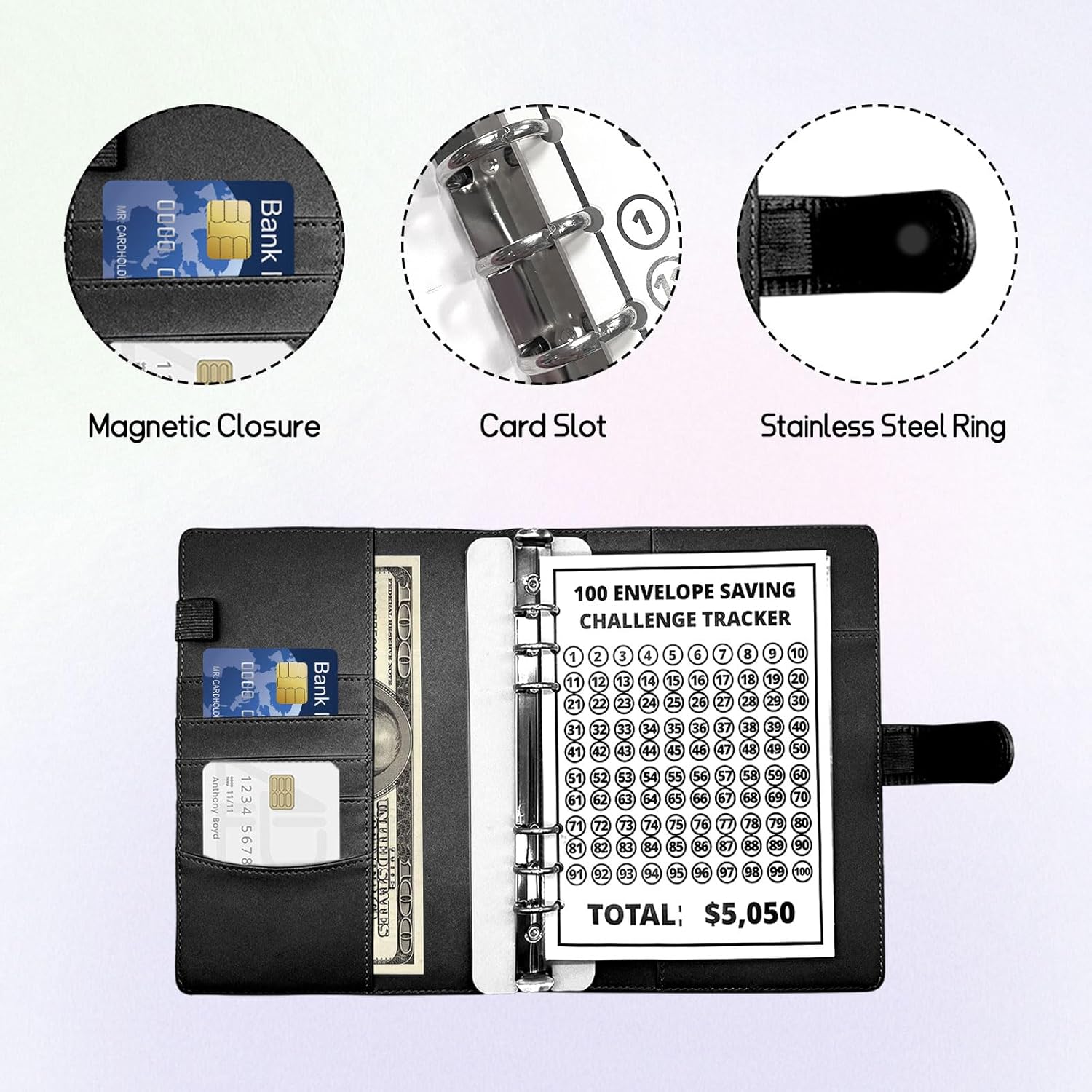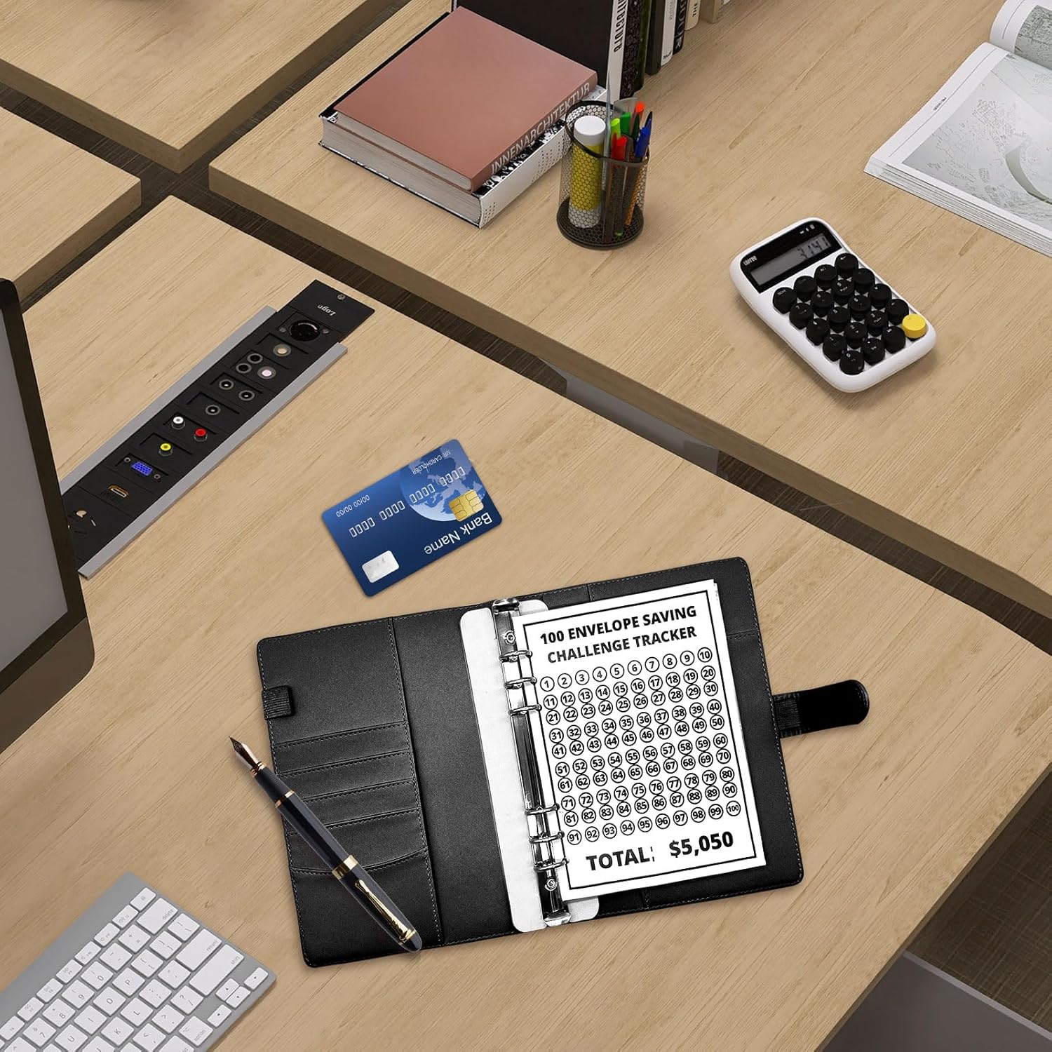Composizione di alta qualità: il nostro portafoglio budget planner è decorato con buste per soldi e accuratamente realizzato in PVC di alta qualità. Con proprietà idrorepellenti e antistrappo, questo libro garantisce una protezione ottimale per banconote e contanti. Sono utilizzati per organizzare e risparmiare denaro. Facile da trasportare e facile da usare: il raccoglitore per soldi è così grande che puoi portarlo con te e la ricca combinazione di accessori ti consente di registrare ovunque e in qualsiasi momento. Questa è un'eccellente cartella di budget. Puoi anche usarlo come organizer per risparmiare denaro e come portafoglio con sistema di buste per pianificare i contanti. Set completo di risparmio: presentiamo la cartella sfida da 100 buste per una gestione finanziaria efficace. Questo set include una cartella compatta A5 e un set di tasche da 1 a 100, che offrono un metodo collaudato di risparmio. Usa questo sofisticato strumento di risparmio. Assistente finanziario per il budget: questa cartella per risparmiare denaro ti aiuta a creare un budget, tenere traccia delle spese e raggiungere i tuoi obiettivi di risparmio e rimborso del debito. Non si perde mai una scadenza. La dimensione della cravatta è adatta per il trasporto e la ricca combinazione di accessori consente di completare i record sempre e ovunque. Raccoglitore con 100 buste: la cartella per budget può aiutarti a sognare i grandi obiettivi che vuoi raggiungere, e fa risparmiare denaro in modo facile e divertente, può aiutarti a comunicare meglio i problemi di denaro. Abbiamo una varietà di stili tra cui scegliere, tra cui nero, blu e viola.