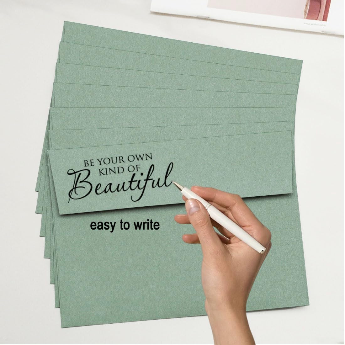 Include: riceverai 100 buste A7 verde salvia da 5,25 x 18,5 cm, ideali per biglietti di auguri da 12 x 17,8 cm, baby shower, biglietti di invito per feste di compleanno, inviti per feste di laurea. Materiale: le nostre buste verdi per inviti sono realizzate in carta di qualità superiore, buona consistenza, abbastanza forti, non sbiadiscono o si rompono facilmente, offrono un'esperienza di utilizzo elegante e bella Facili da usare: le nostre buste da 12,7 x 17,8 cm sono progettate con striscia autoadesiva, quando le si utilizza, basta strappare la striscia protettiva, premere e sigillare. L'adesione a conchiglia è molto forte. Superficie liscia della busta e facile da scrivere. Ampia applicazione: queste buste verdi per biglietti di auguri possono essere utilizzate in molte occasioni, come inviti di nozze, compleanni, baby shower, biglietti di auguri per le vacanze, biglietti di laurea, normali e-mail personali. Condividi la felicità: le buste A7 ti aiuteranno a trasmettere la tua felicità e amore alle tue famiglie, amici, compagni di classe e condividere la gioia del giorno importante con loro.